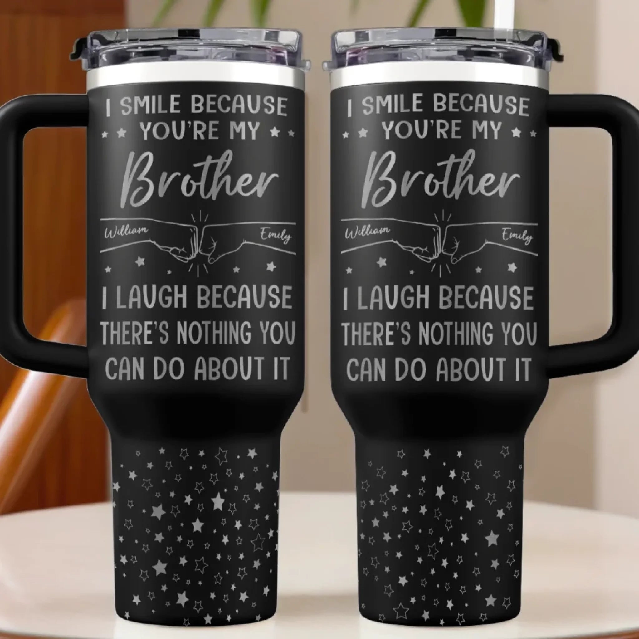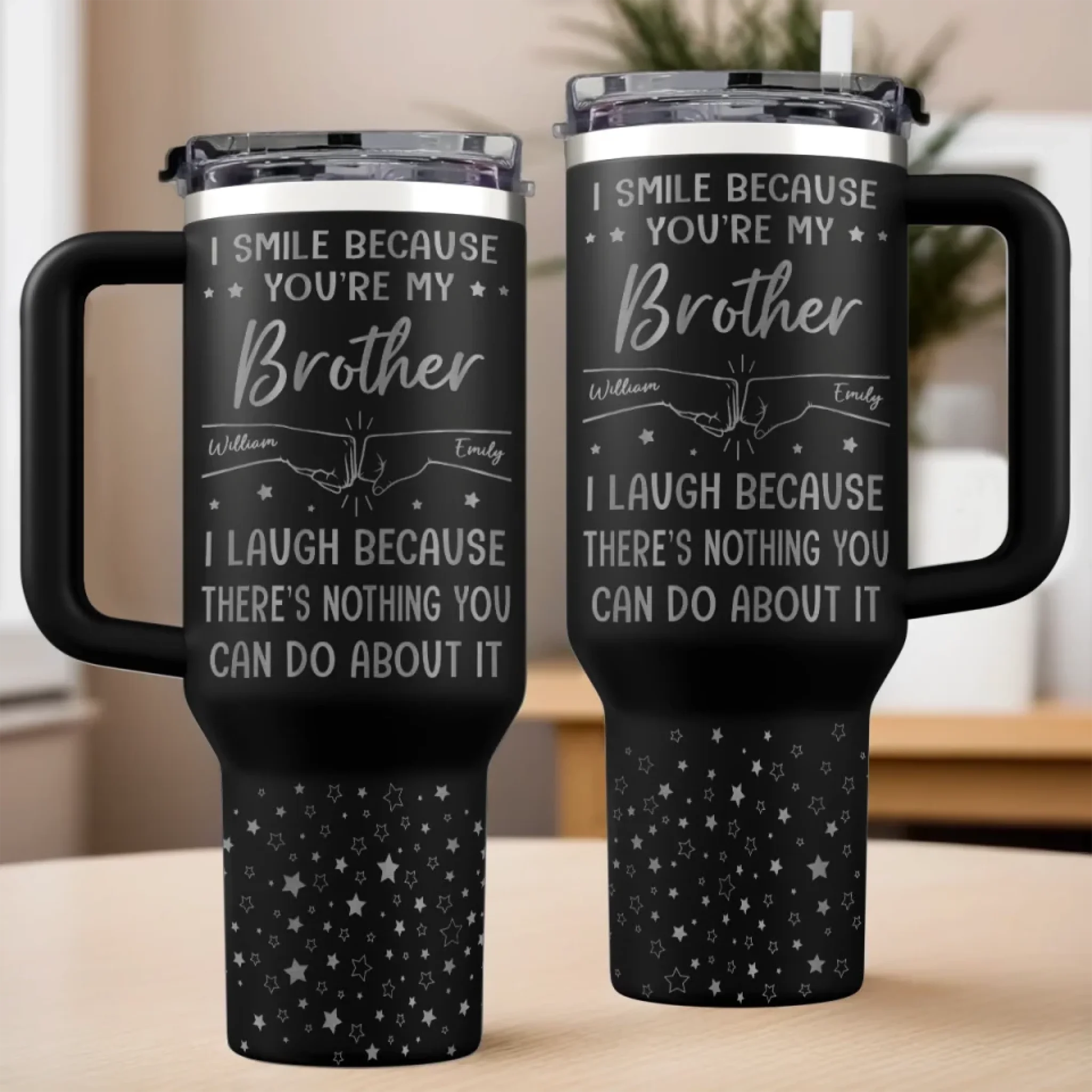 Our custom engraved 40oz tumbler is a cherished keepsake for you or your loved ones. With a sturdy handle and spill-resistant lid, it’s perfect for busy mornings, road trips, or peaceful moments at home, serving as a daily reminder of love and care. This is the perfect gift for anyone, suitable for all occasions: birthdays, holidays, anniversaries, graduations, Valentine's Day, Mother's Day, Father's Day, and just because! Whether for friends, family, or that special someone, this versatile gift is guaranteed to bring joy and make lasting memories.