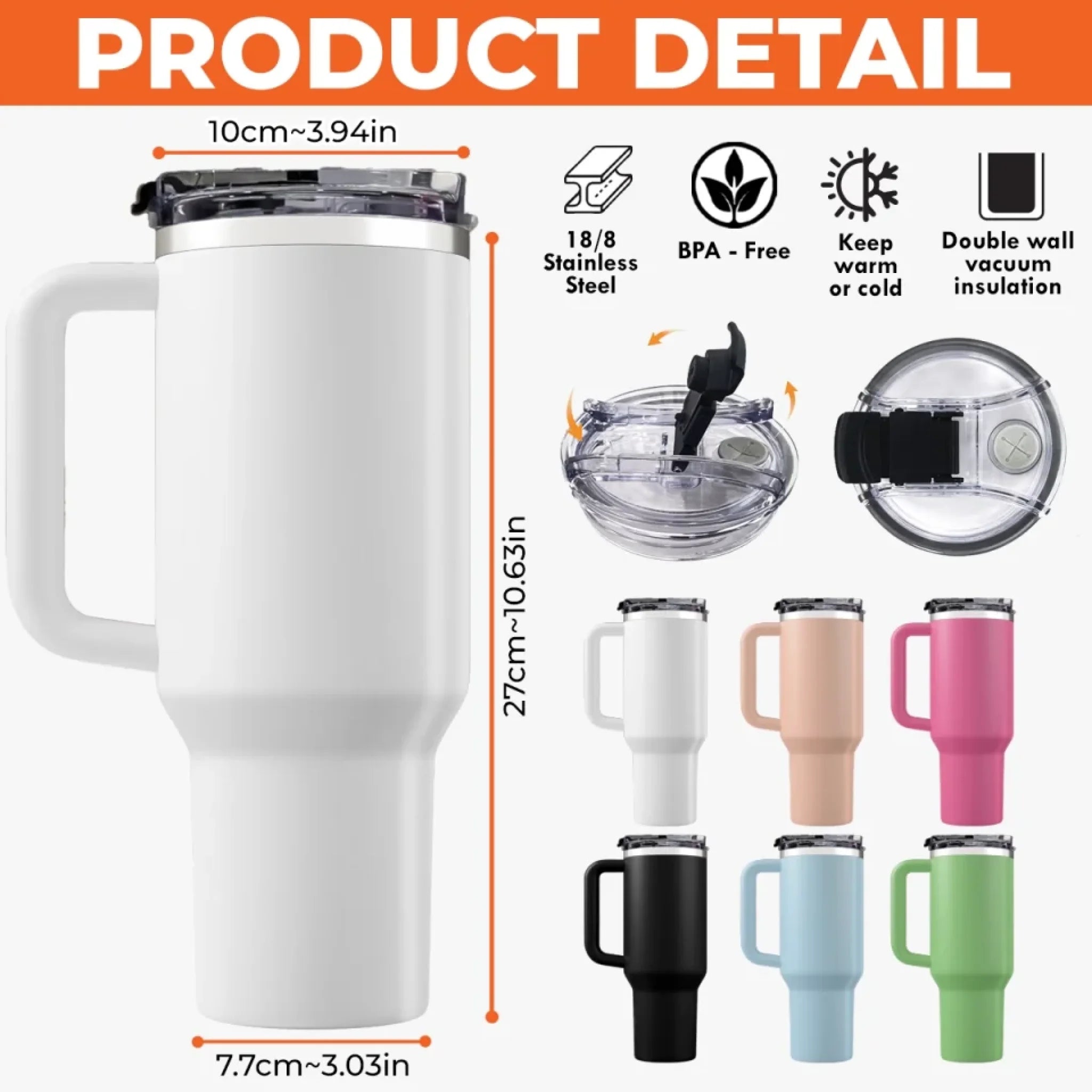 • Material: High-quality 304 stainless steel. BPA-free, reusable, unbreakable, eco-friendly, and non-toxic.