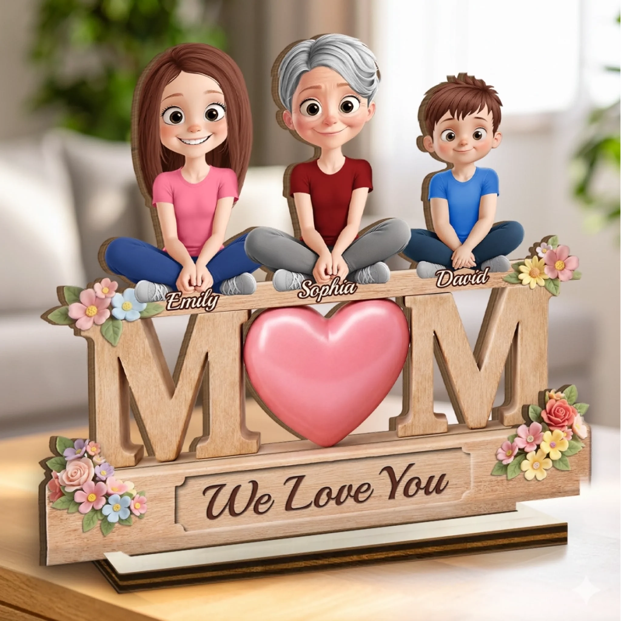 Custom 2-Layered Wooden Plaque - Personalized Mother's Day Birthday Gifts For Mom - Love You To The Moon, Mom