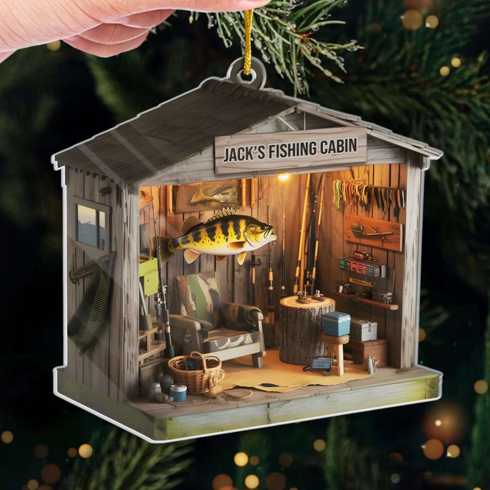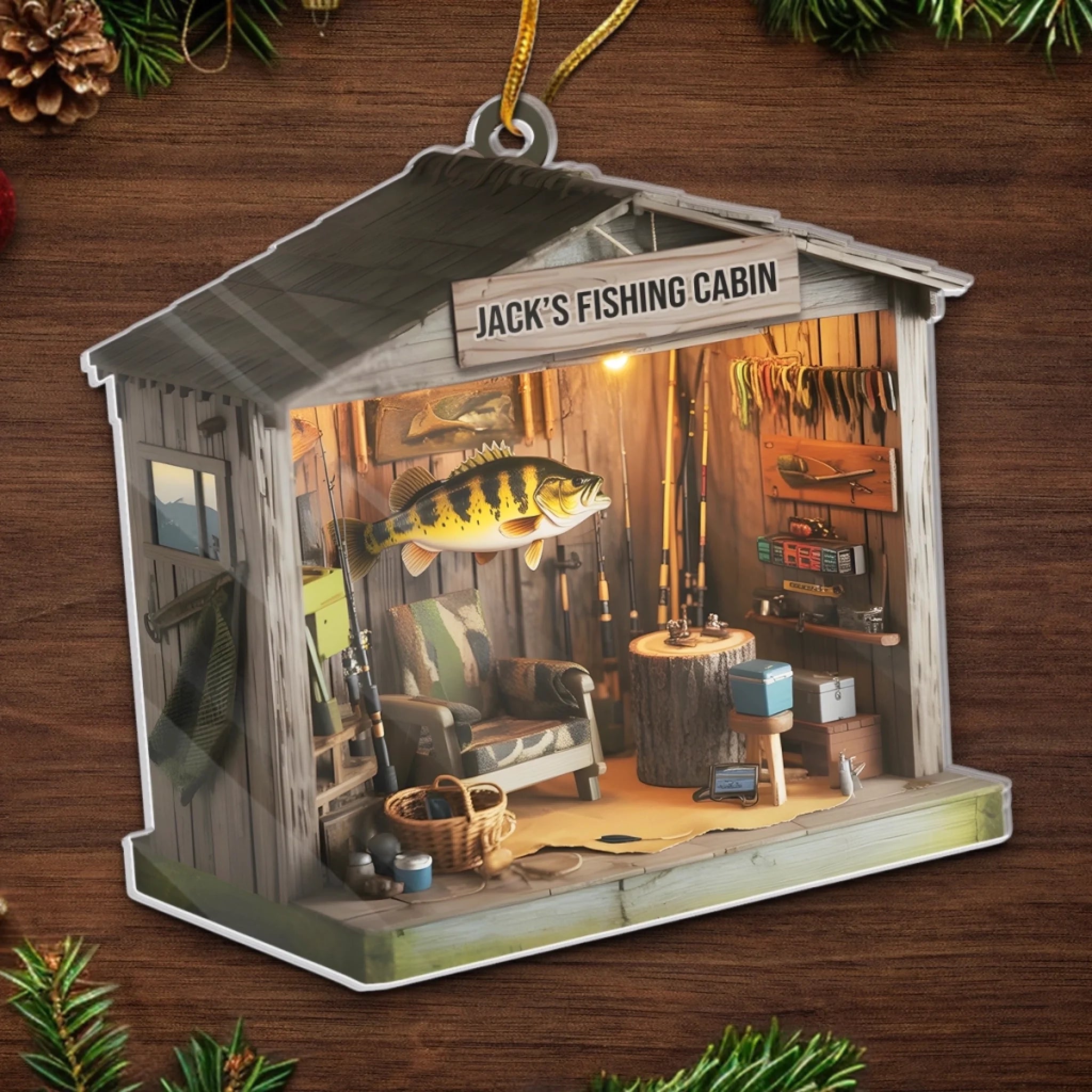 Custom Acrylic Ornament - Personalized Christmas Birthday Fishing Gifts For Fisherman - A Cabin Full Of Calm And Fish Tales