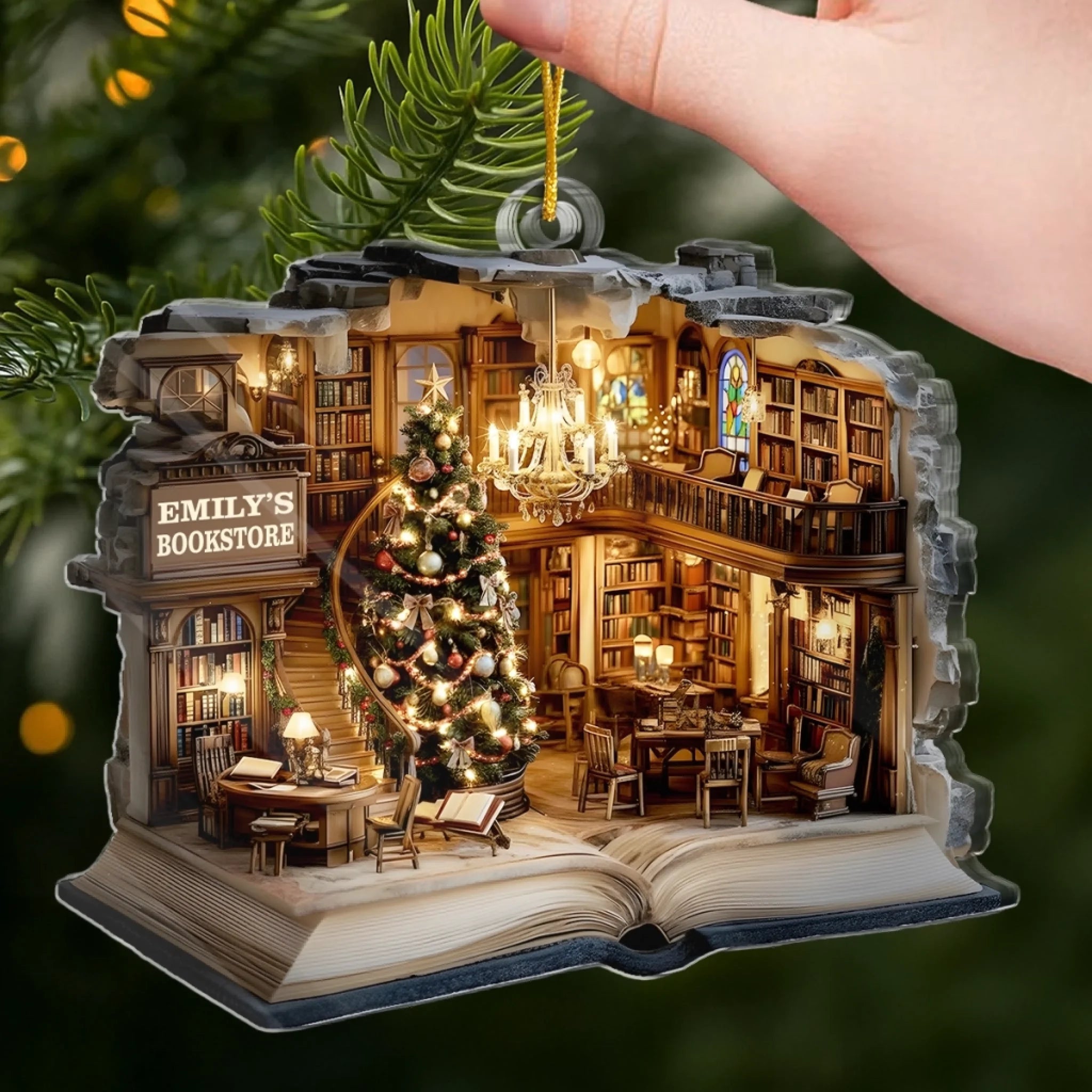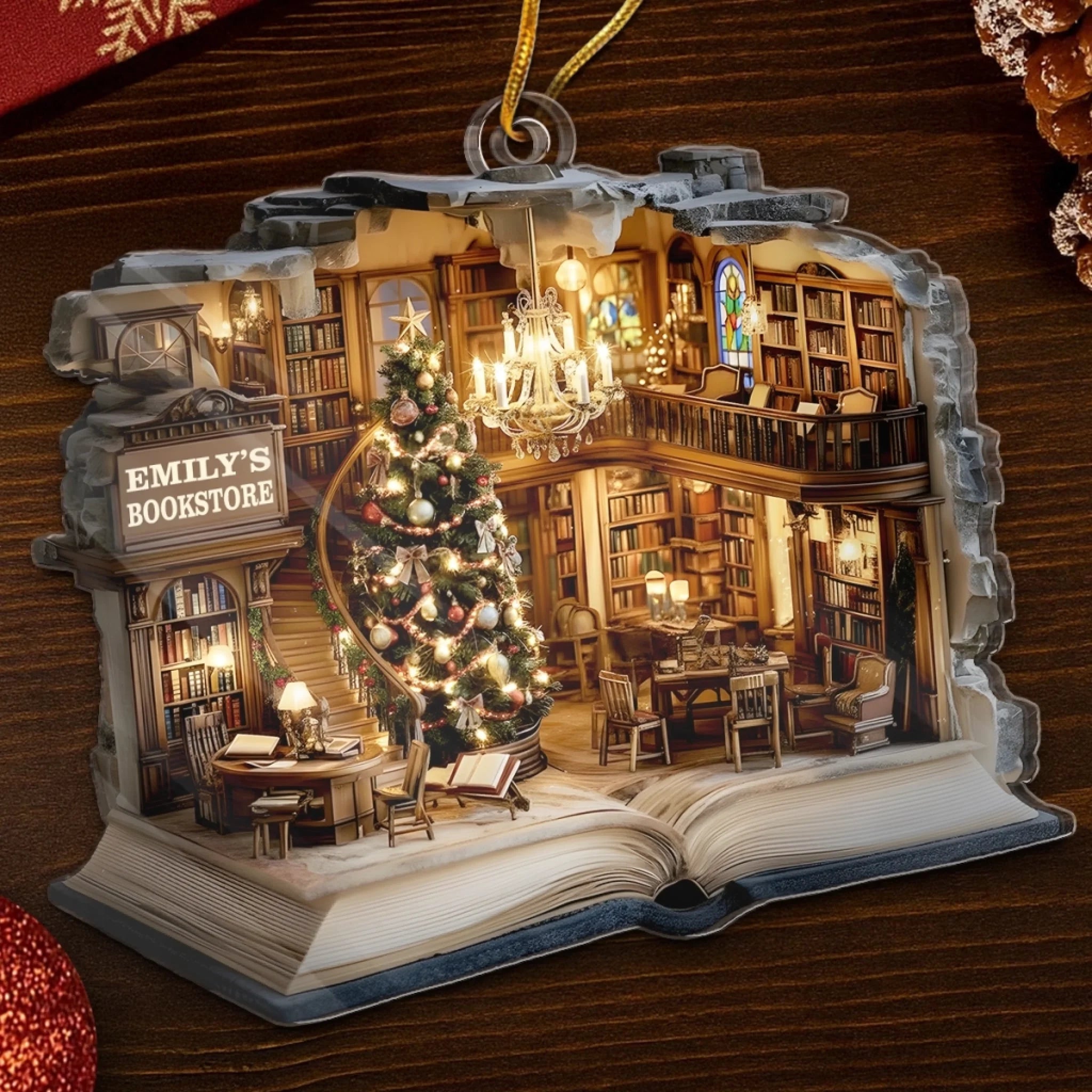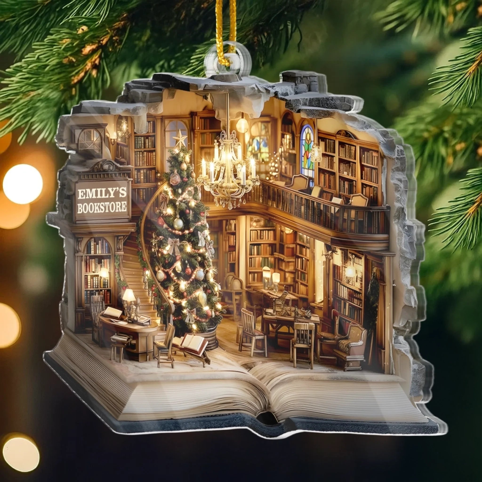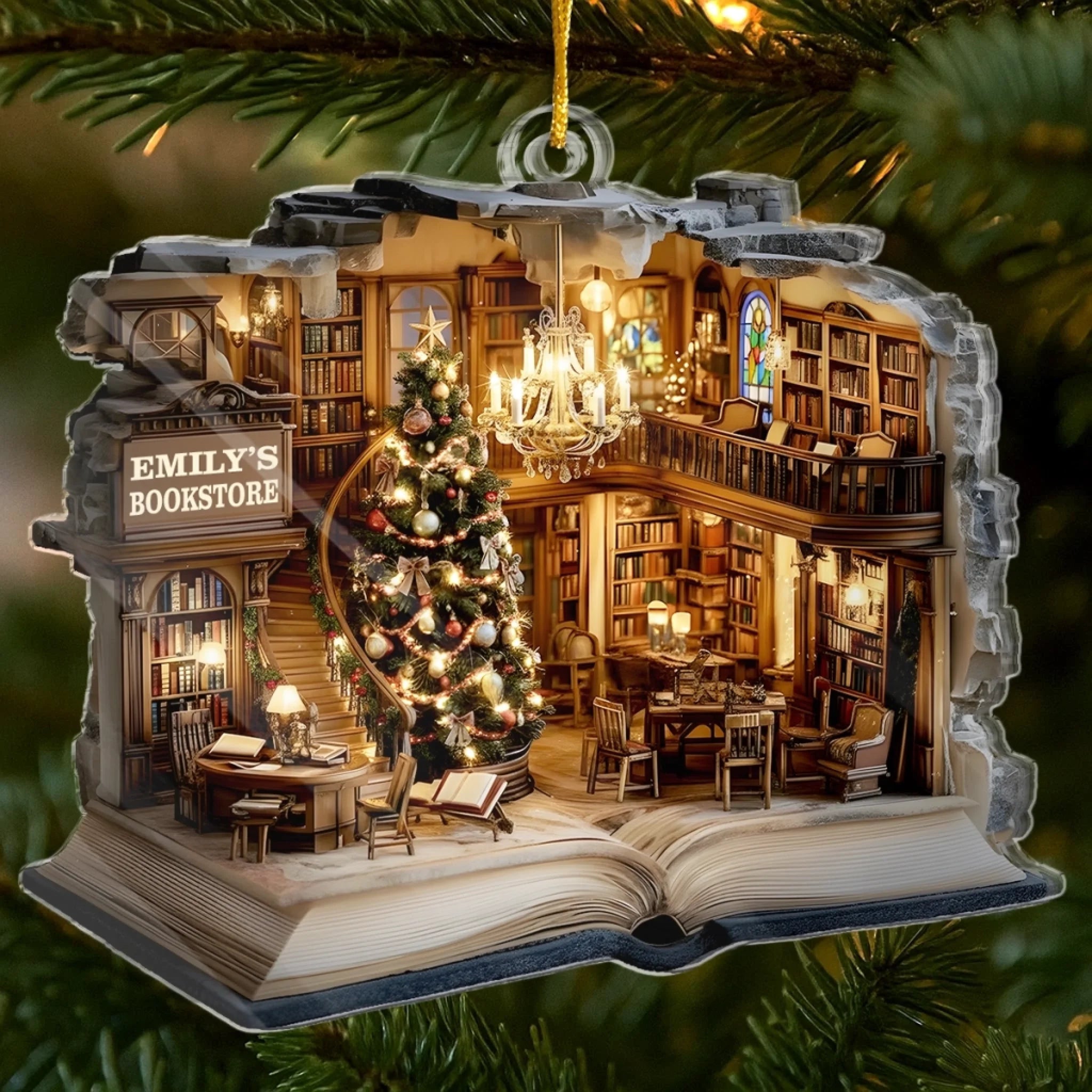 Custom Acrylic Ornament - Personalized Christmas Bookish Gifts For Book Lovers, Bookworms, Readers - Shelves Full Of Dreams And Fairy Lights