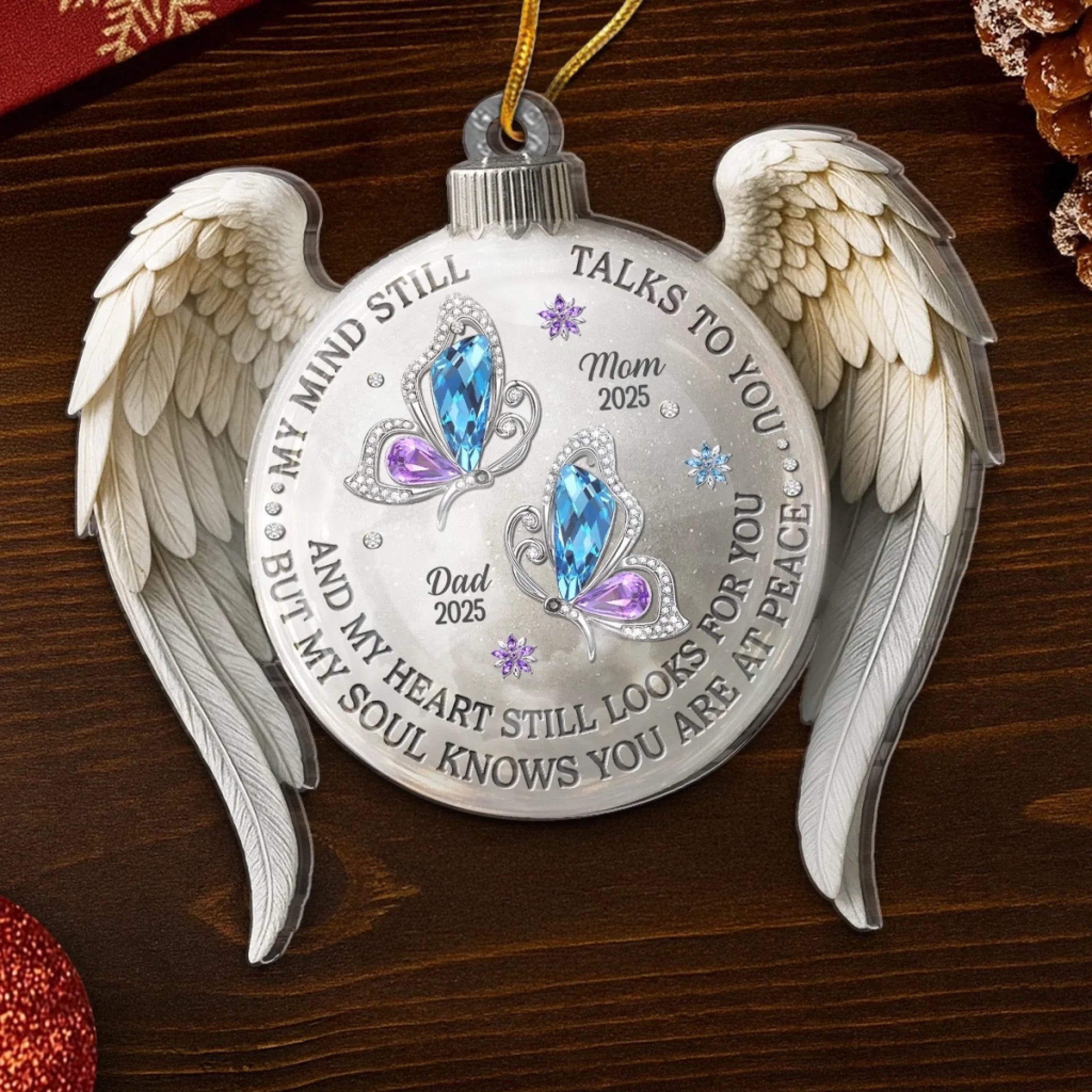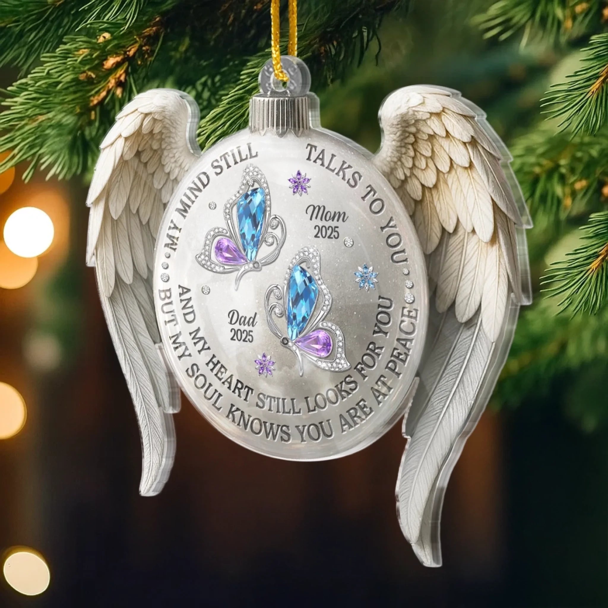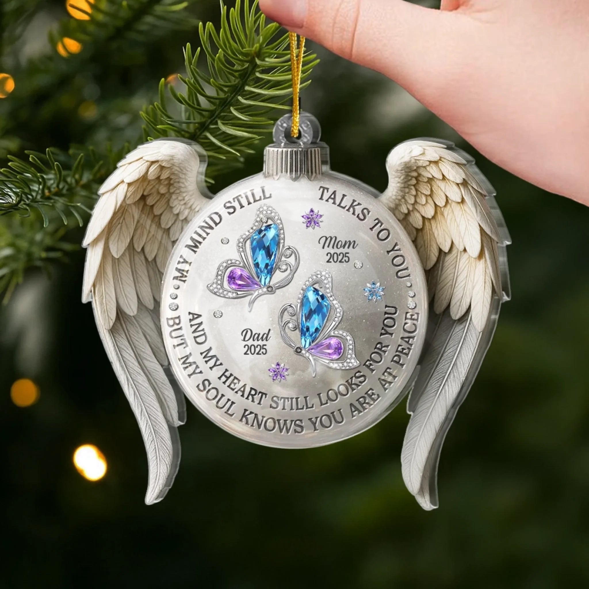 Custom Acrylic Ornament - Personalized Christmas Memorial Sympathy Gifts For Loss Of Mom, Dad - Holding You In Gentle Memory