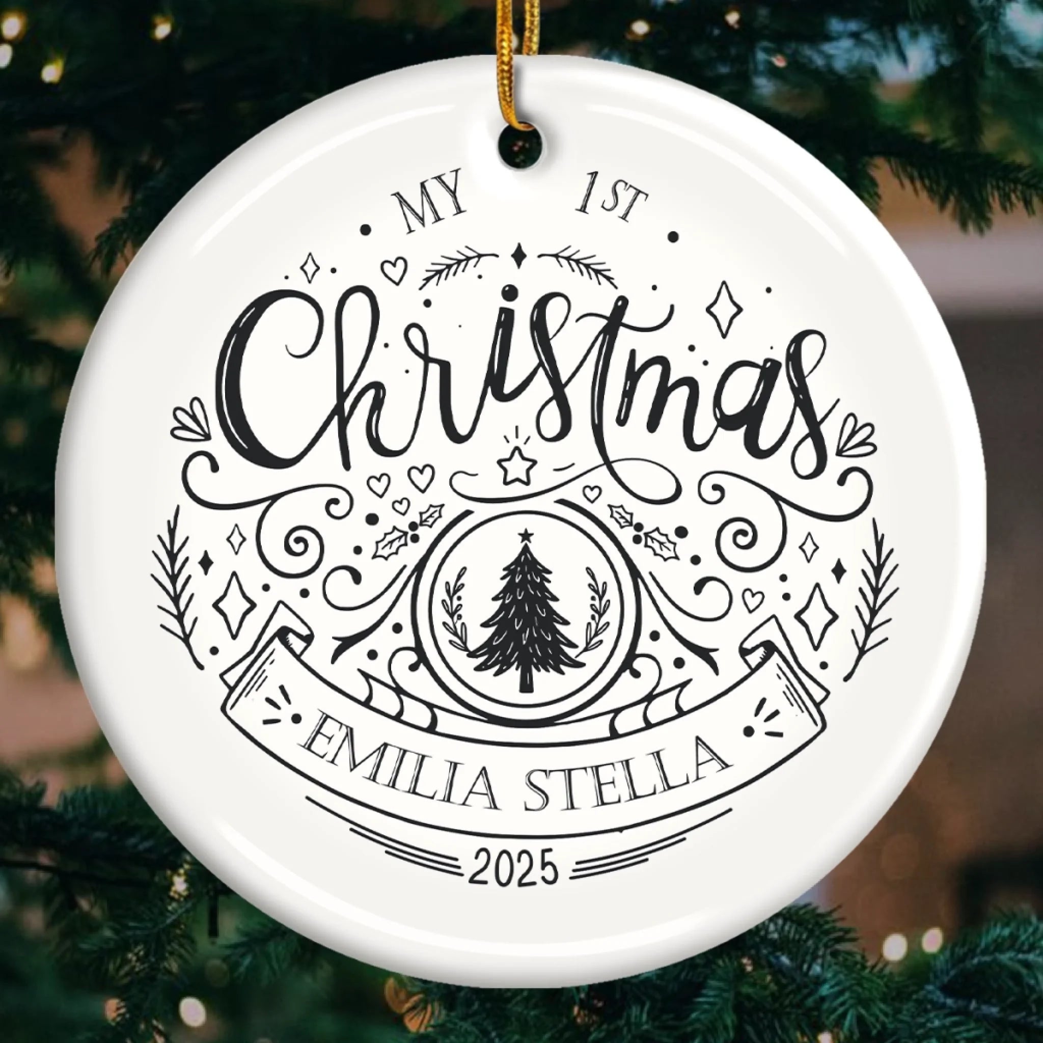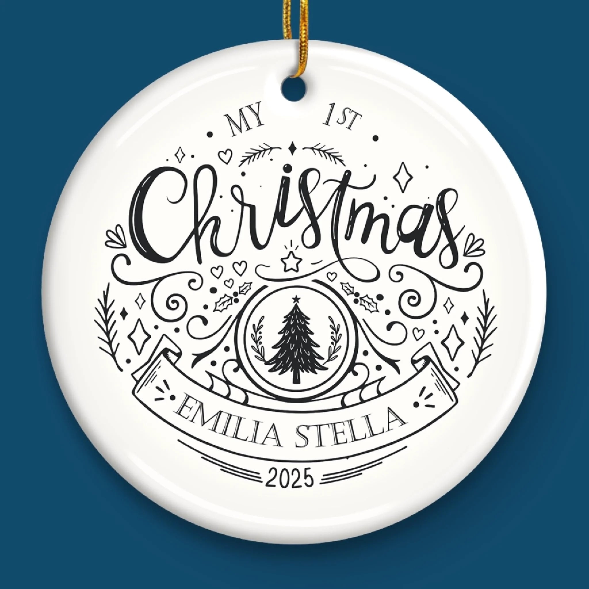 Custom Baby First Christmas Ceramic Ornament - Personalized Christmas Baby Shower, Gender Reveal Gifts For New Moms, New Dads, New Parents - Giggles And Gingerbread