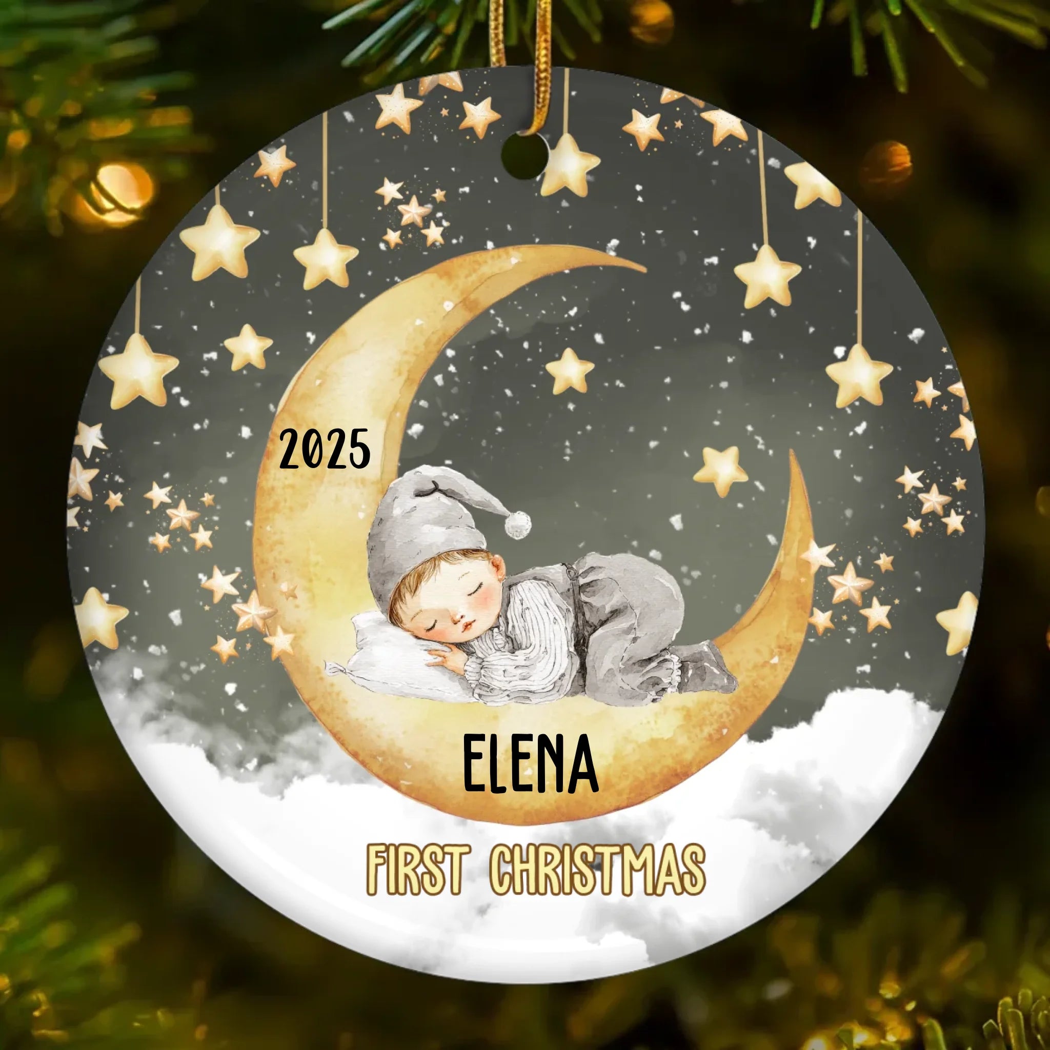 Custom Baby First Christmas Ceramic Ornament - Personalized Christmas Baby Shower, Gender Reveal Gifts For New Moms, New Dads, New Parents - Official Christmas Cutie