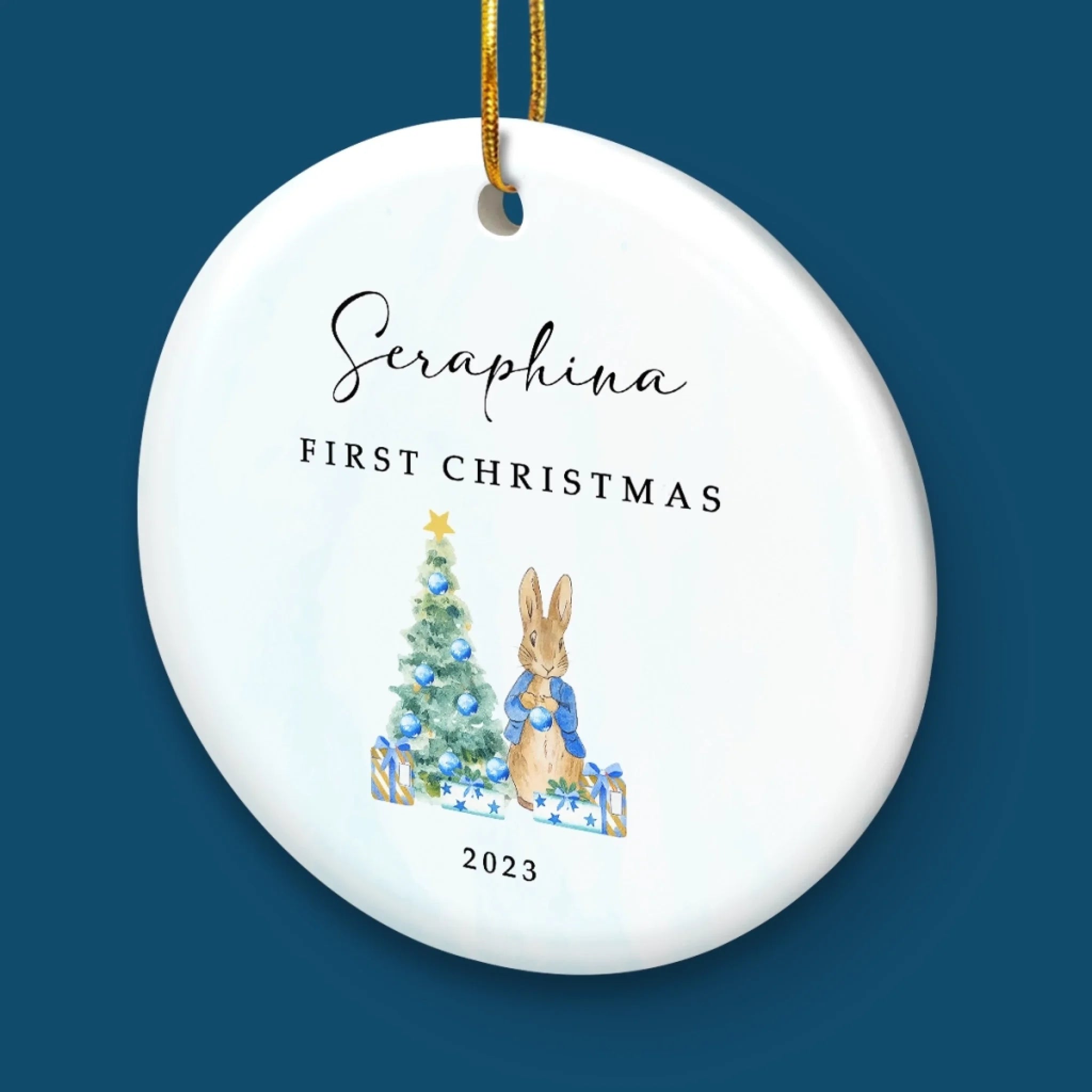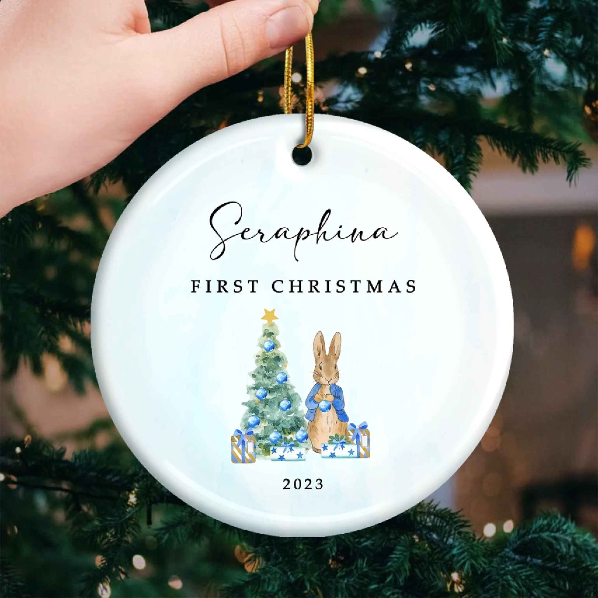 Custom Baby First Christmas Ceramic Ornament - Personalized Christmas Baby Shower, Gender Reveal Gifts For New Moms, New Dads, New Parents - Wonder Wrapped In Swaddles