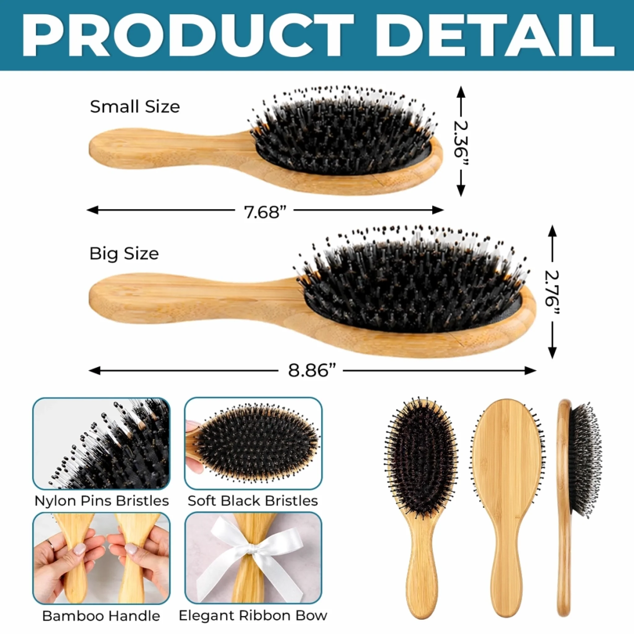 Dual Bristle Design: Helps the brush move smoothly through the hair while reducing tugging.