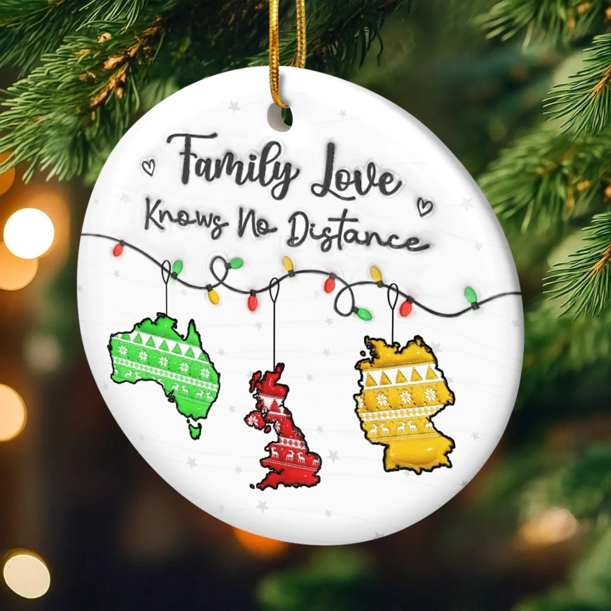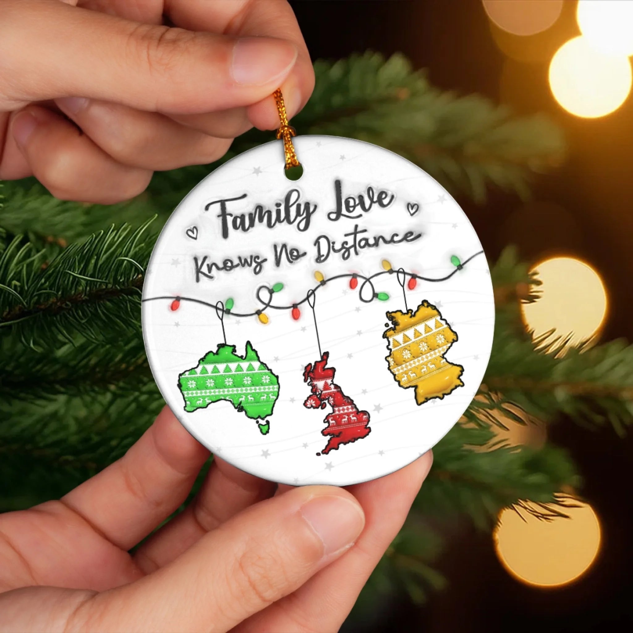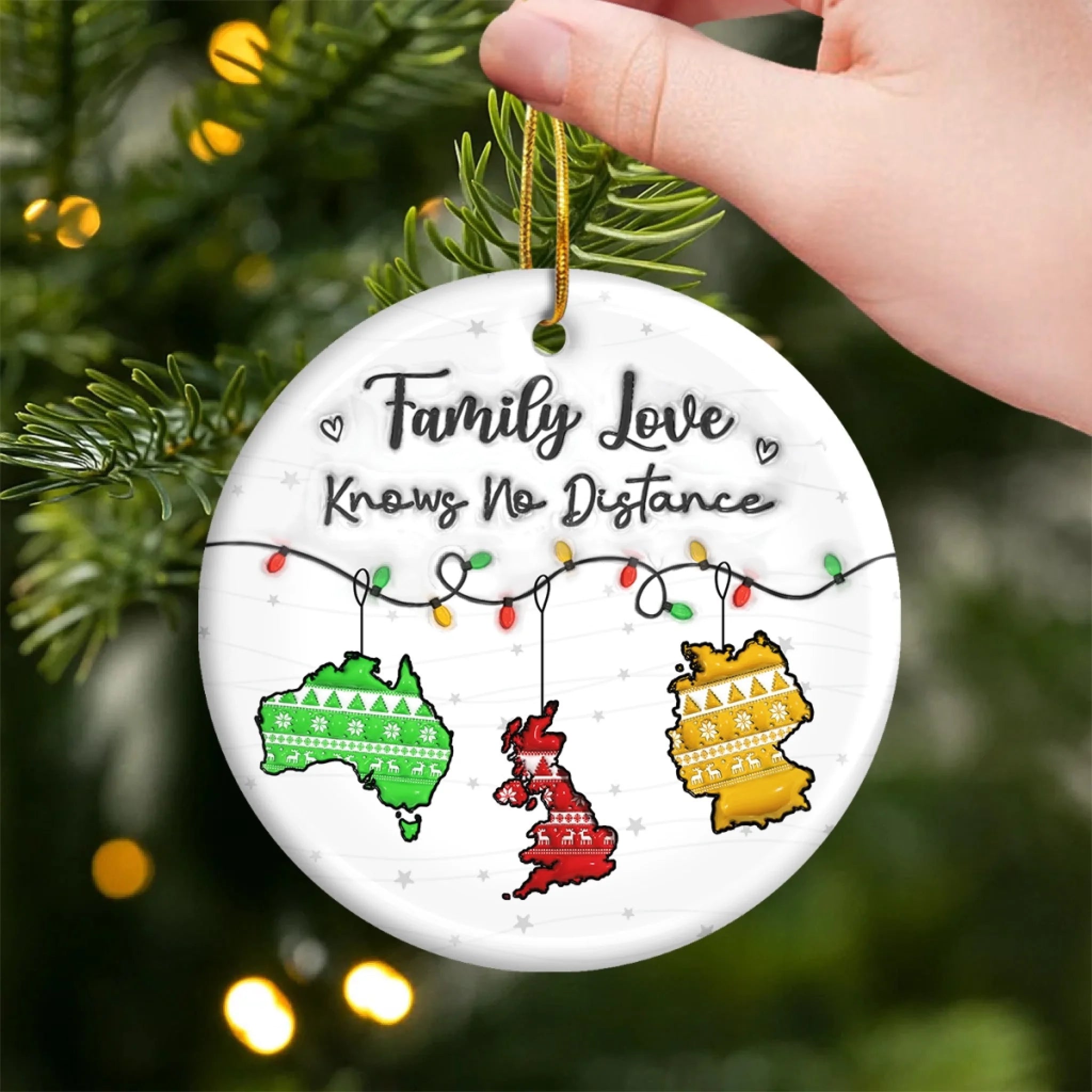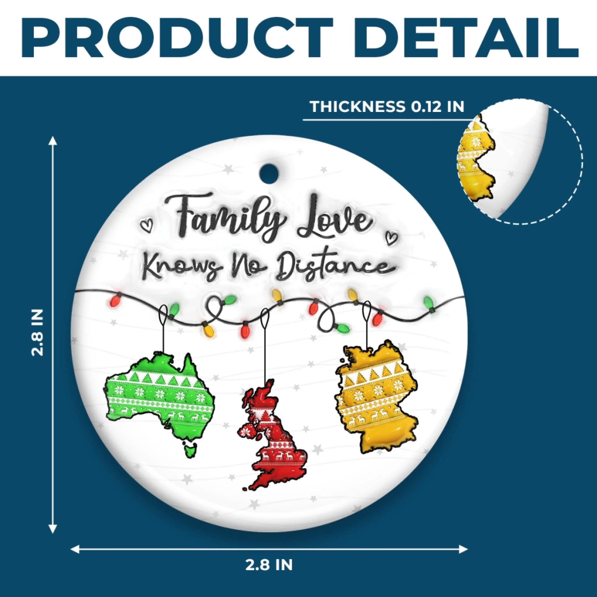 Custom Long Distance Ceramic Ornament - Personalized Christmas Birthday Gifts For Mom, Dad, Kids - Family Love Knows No Distance