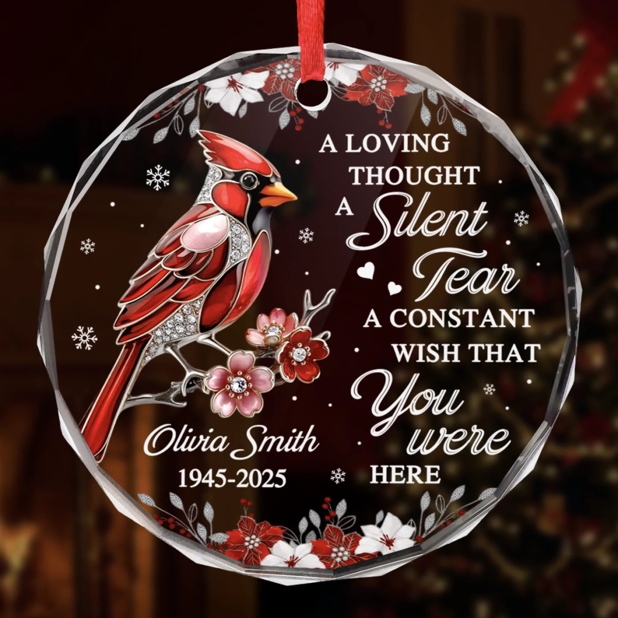 Custom Circle Glass Ornament - Personalized Christmas Memorial Sympathy Gifts For Loss Of Mom, Dad - A Visit From Heaven