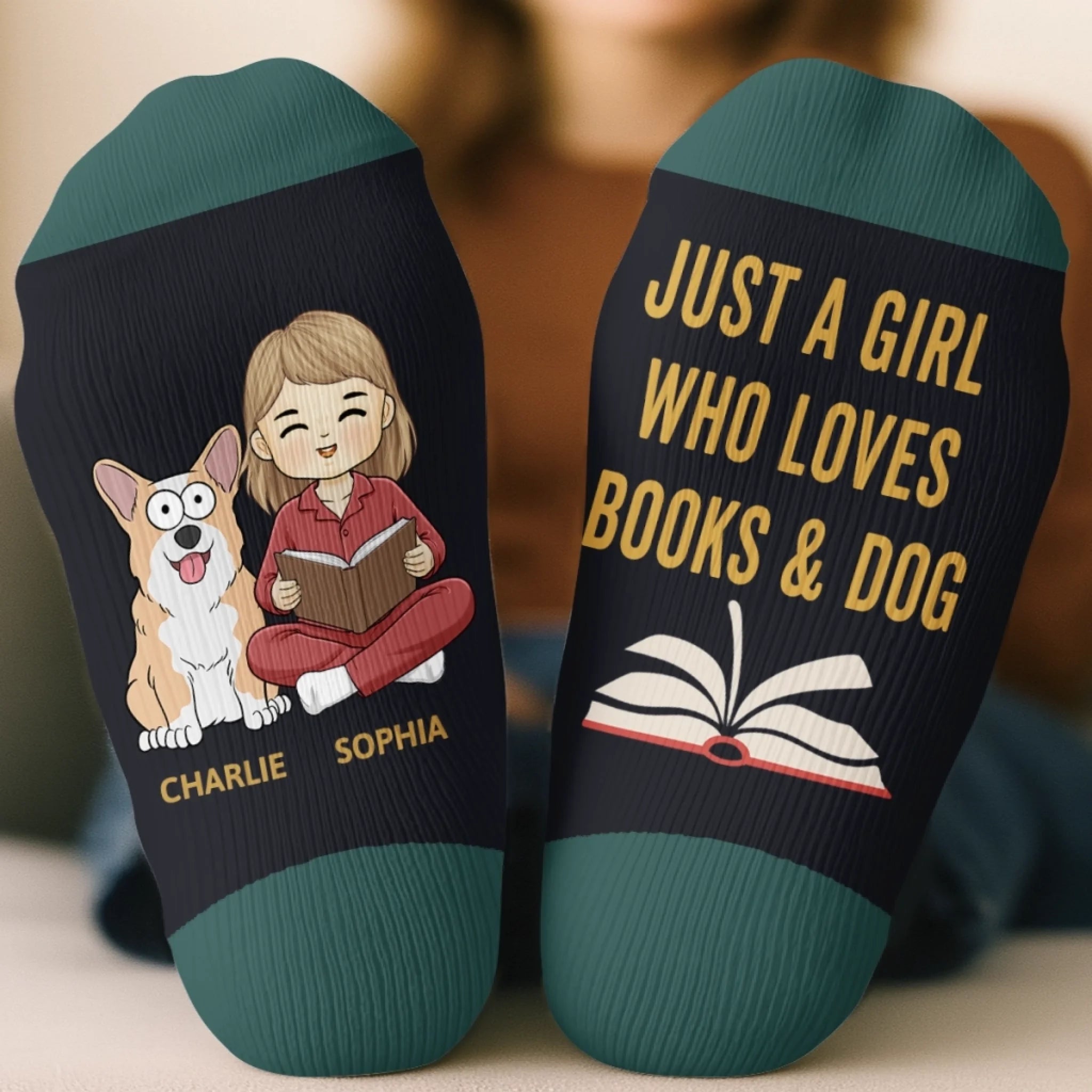 Custom Crew Socks - Personalized Bookish Gifts For Book Lovers, Bookworms, Dog Dad And Mom - Books And Dogs