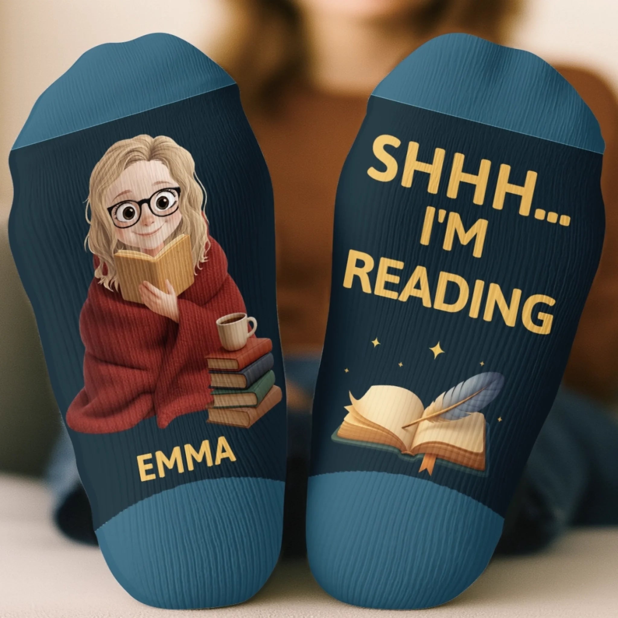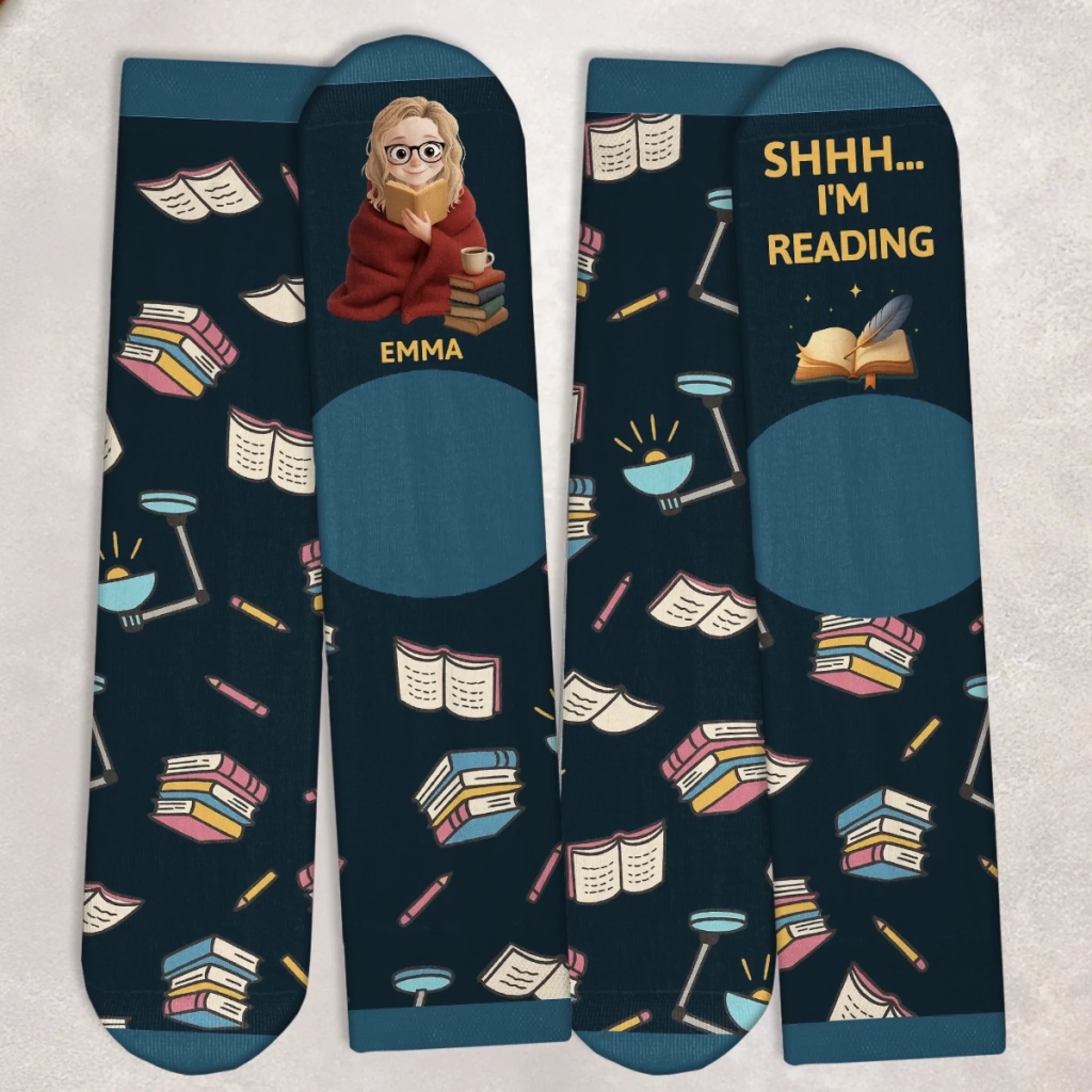 Custom Crew Socks - Personalized Bookish Gifts For Book Lovers, Bookworms, Readers - Leave Me Alone, I’m Bonding With Fiction