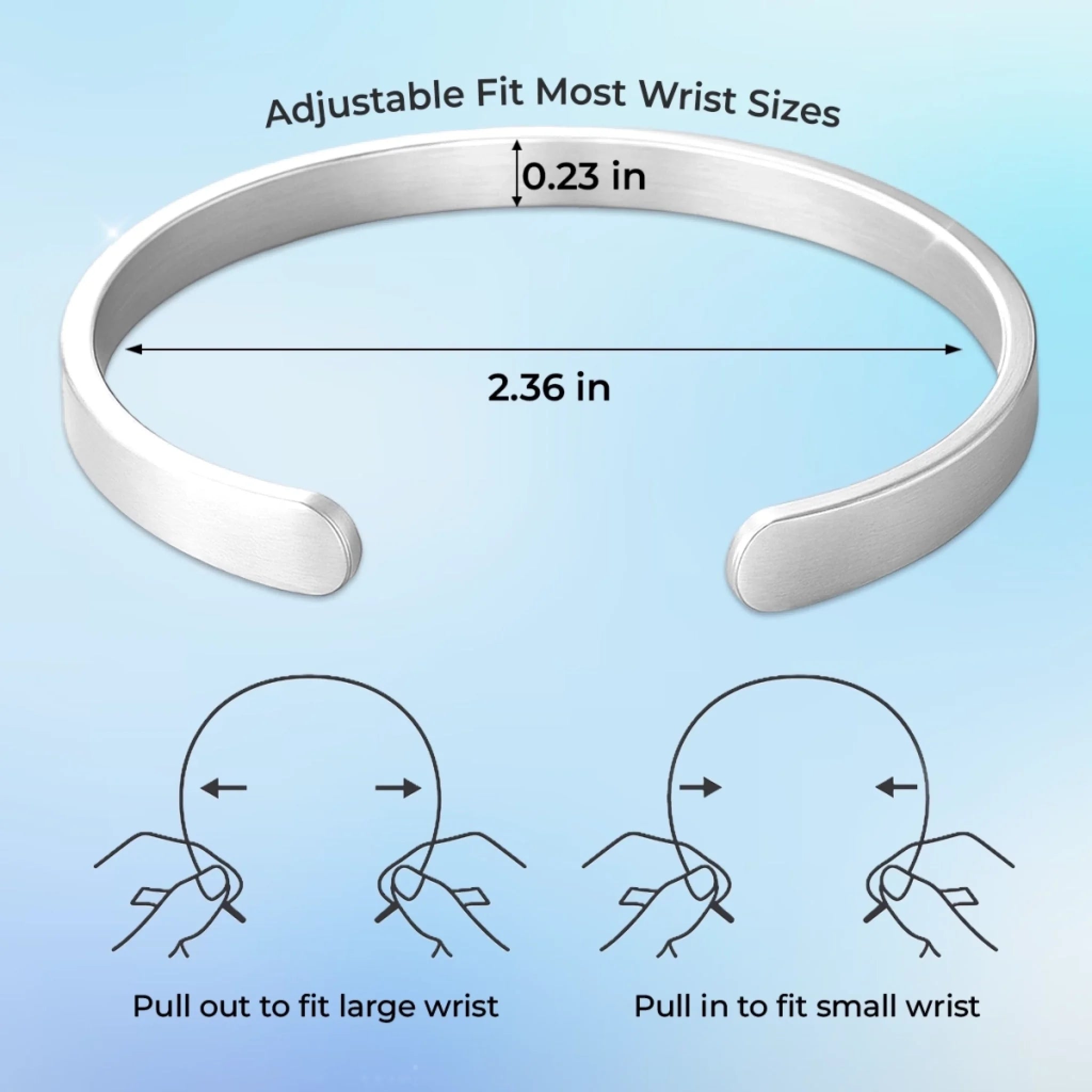 An engraved bangle bracelet cuff is a refined and meaningful accessory, crafted to add a personal touch to your style. With its sleek design and custom engraving, it becomes a timeless piece to treasure. This is the perfect gift for anyone, suitable for all occasions: birthdays, holidays, anniversaries, graduations, Valentine’s Day, Mother’s Day, Father’s Day, and just because! Whether for friends, family, or that special someone, this versatile gift is guaranteed to bring joy and make lasting memories.