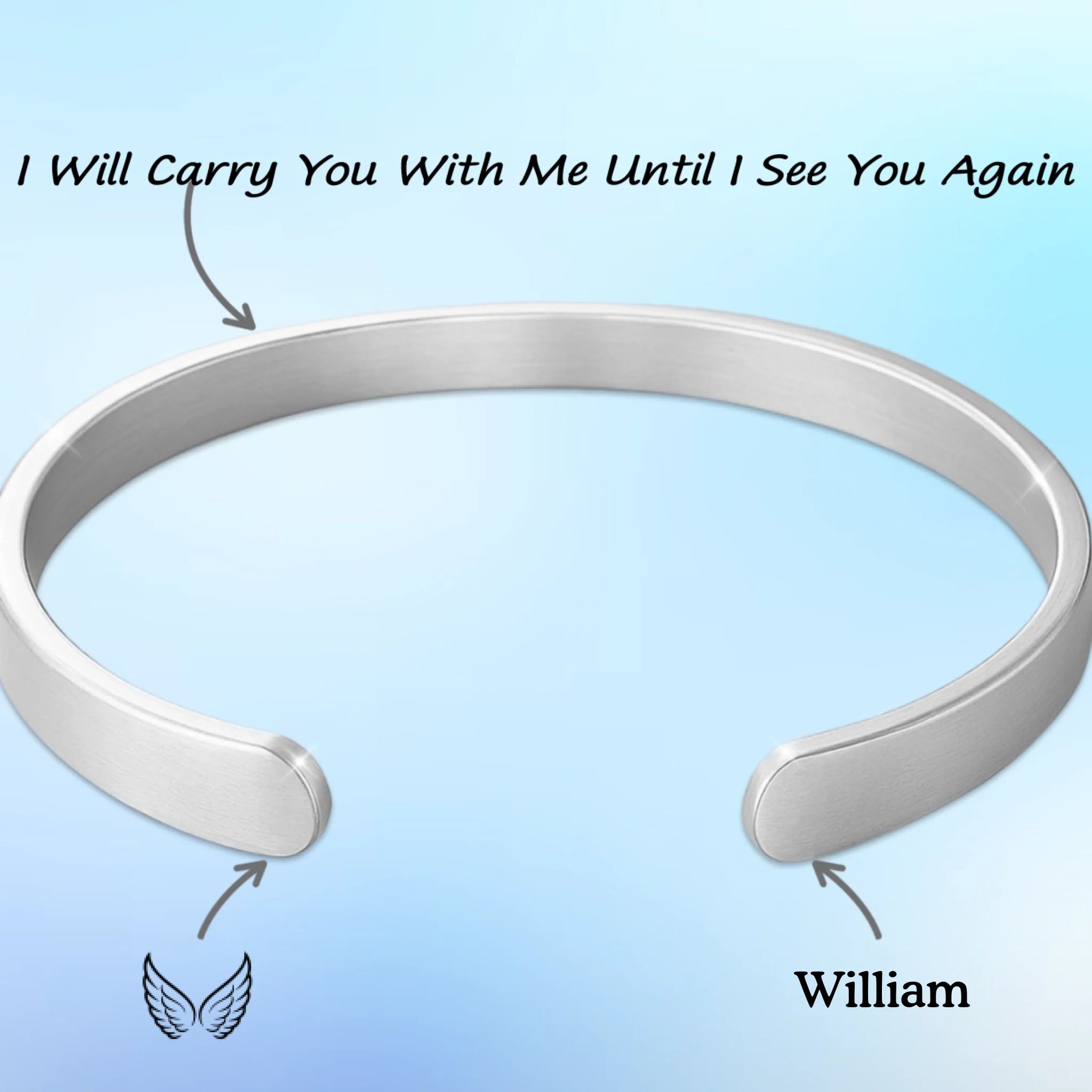Custom Engraved Stainless Steel Cuff Bracelet - Personalized Memorial Sympathy Gifts For Loss Of Mom, Dad - I Will Carry You With Me