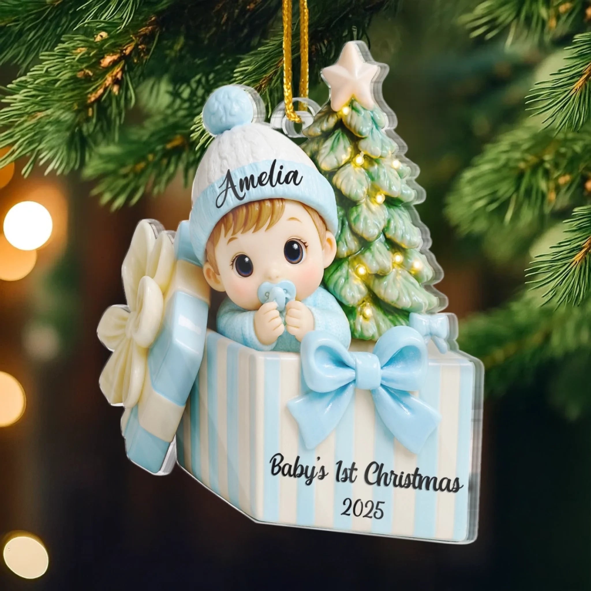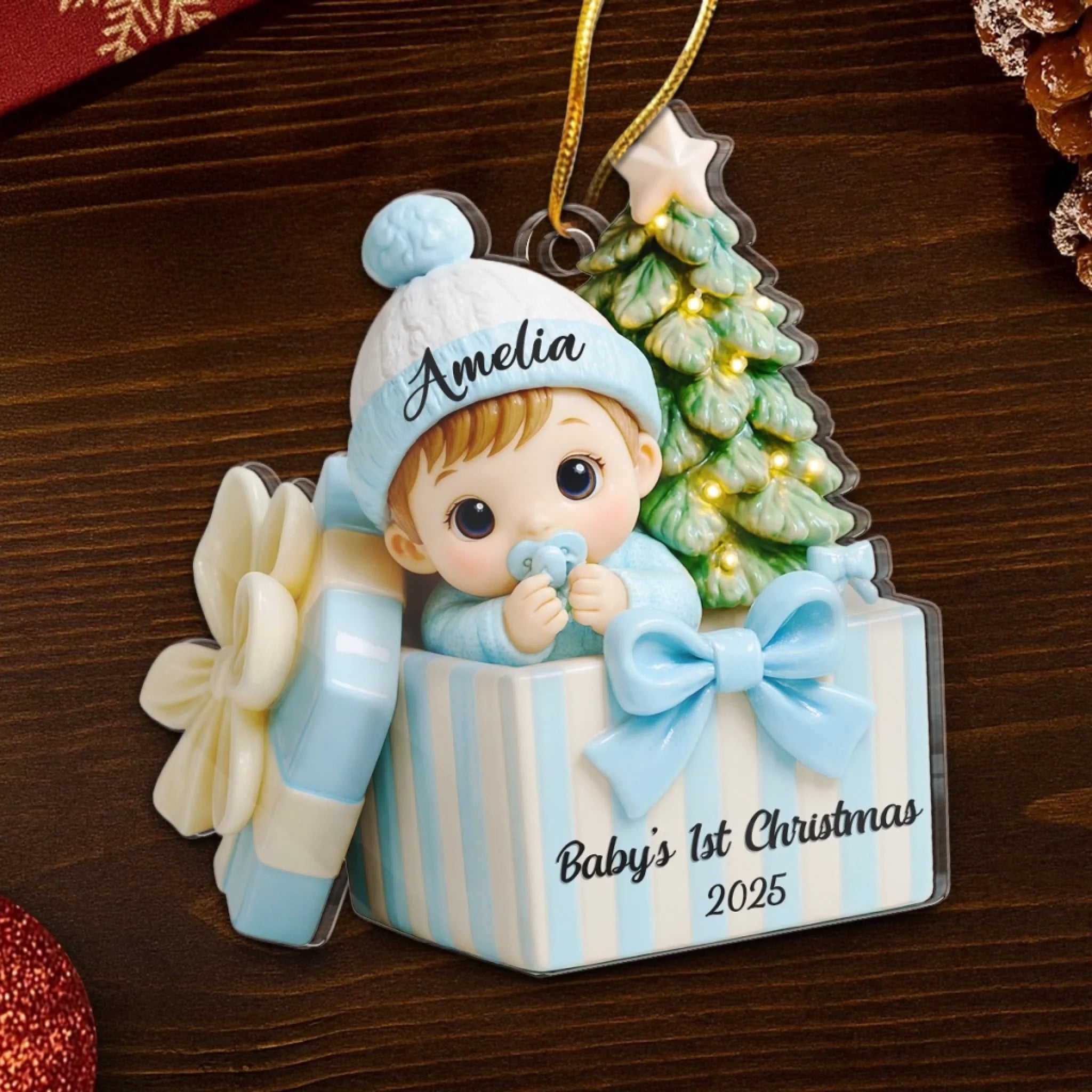 Custom First Christmas Acrylic Ornament - Personalized Christmas Baby Shower, Gender Reveal Gifts For New Moms, New Dads, New Parents - Joy Wrapped In Love
