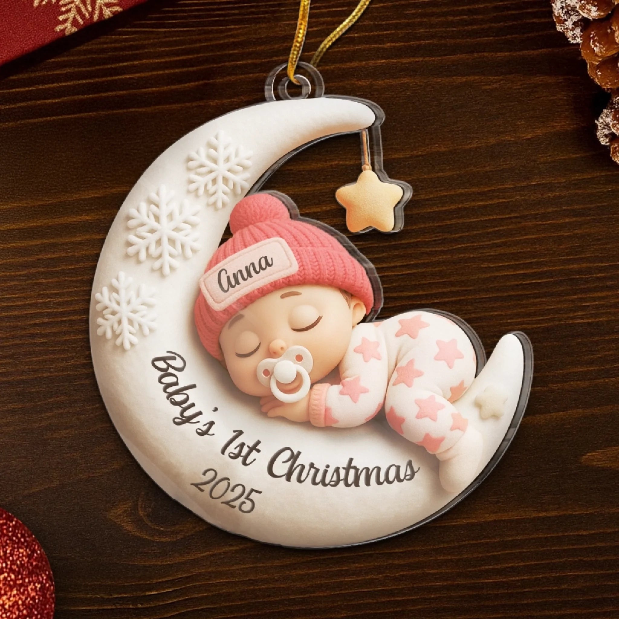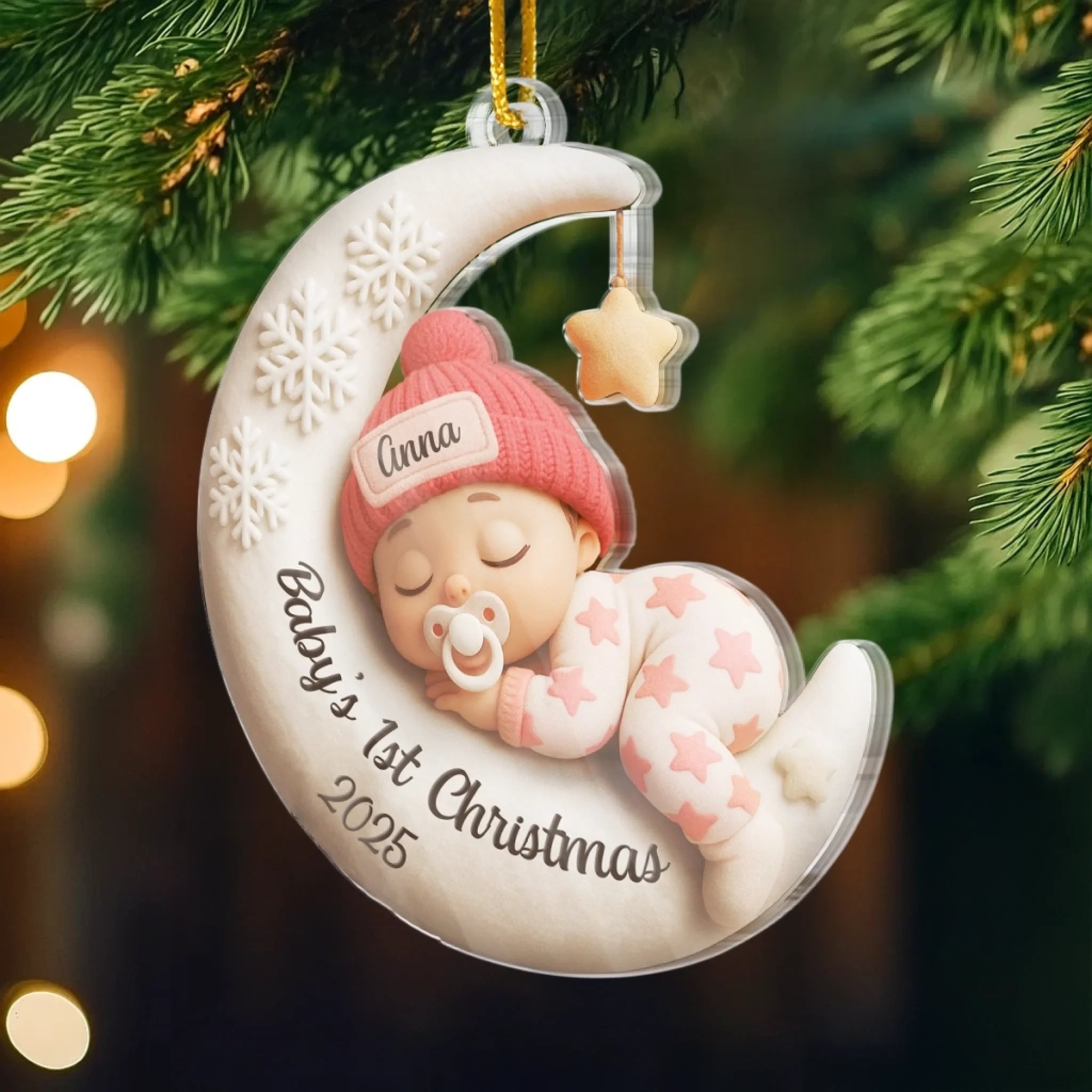 Custom First Christmas Acrylic Ornament - Personalized Christmas Baby Shower, Gender Reveal Gifts For New Moms, New Dads, New Parents - Love Born This Year