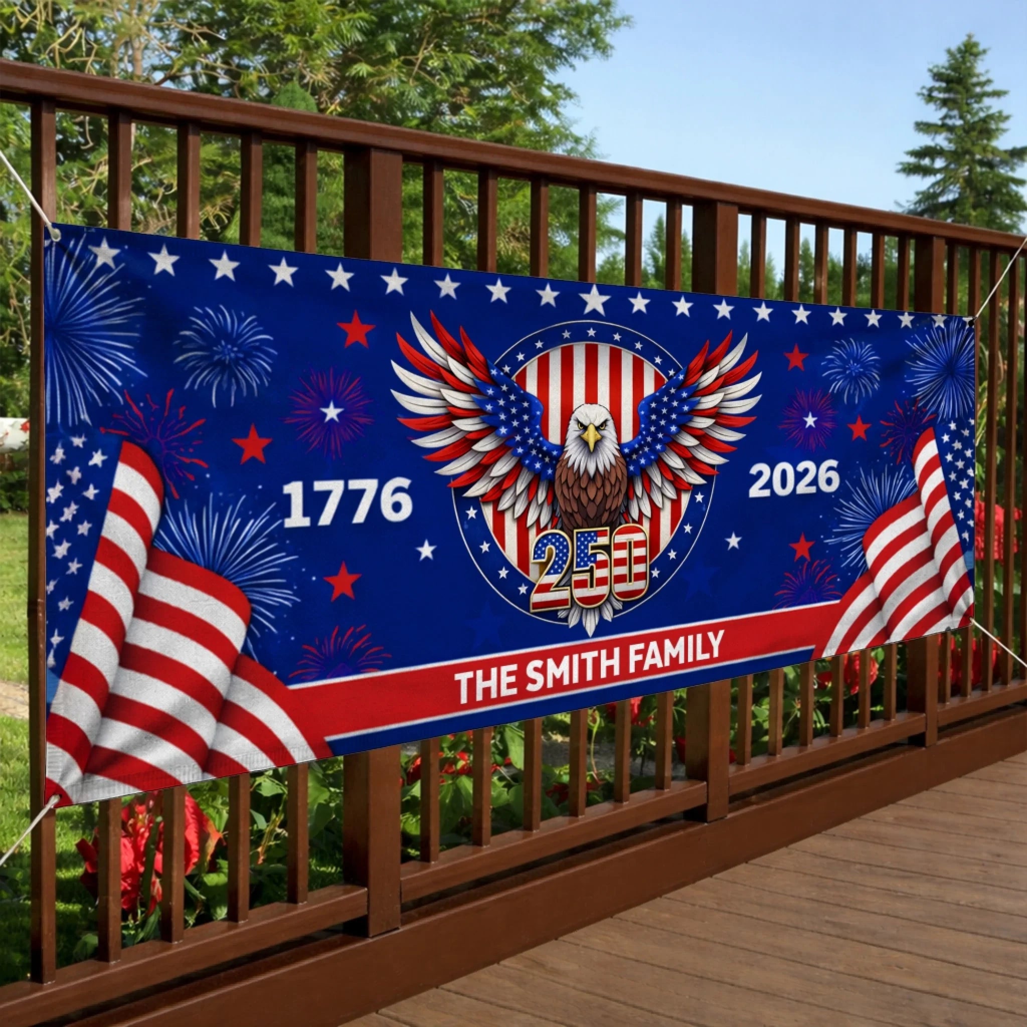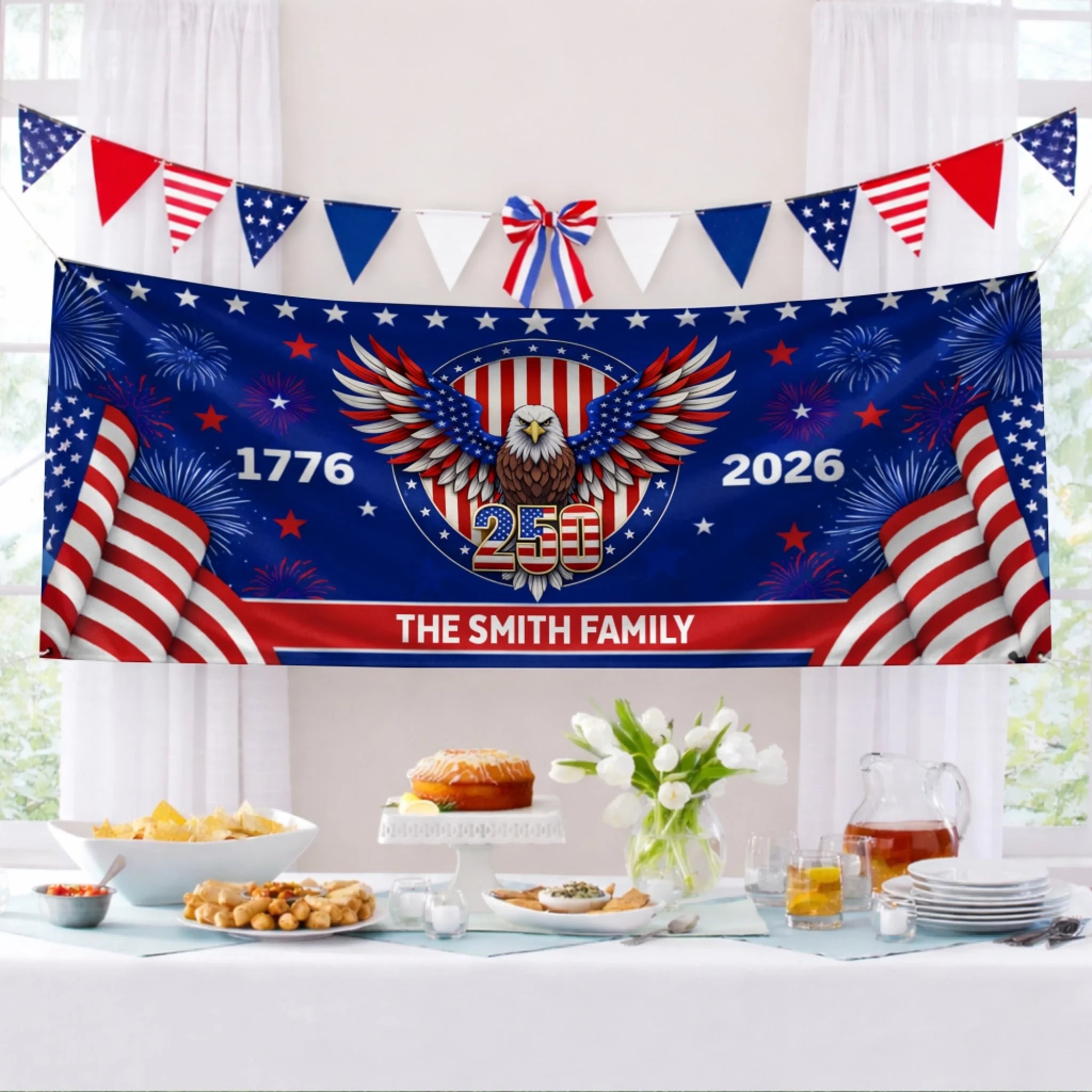 Custom Horizontal Banner - Personalized America 250th Anniversary Gifts For Mom, Dad, Brother, Sister, Kids - Family Together Always