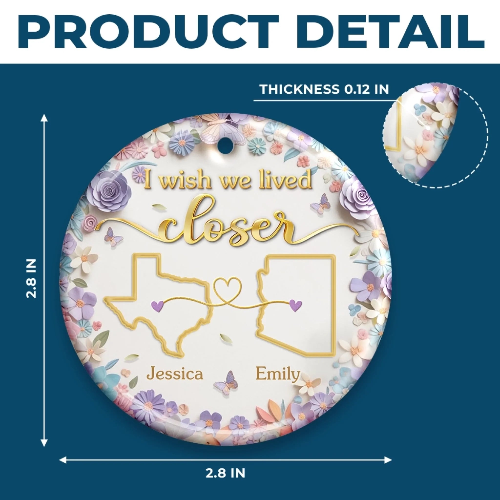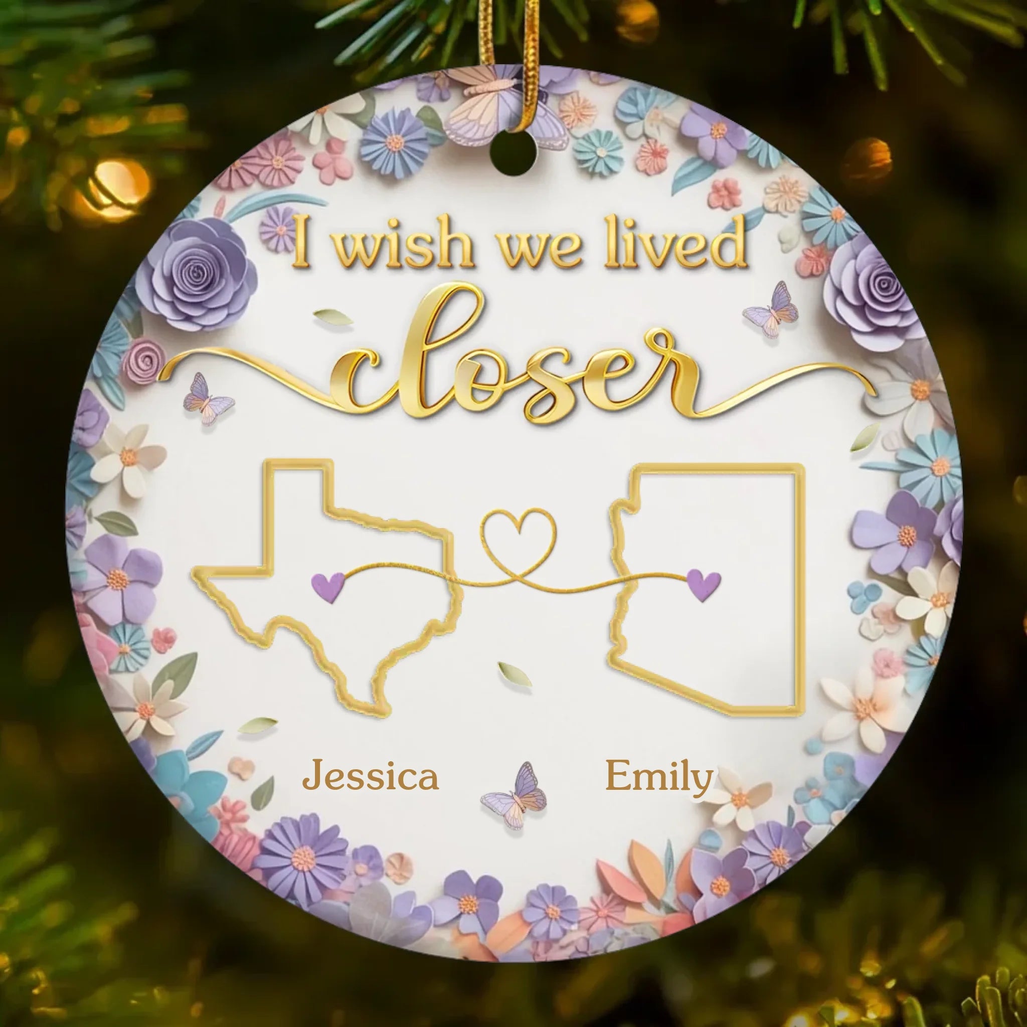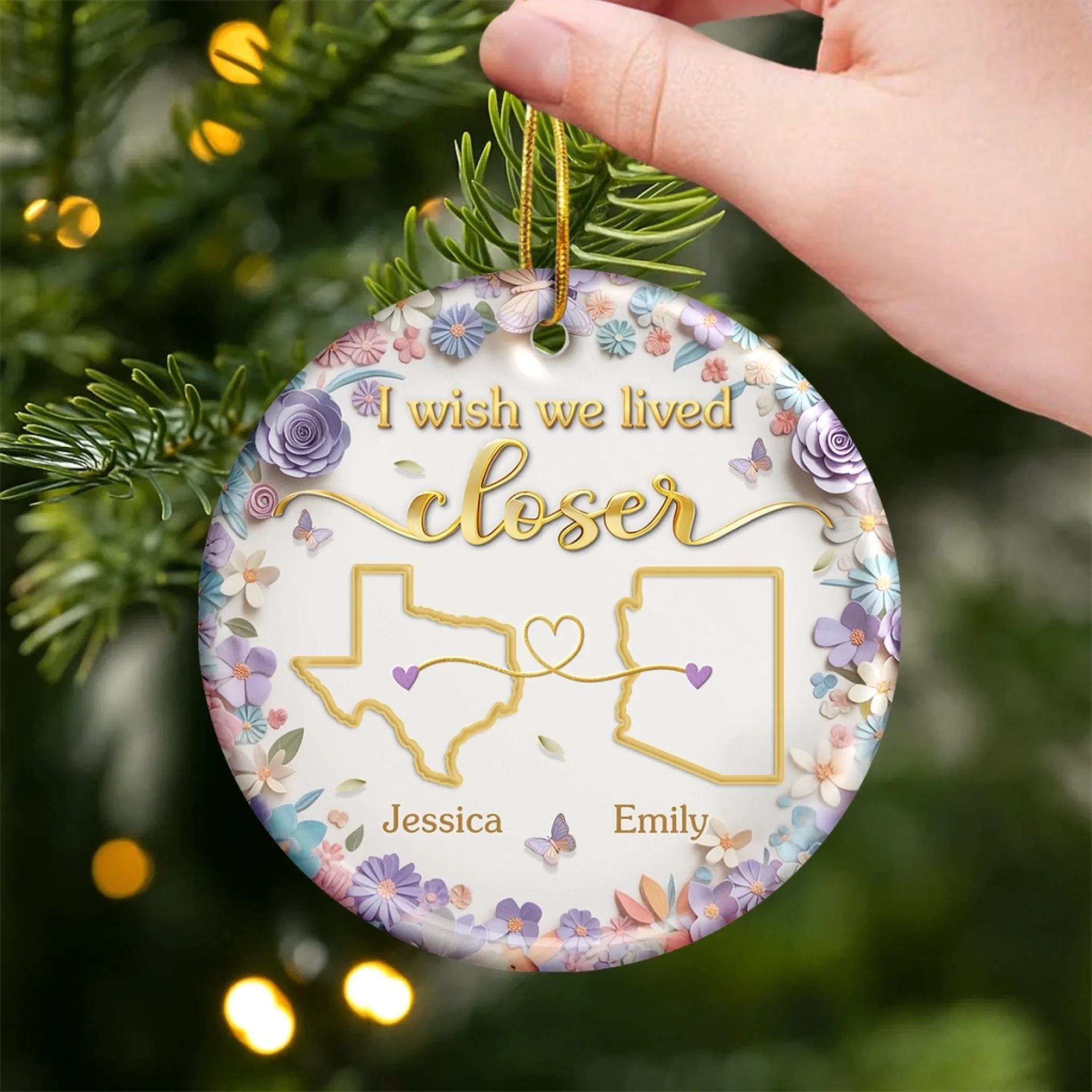 Custom Long Distance Ceramic Ornament - Personalized Best Friend Christmas Birthday Gifts For Women, Besties, Sisters, BFF - Connected Beyond Distance