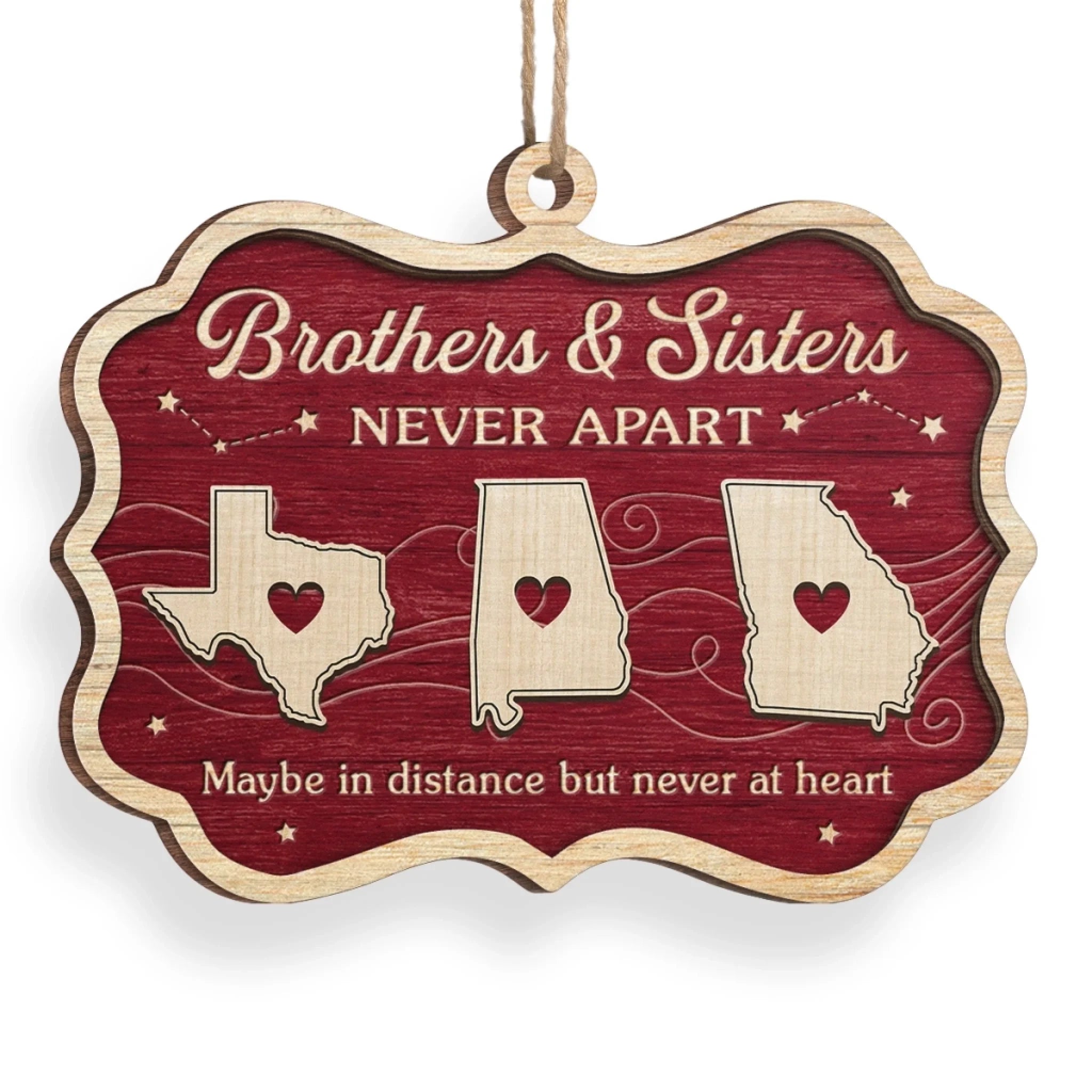 Custom Long Distance Wood Ornament - New Arrival, Personalized Christmas Birthday Gifts For Brother, Sister - Sibling Love Knows No Borders AMZ1