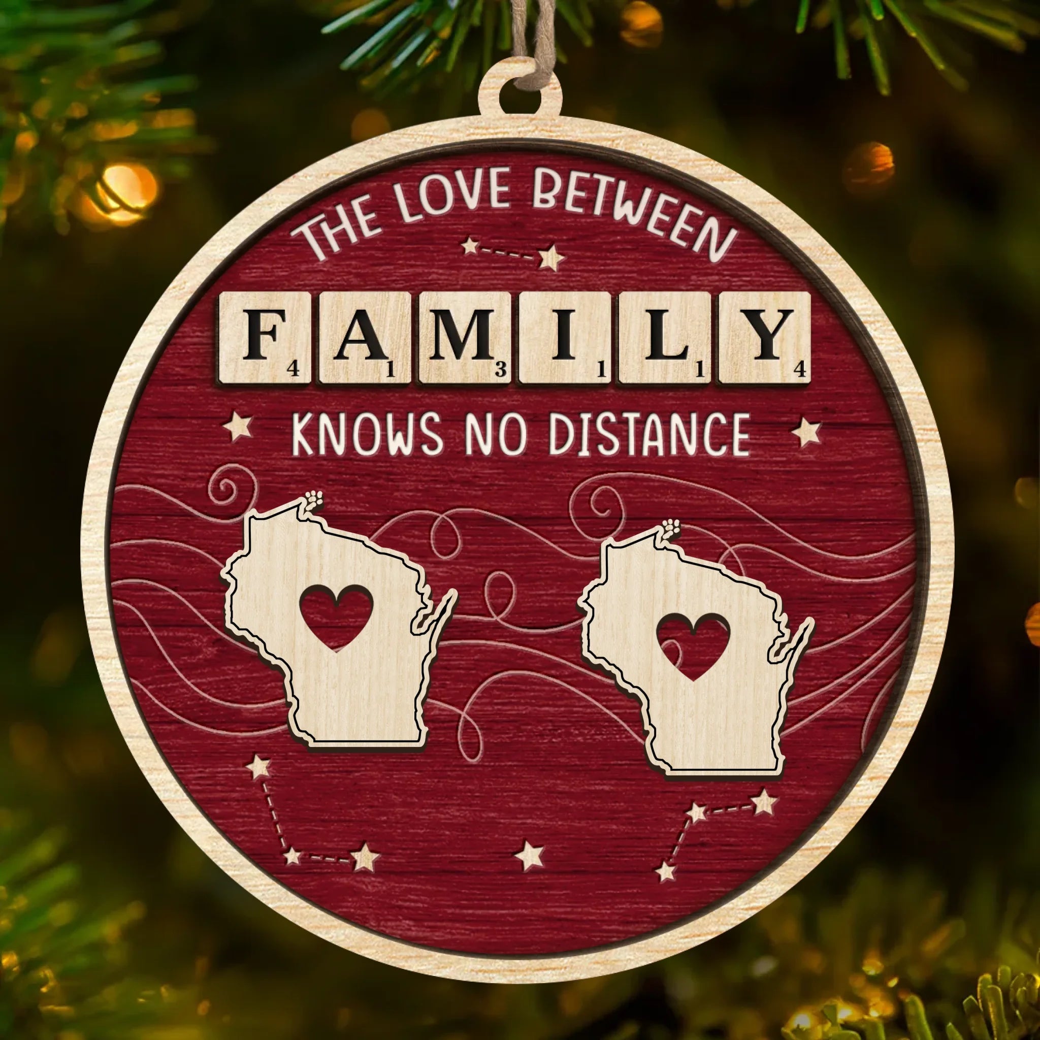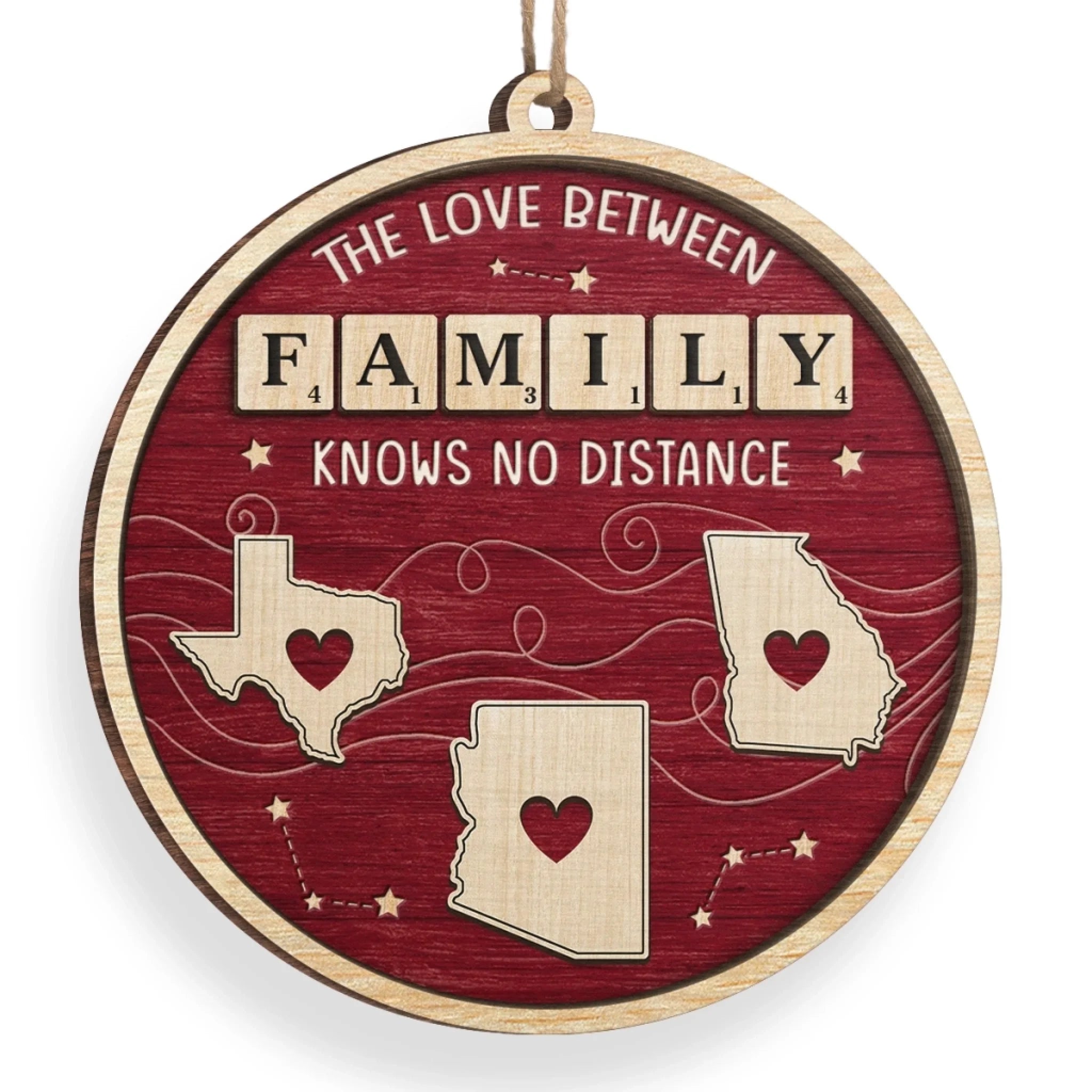 Custom Long Distance Wood Ornament - Personalized Christmas Birthday Gifts For Mom, Dad, Brother, Sister, Kids - Hearts Across States, Bound By Love