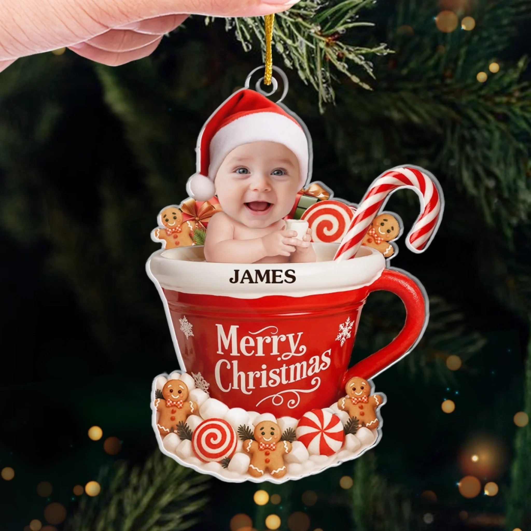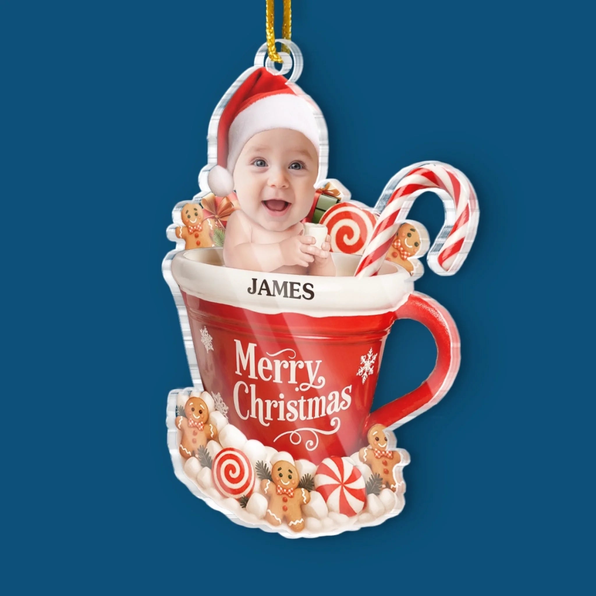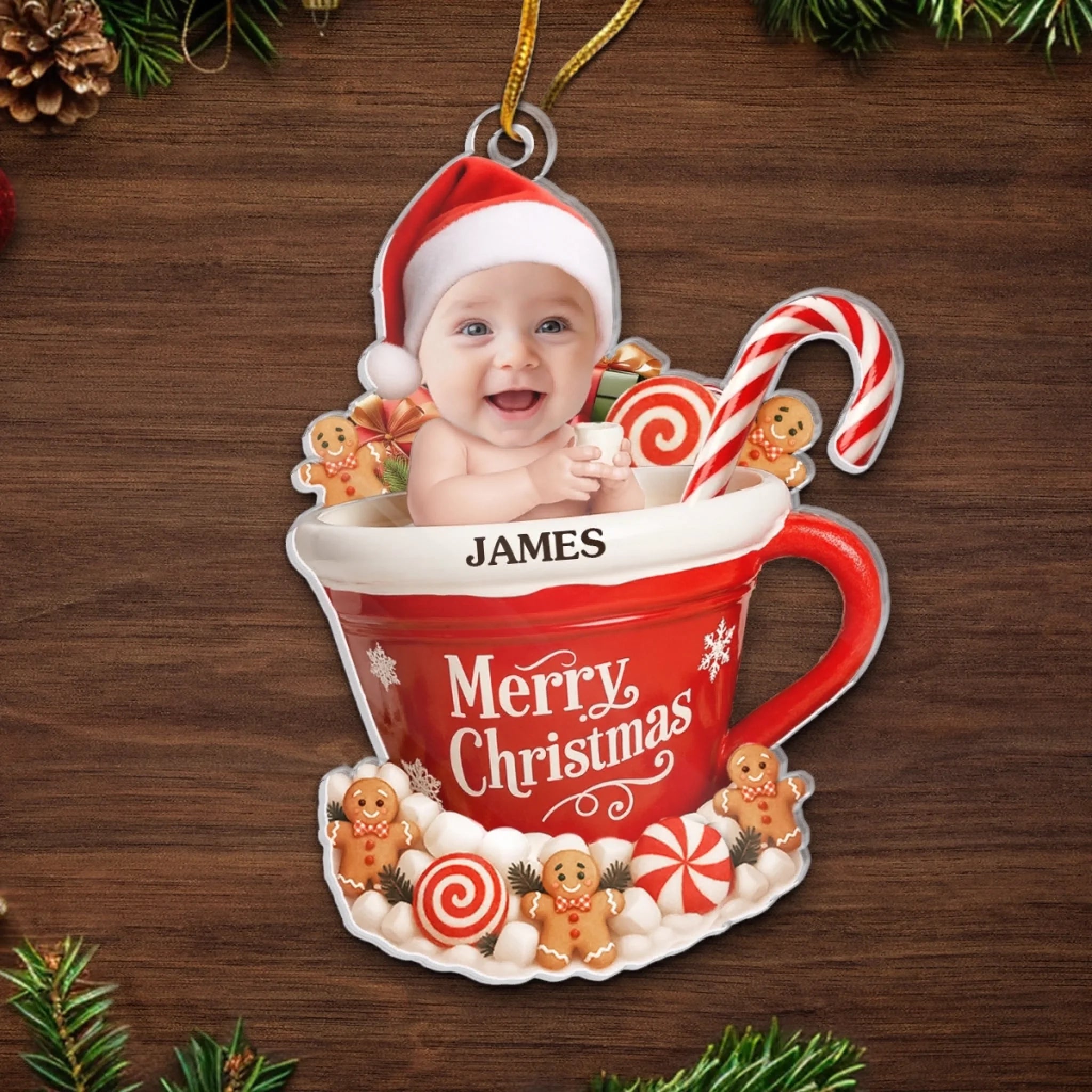 Custom Photo Acrylic Ornament - Personalized Christmas Baby Shower, Gender Reveal Gifts For New Moms, New Dads, New Parents - Gingerbread’s Newest Member