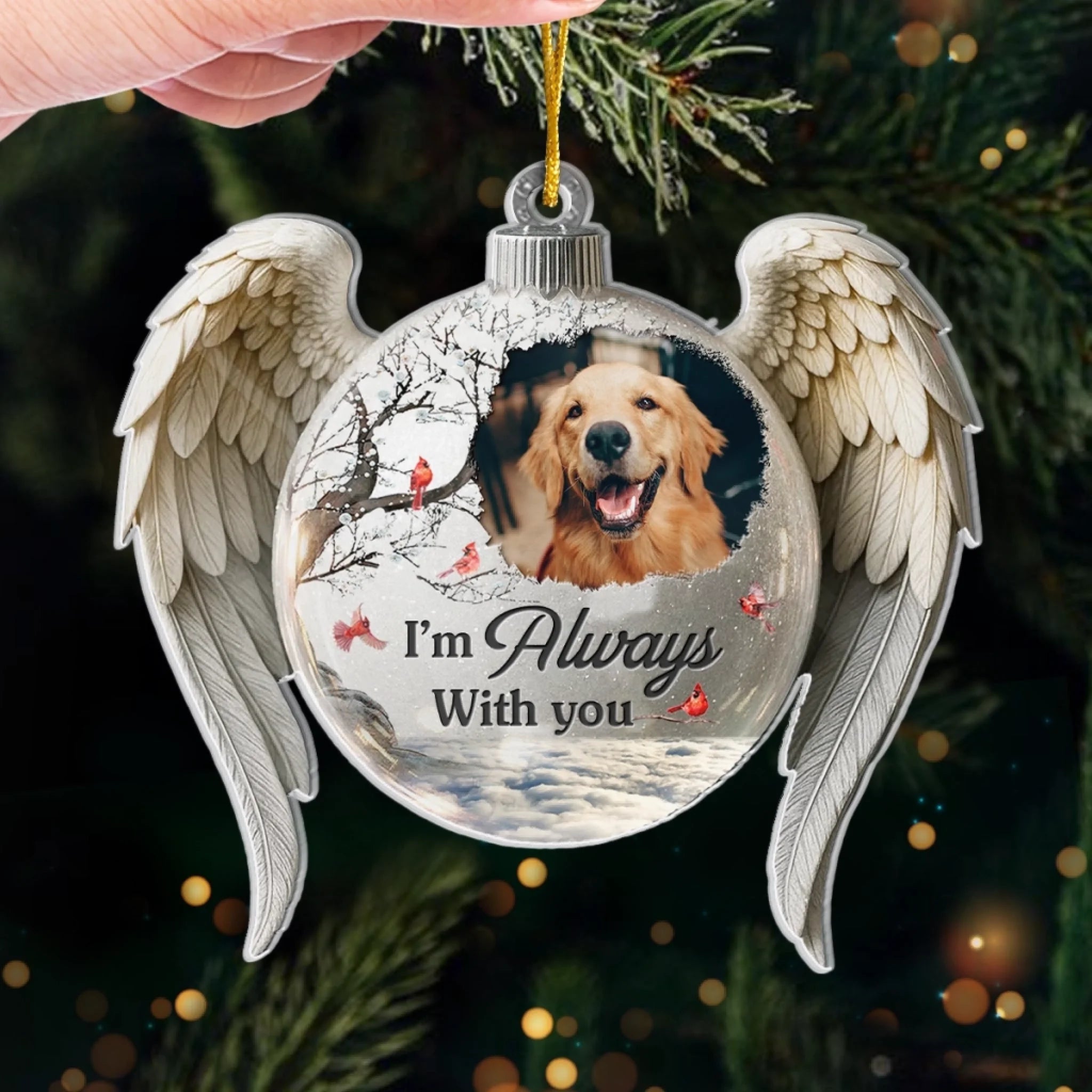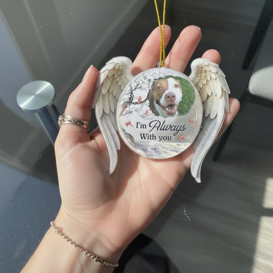 Custom Photo Acrylic Ornament - Personalized Pet Christmas Memorial Sympathy Gifts For Dogs, Cats - Forever In Our Hearts Pawprints Remain