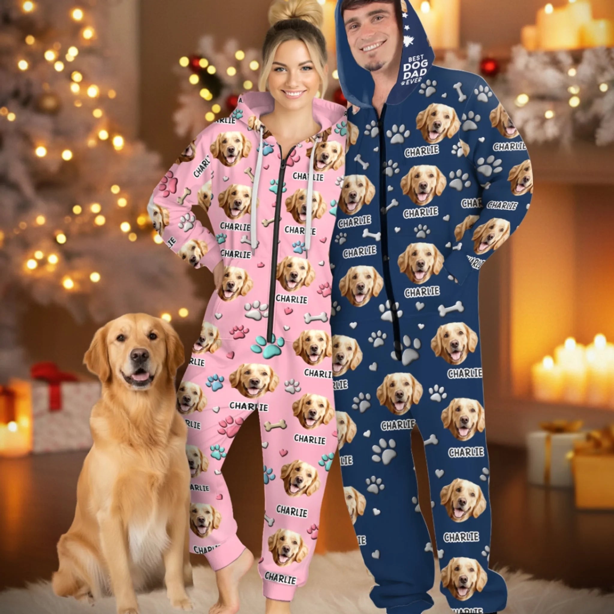 Custom Photo Adult Onesie - Personalized Christmas Birthday Gifts For Dog Cat Lovers, Dog Dad And Mom, Cat Owners - Me And My Dog, The Real Couple Goals