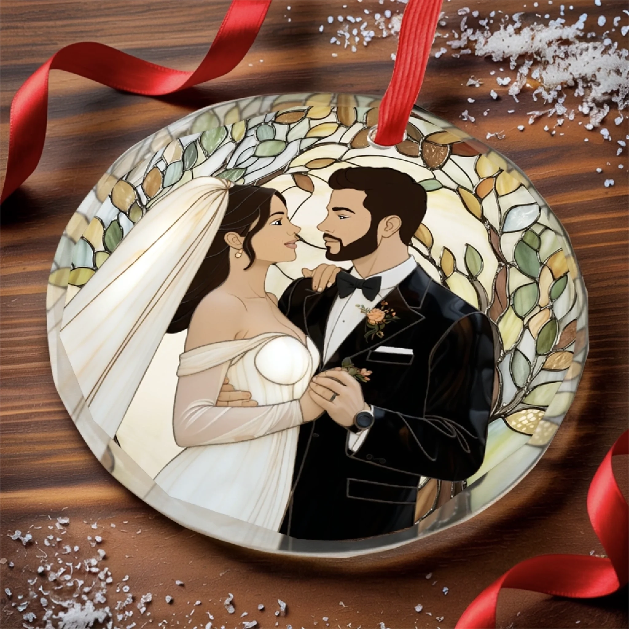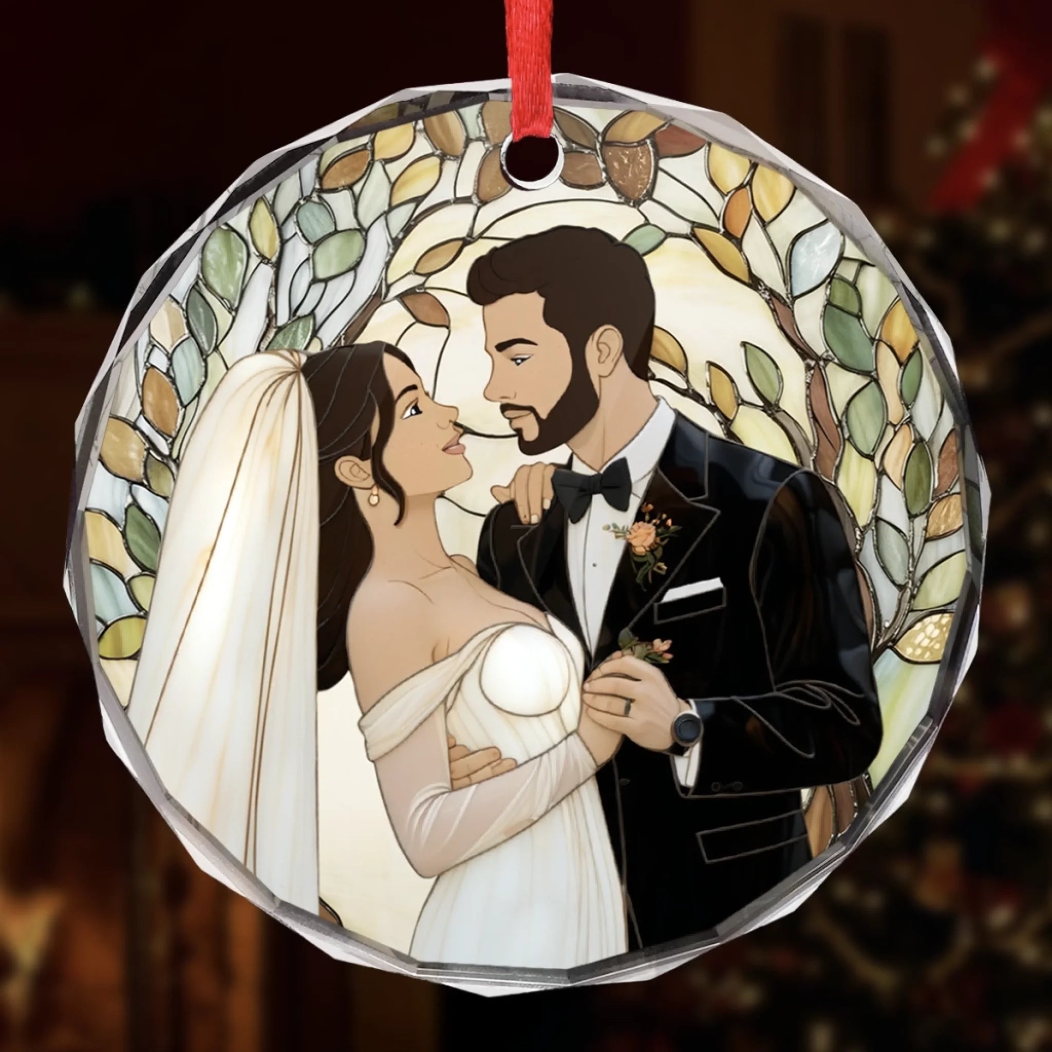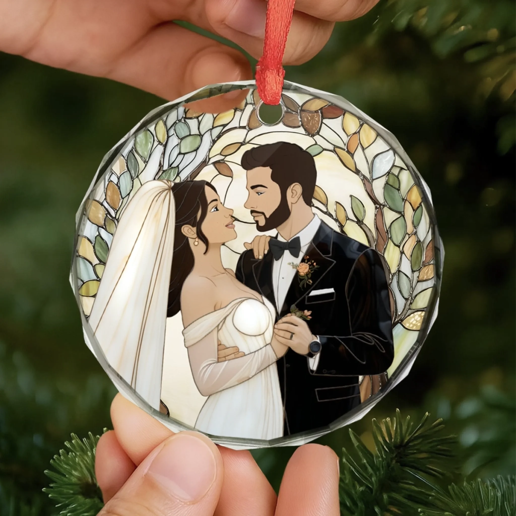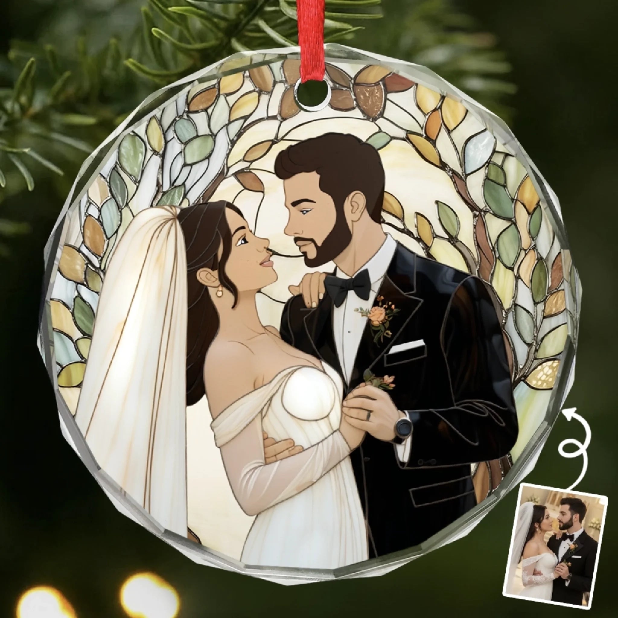 Custom Photo Circle Glass Ornament - Personalized Anniversary Wedding Gifts For Husband And Wife, Him And Her - Two Souls Choosing Us Daily