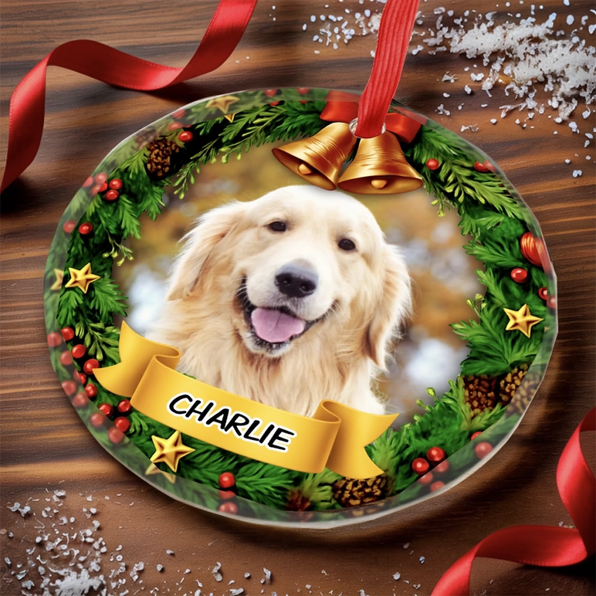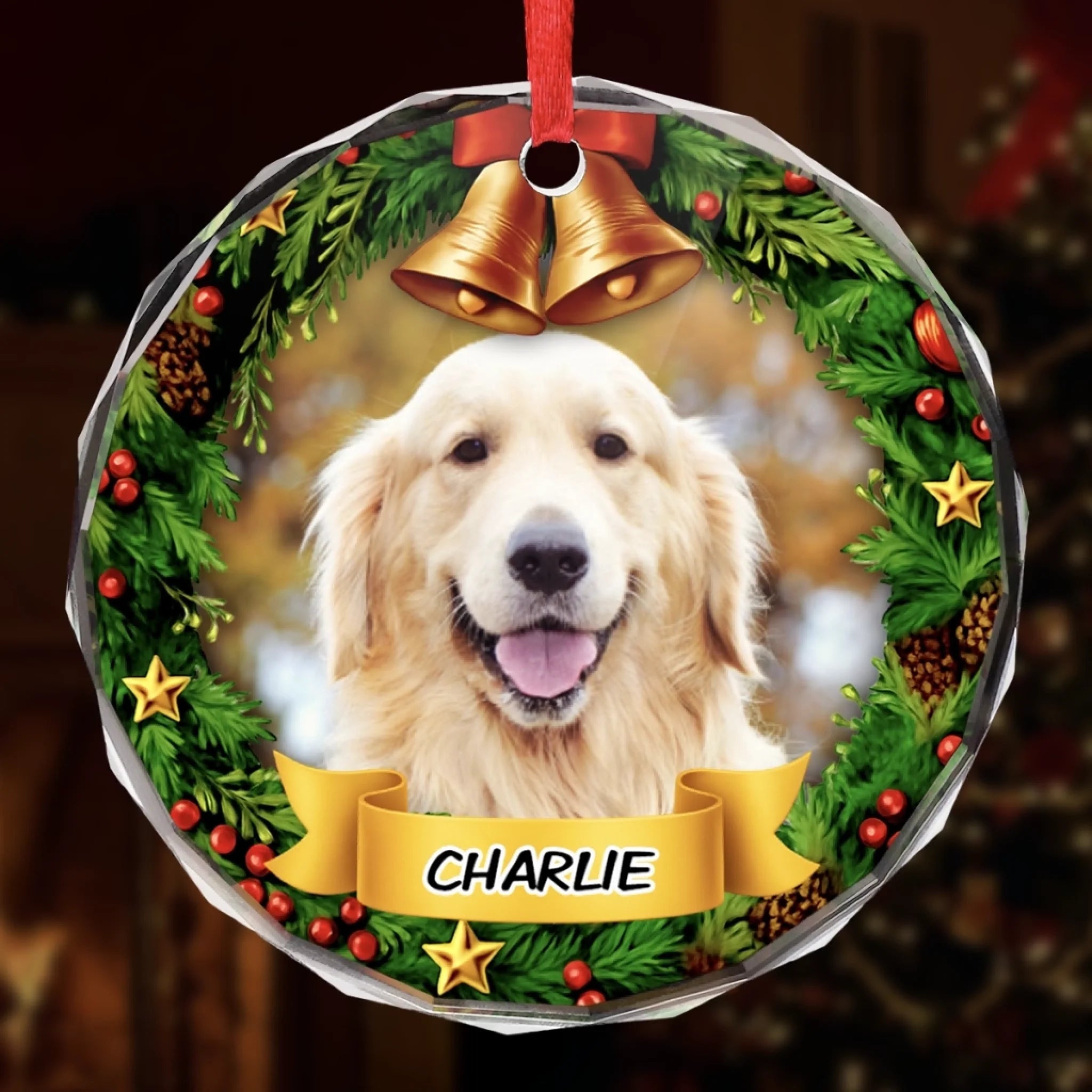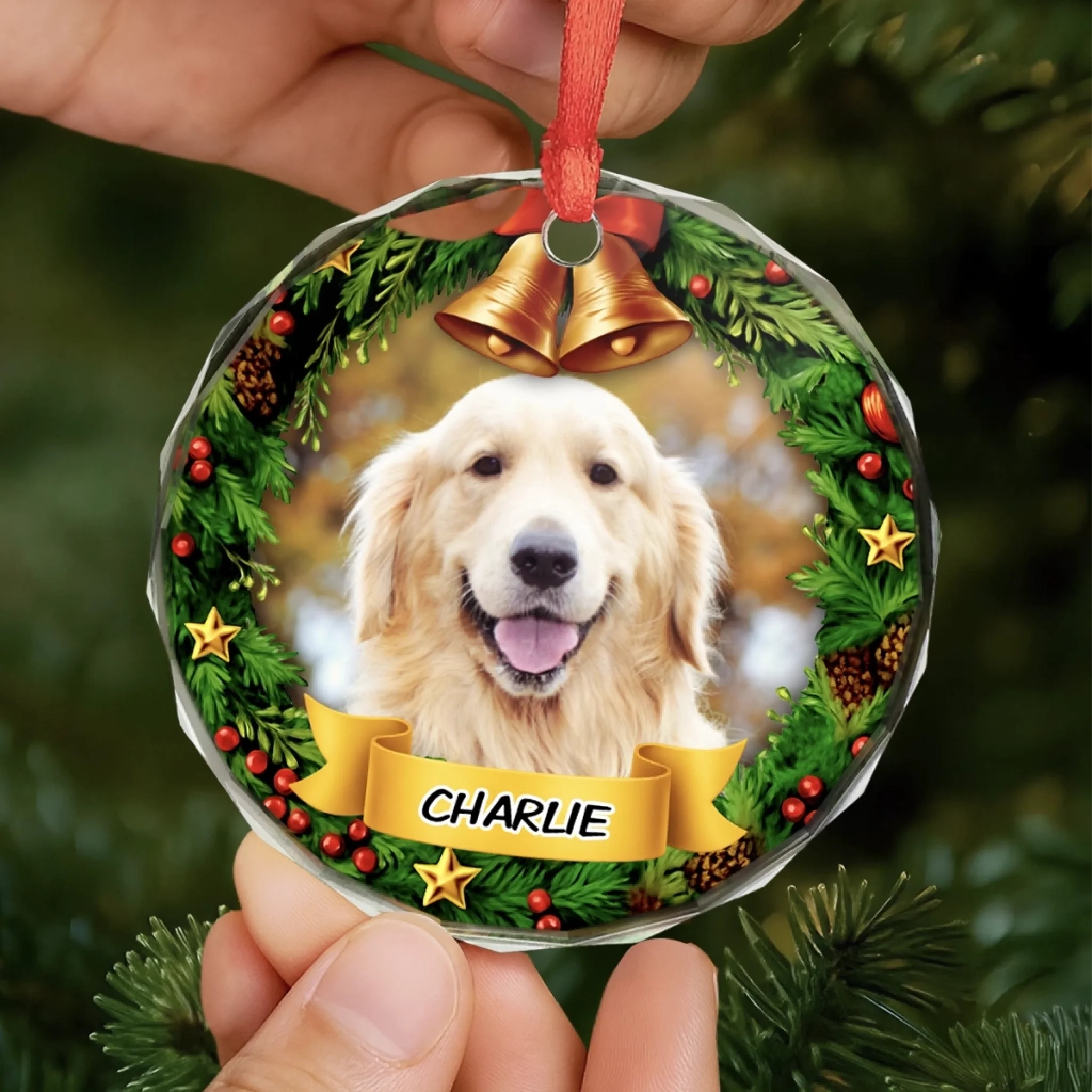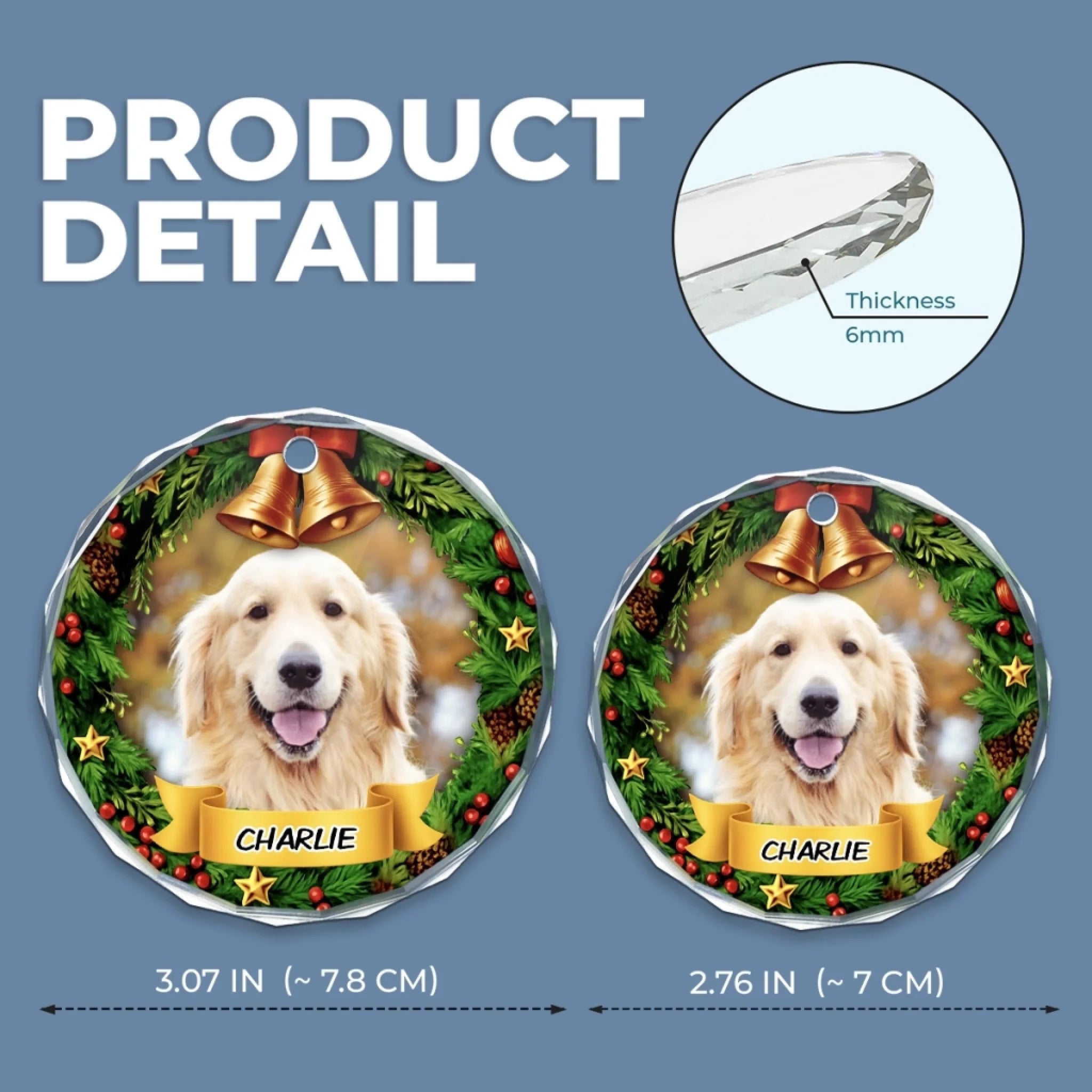 Custom Photo Circle Glass Ornament - Personalized Pet Christmas Memorial Sympathy Gifts For Dogs, Cats - Forever Pawprints On My Heart