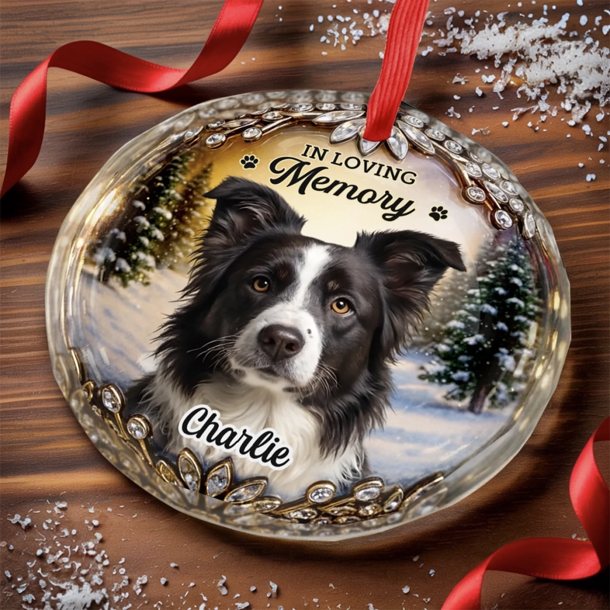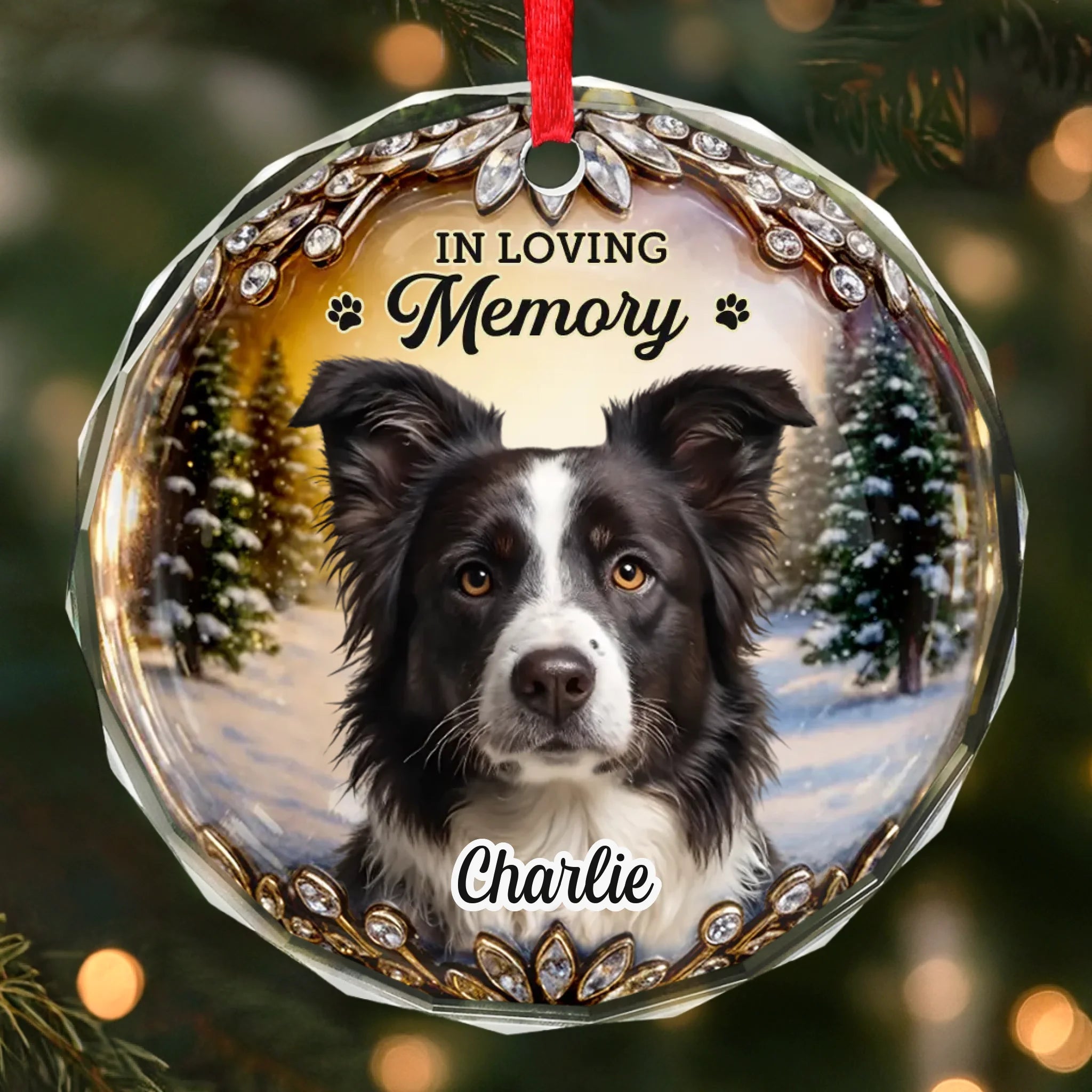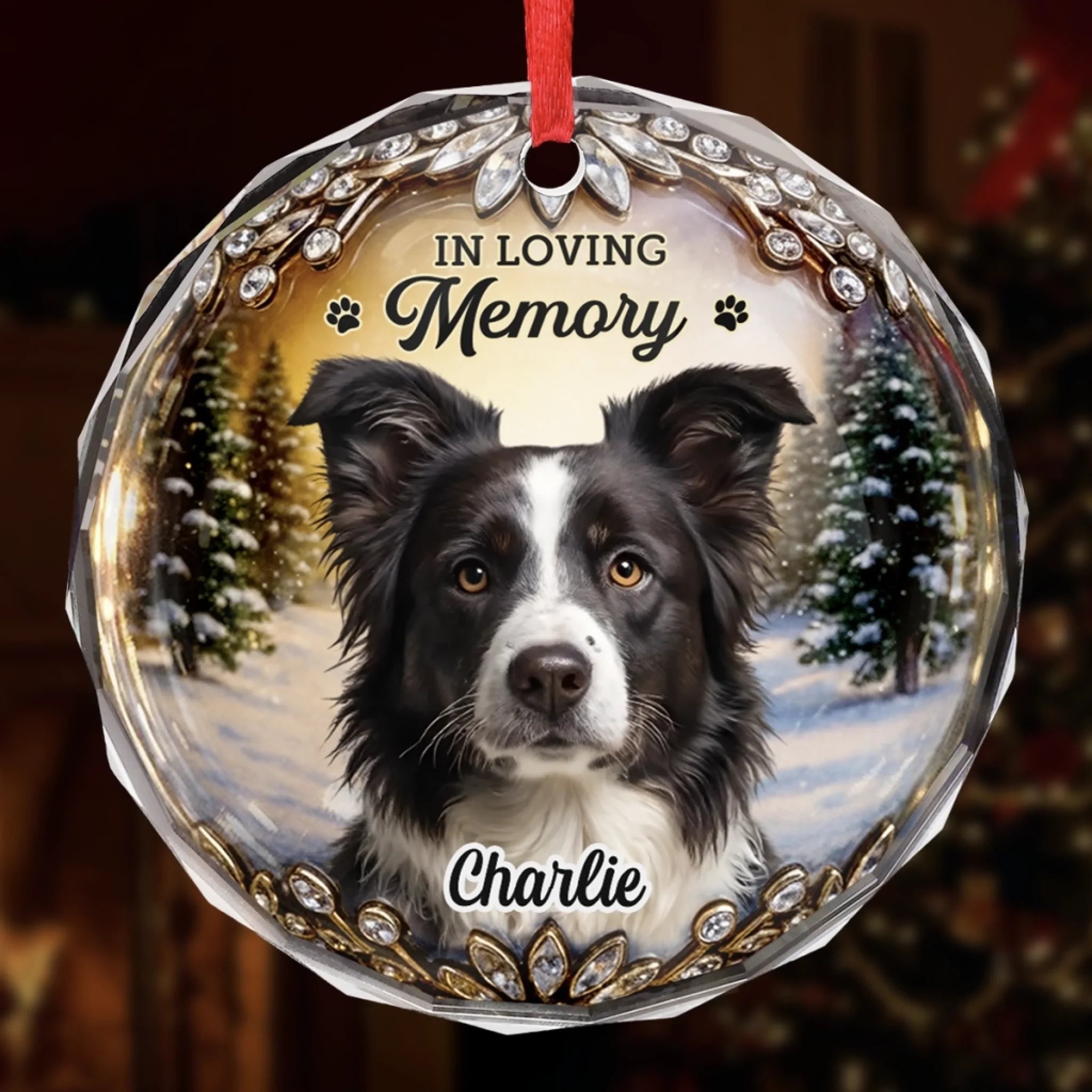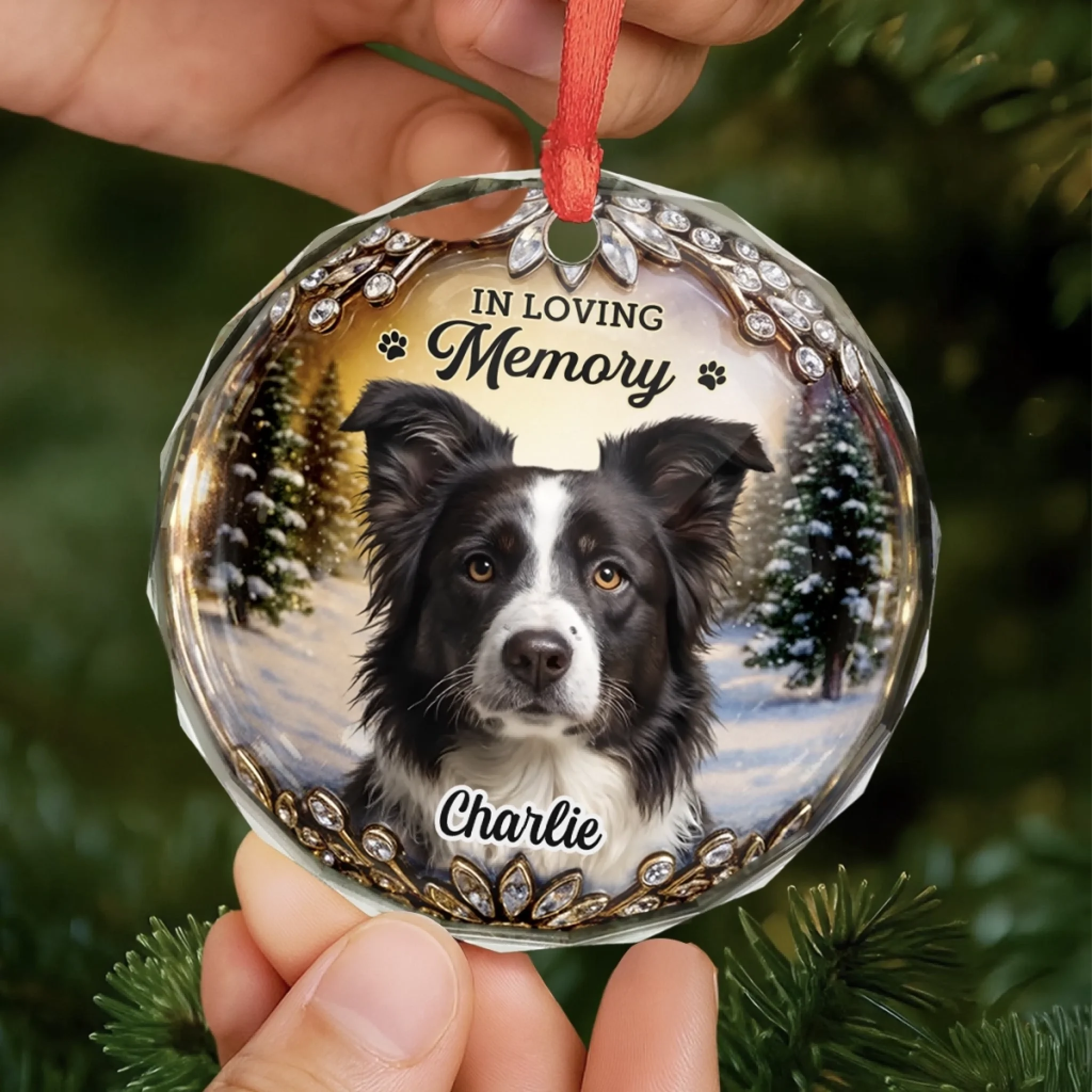 Custom Photo Circle Glass Ornament - Personalized Pet Christmas Memorial Sympathy Gifts For Dogs, Cats - Warm Memories Forever Loved