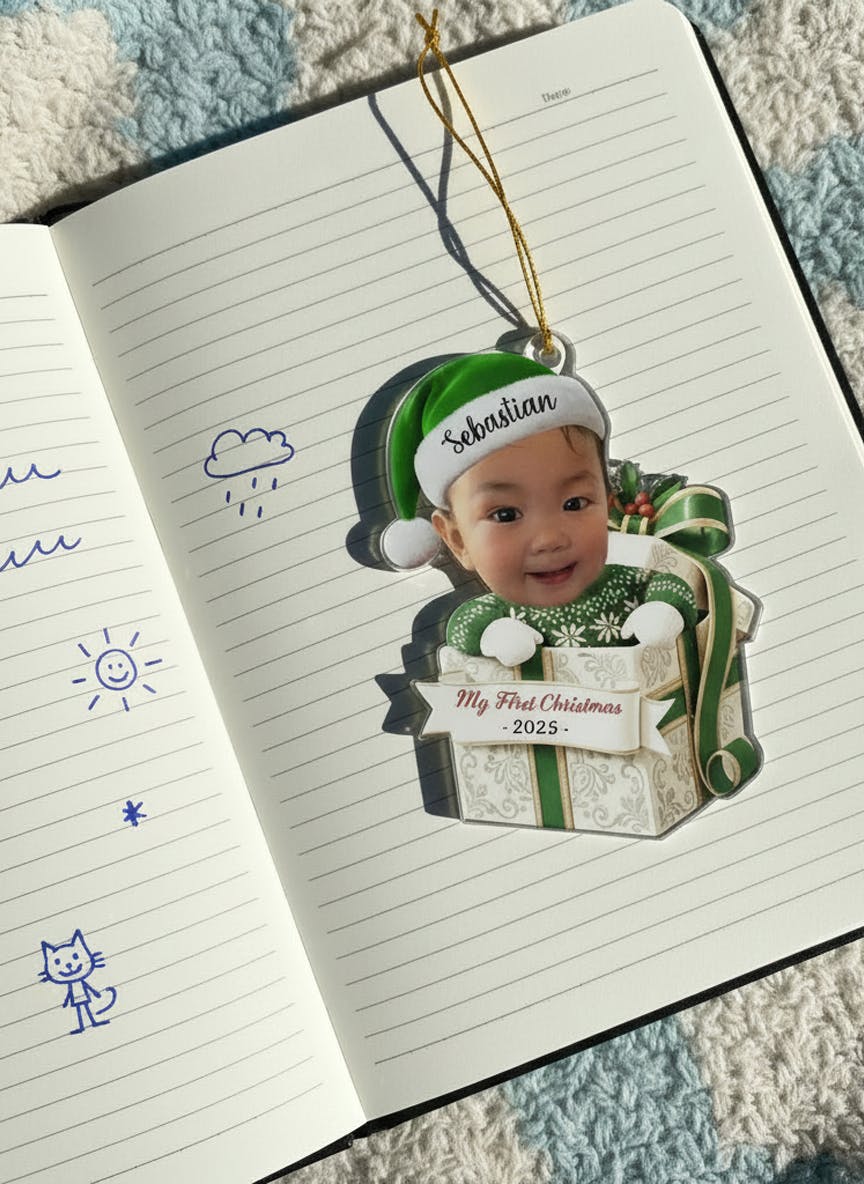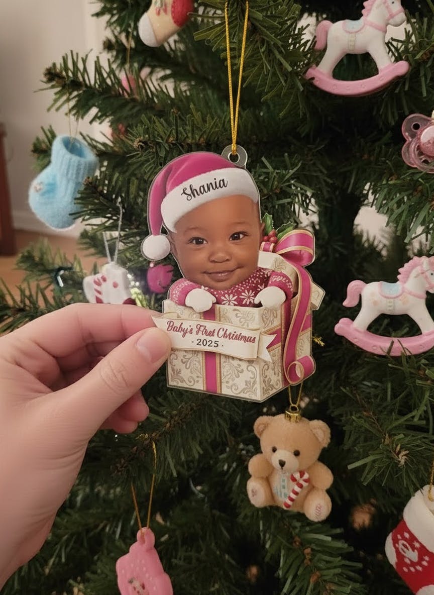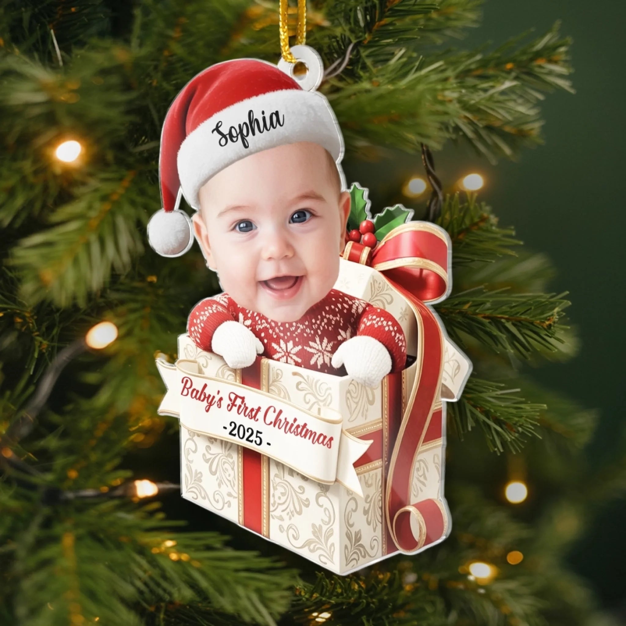 Custom Photo First Christmas Acrylic Ornament - Personalized Christmas Baby Shower, Gender Reveal Gifts For New Moms, New Dads, New Parents - Little Feet Big Blessing