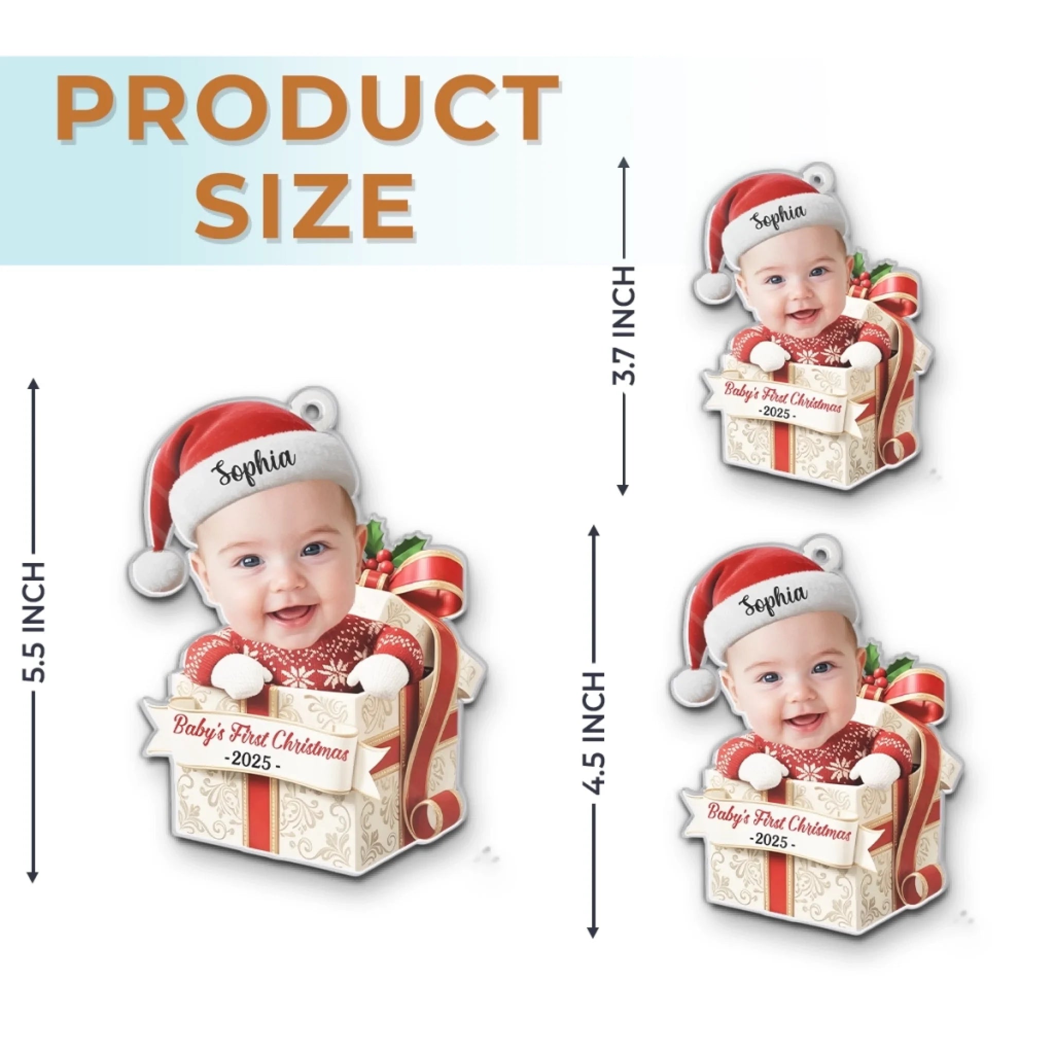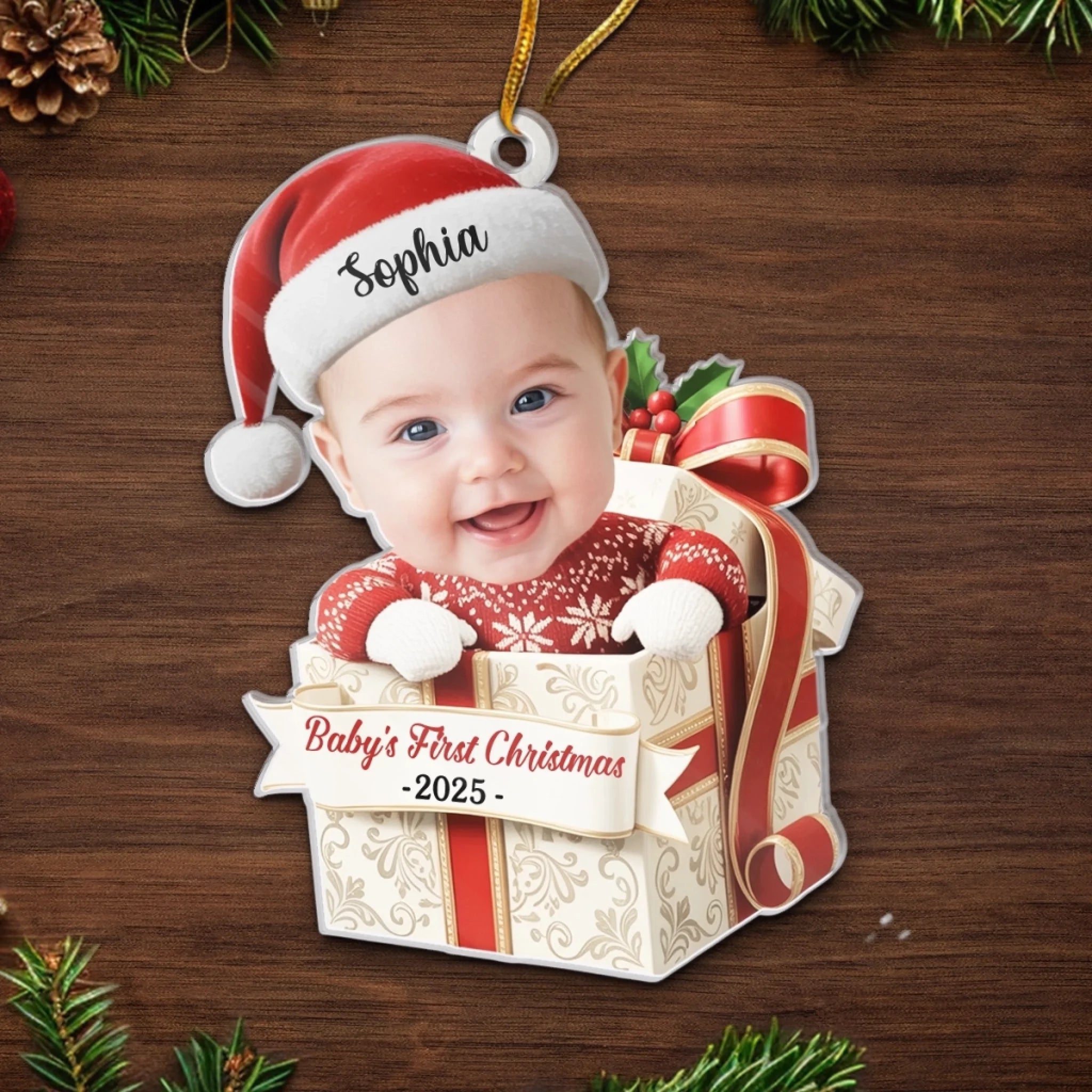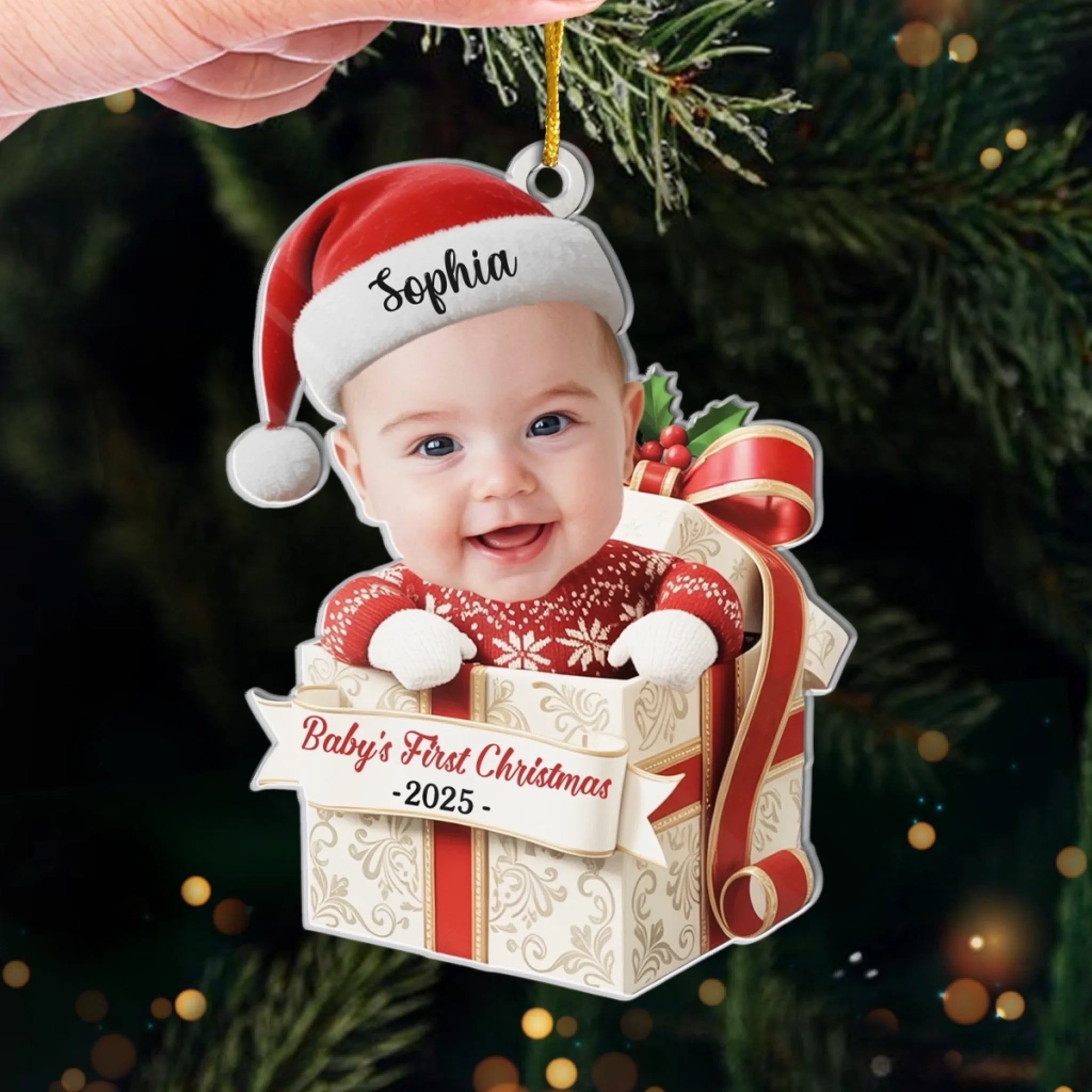 Custom Photo First Christmas Acrylic Ornament - Personalized Christmas Baby Shower, Gender Reveal Gifts For New Moms, New Dads, New Parents - Little Feet Big Blessing