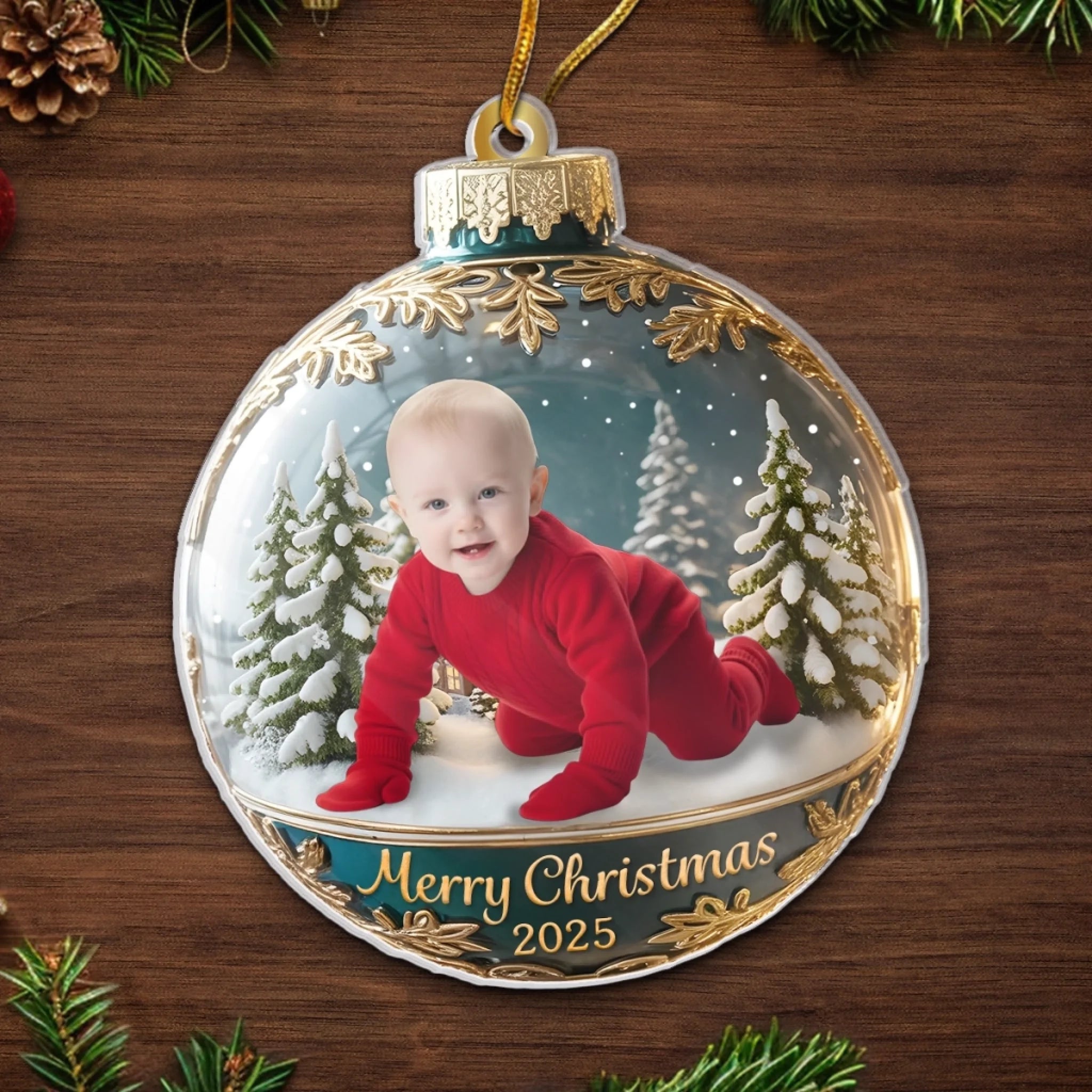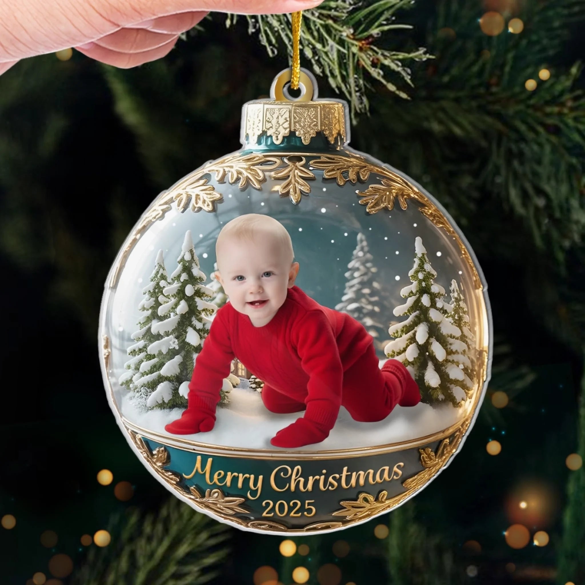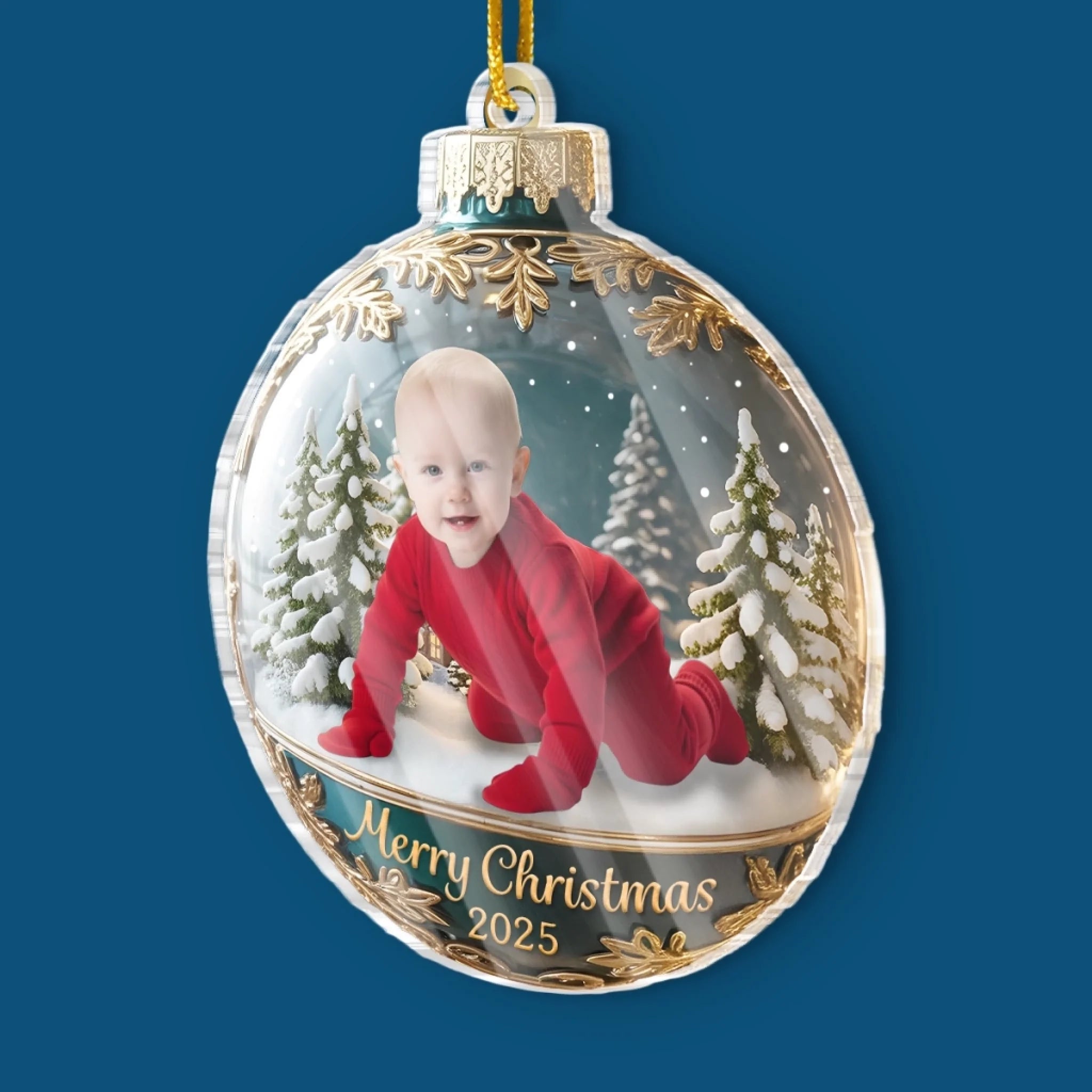 Custom Photo First Christmas Acrylic Ornament - Personalized  Christmas Baby Shower, Gender Reveal Gifts For New Moms, New Dads, New Parents - Little Star Of Our Holiday Night