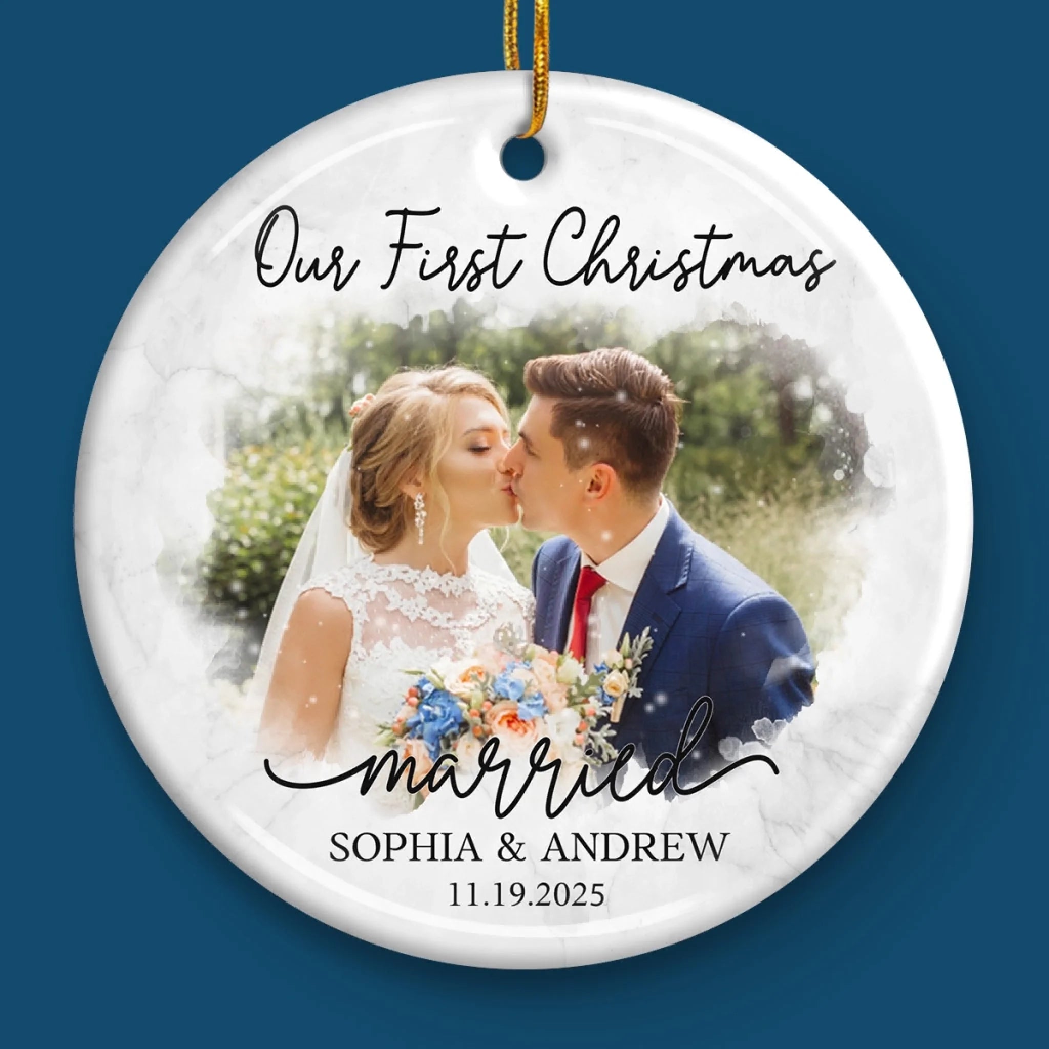 Custom Photo Our First Year Together - Couple Personalized Custom Ornament - Ceramic Round Shaped - Christmas Gift For Husband Wife, Anniversary, First Christmas