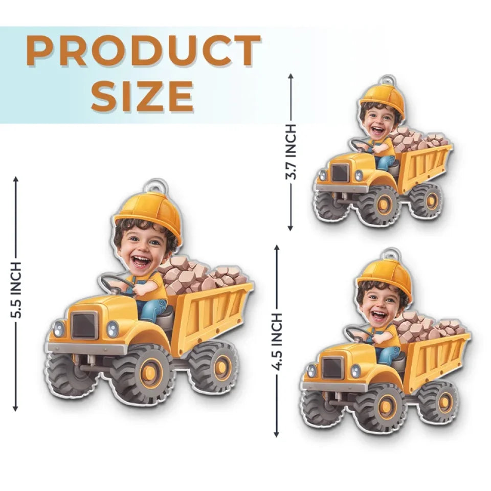 Custom Photo The Tiny, Professional Construction Truck Driver - Family Personalized Custom Ornament - Acrylic Custom Shaped - Christmas Gift For Kids