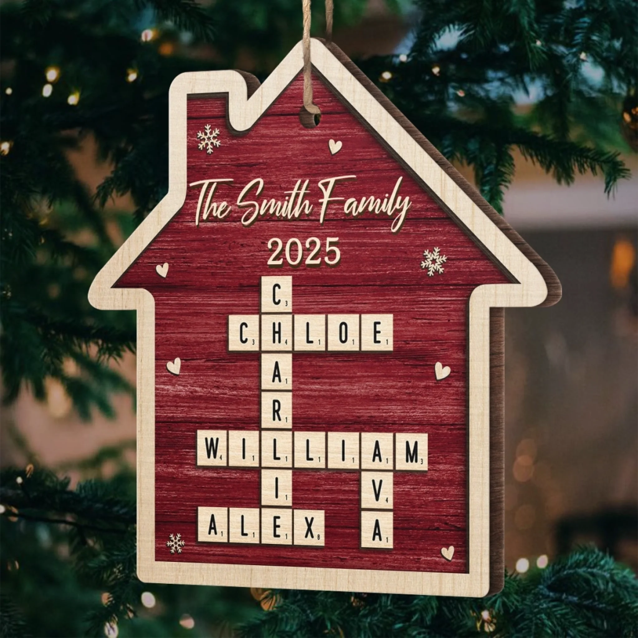Custom Scrabble Wood Ornament - Personalized Christmas Birthday Gifts For Mom, Dad, Brother, Sister, Kids - Our Home, One Letter At A Time