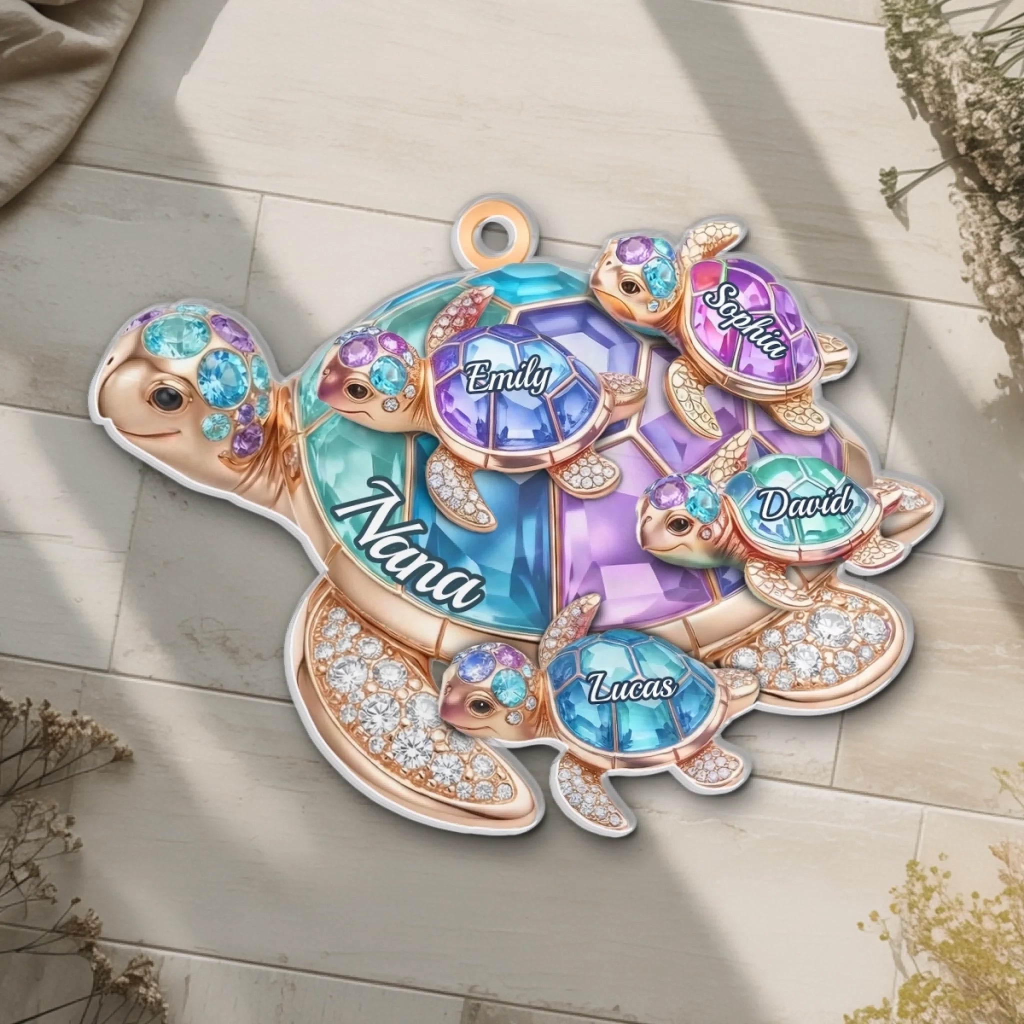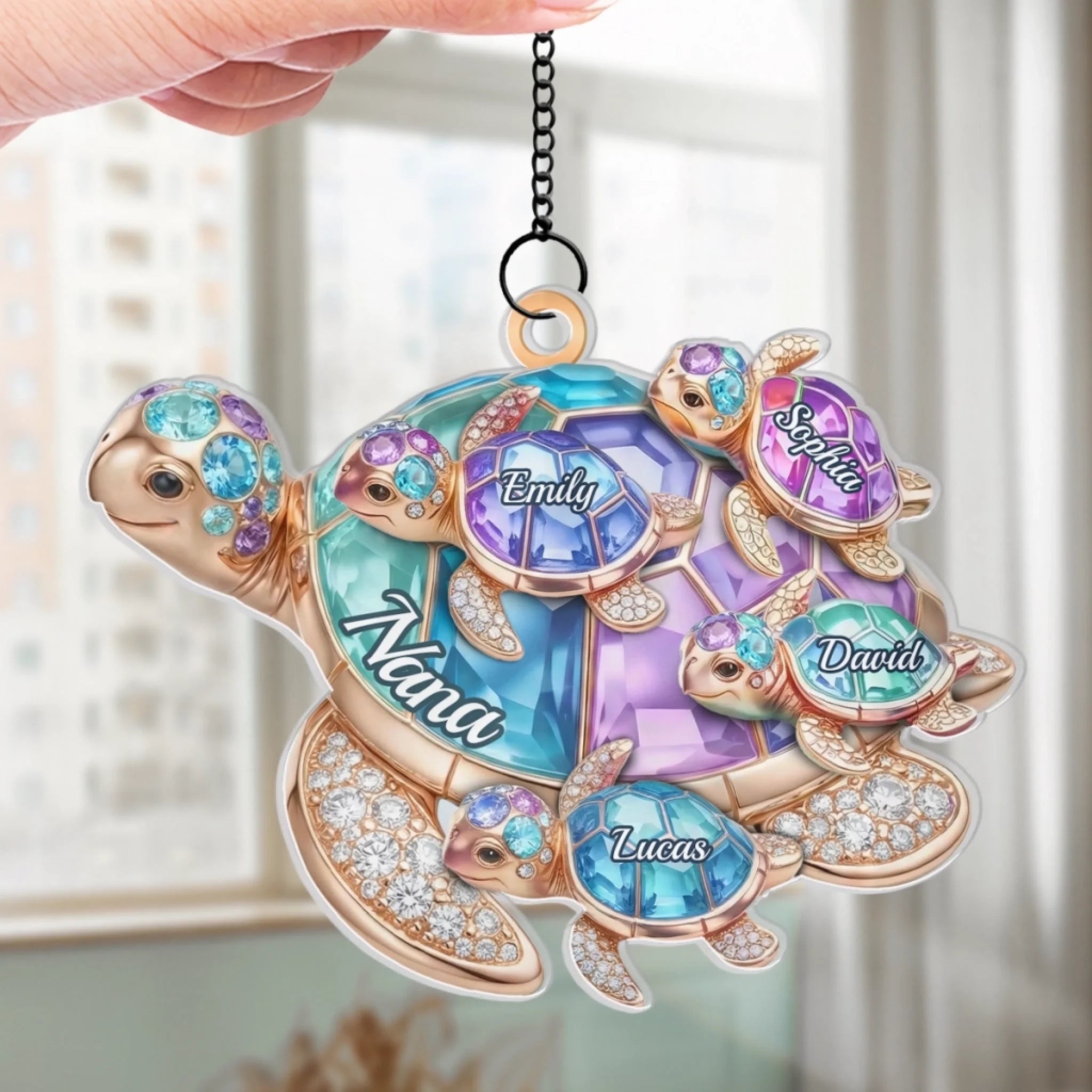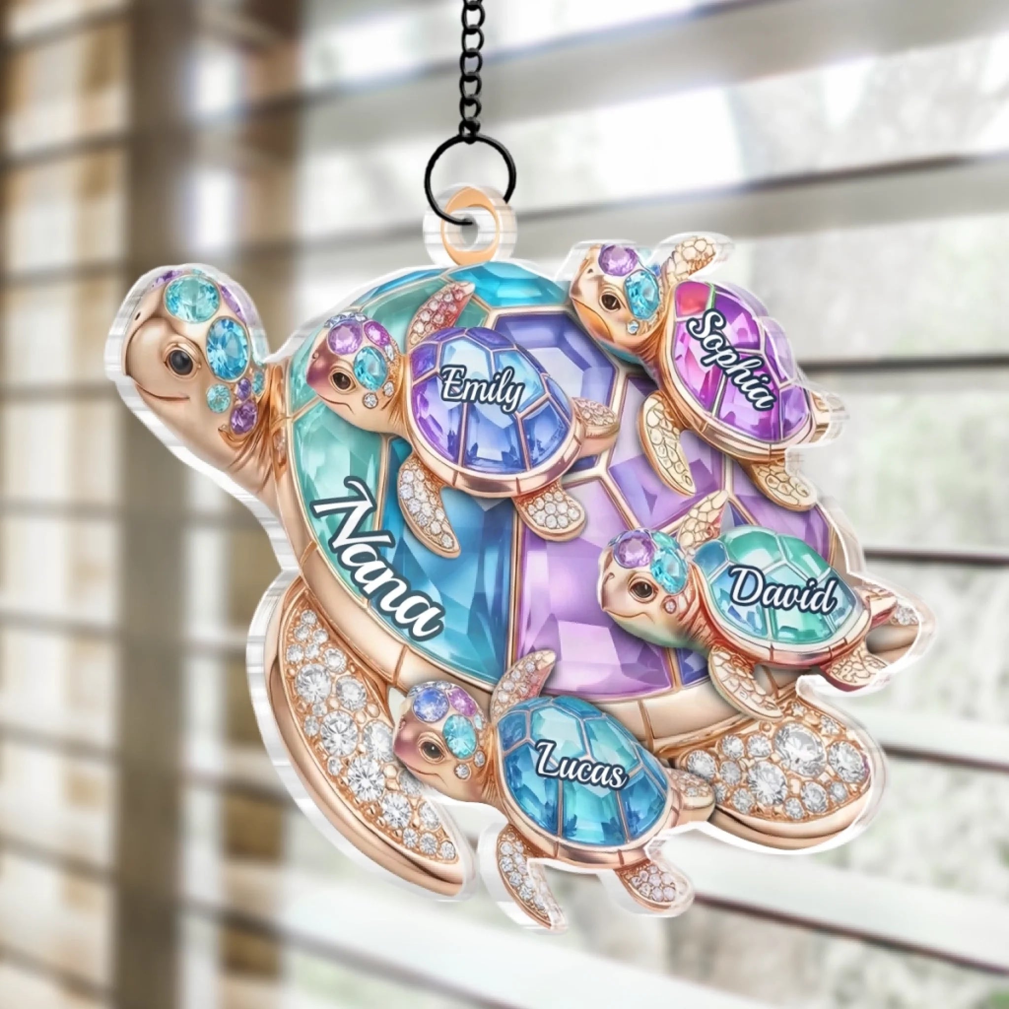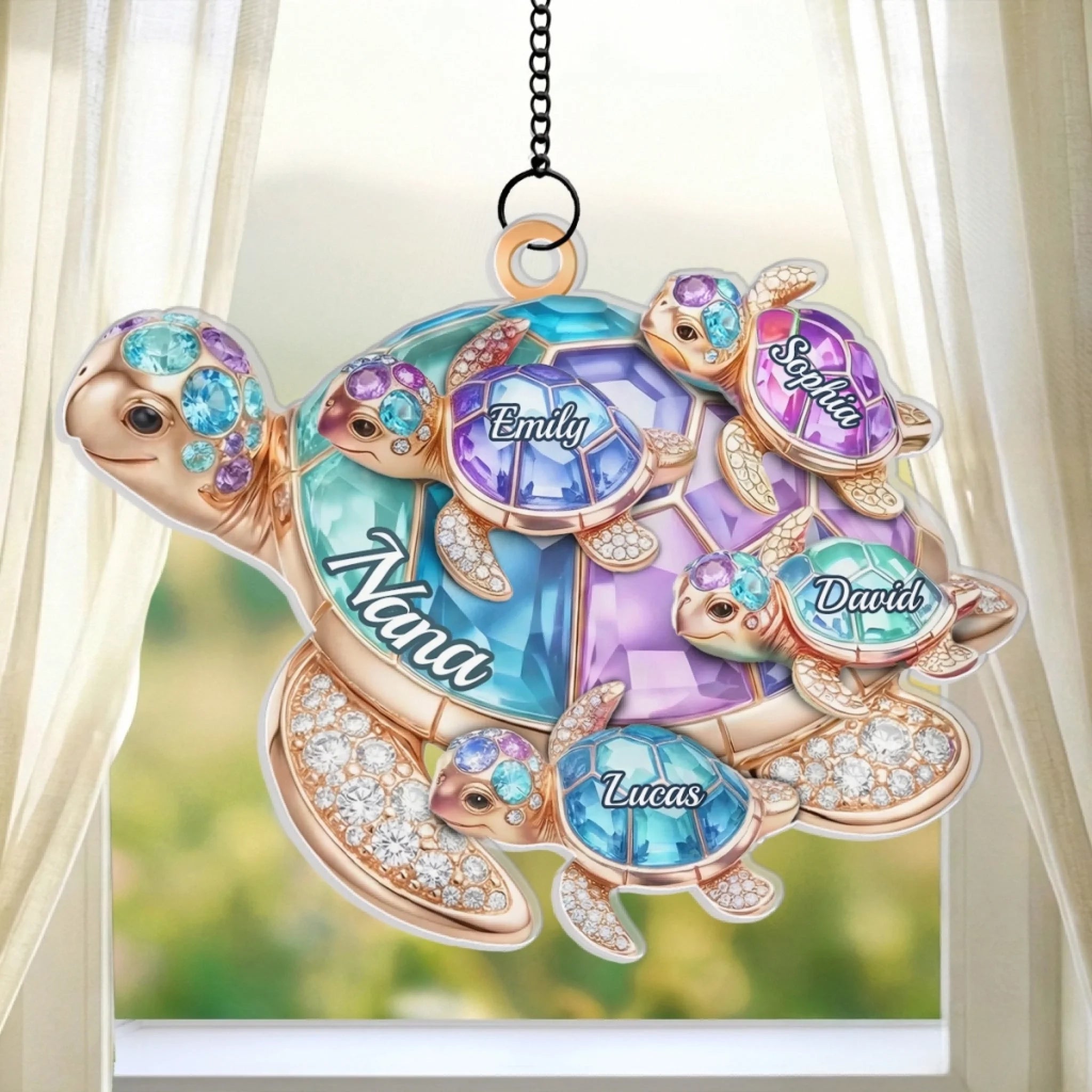 Custom Turtle Window Hanging Suncatcher Ornament - Personalized Mother's Day Birthday Gifts For Mom, Grandma - Love Across Every Wave