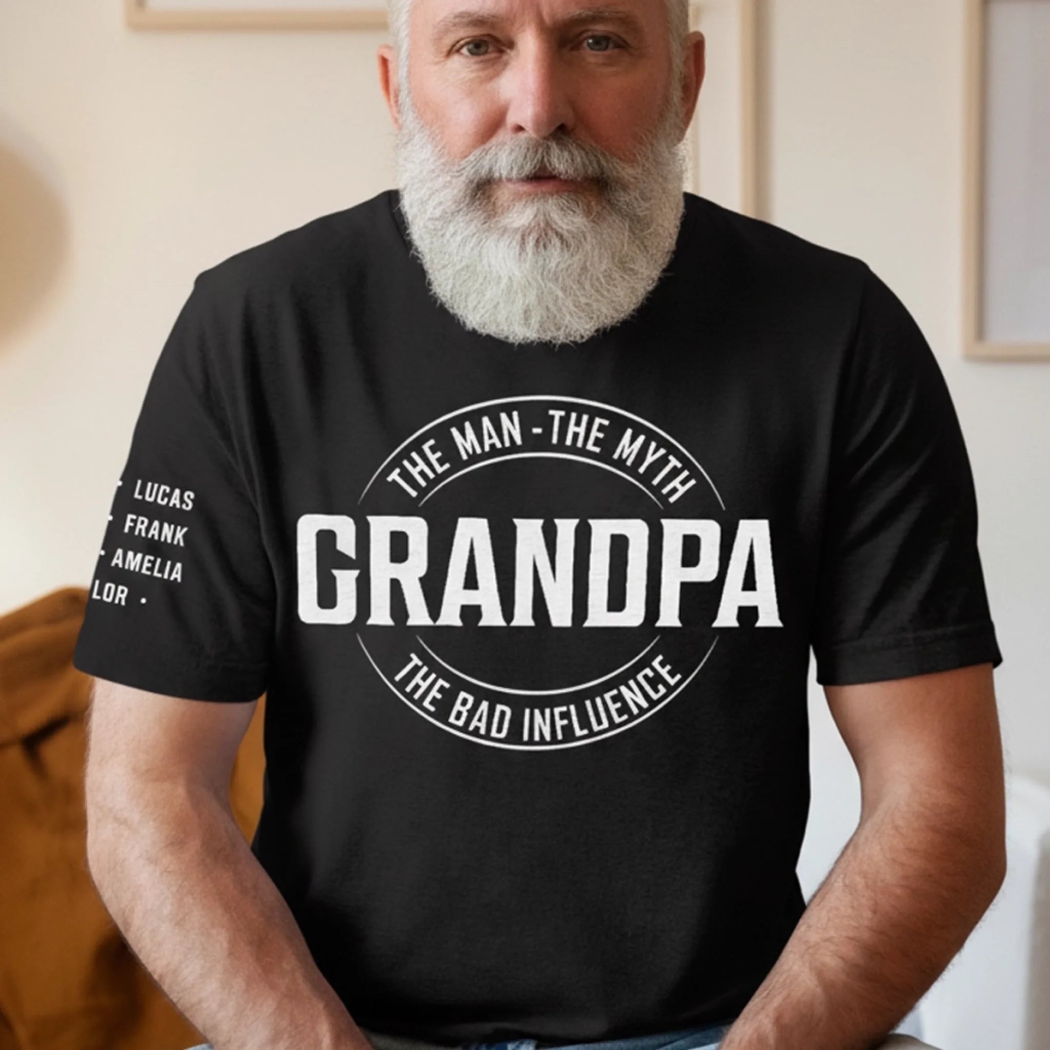 Custom Unisex T-Shirt With Design On Sleeve - Personalized Birthday Gifts For Dad, Grandpa - Legendary Mischief Instructor
