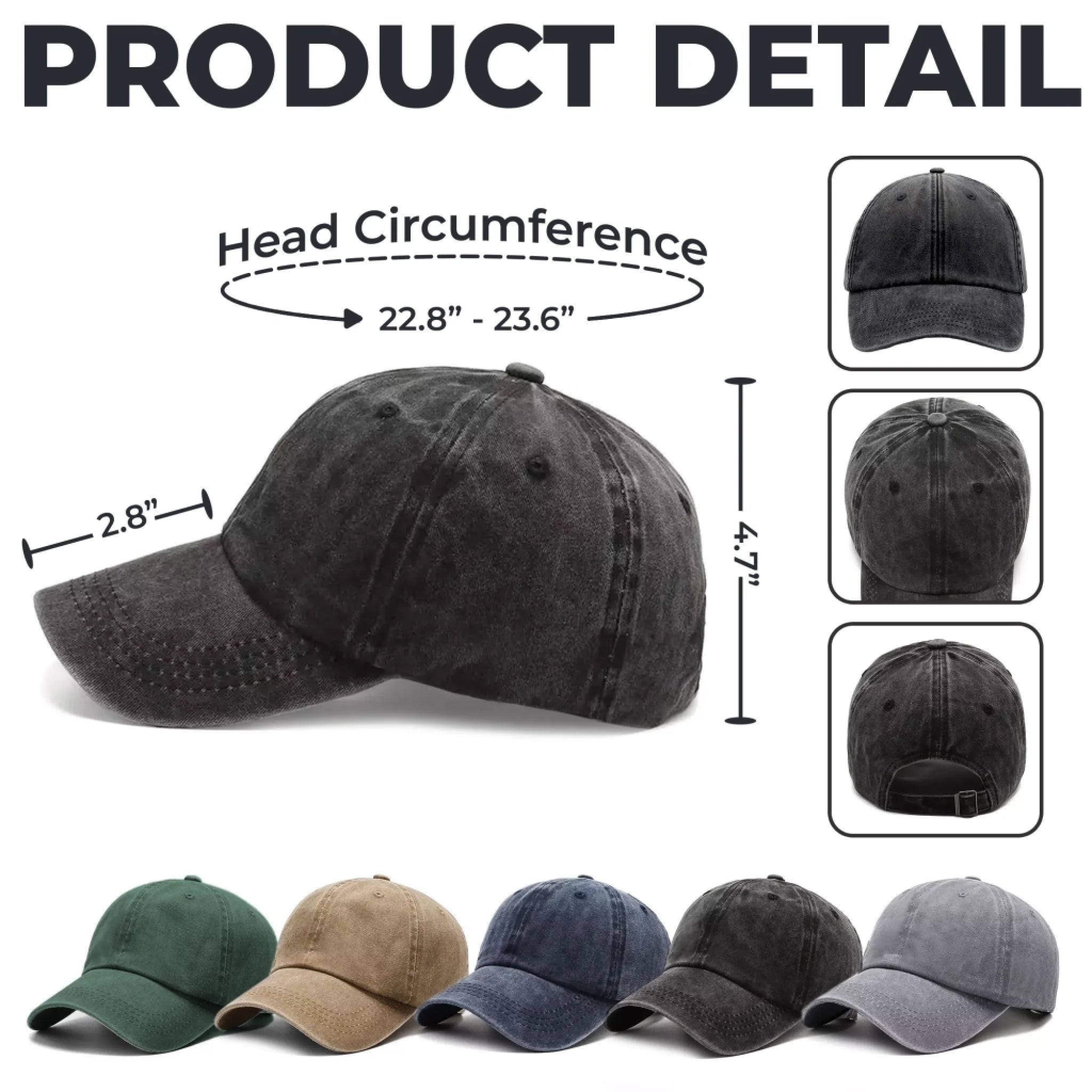 Cap circumference: adjustable between 22.8–23.6 in (58–60 cm).