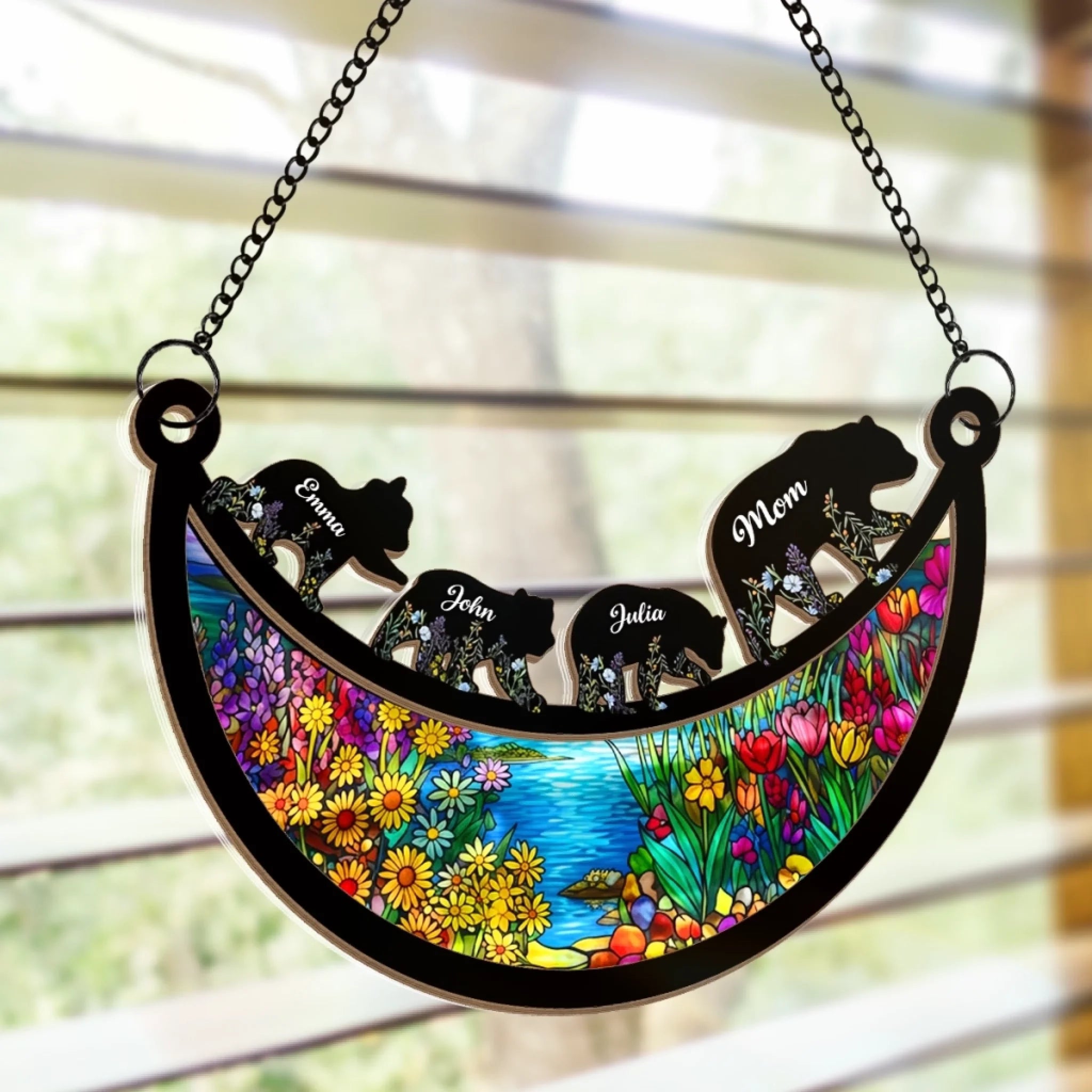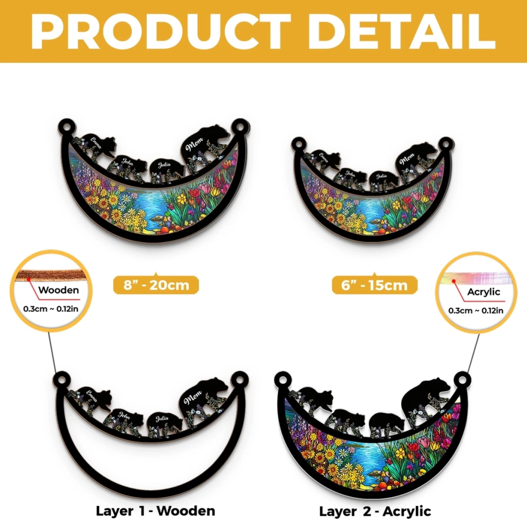 • Material: The front of this suncatcher is made from premium natural wood and mounted on acrylic plexiglass.