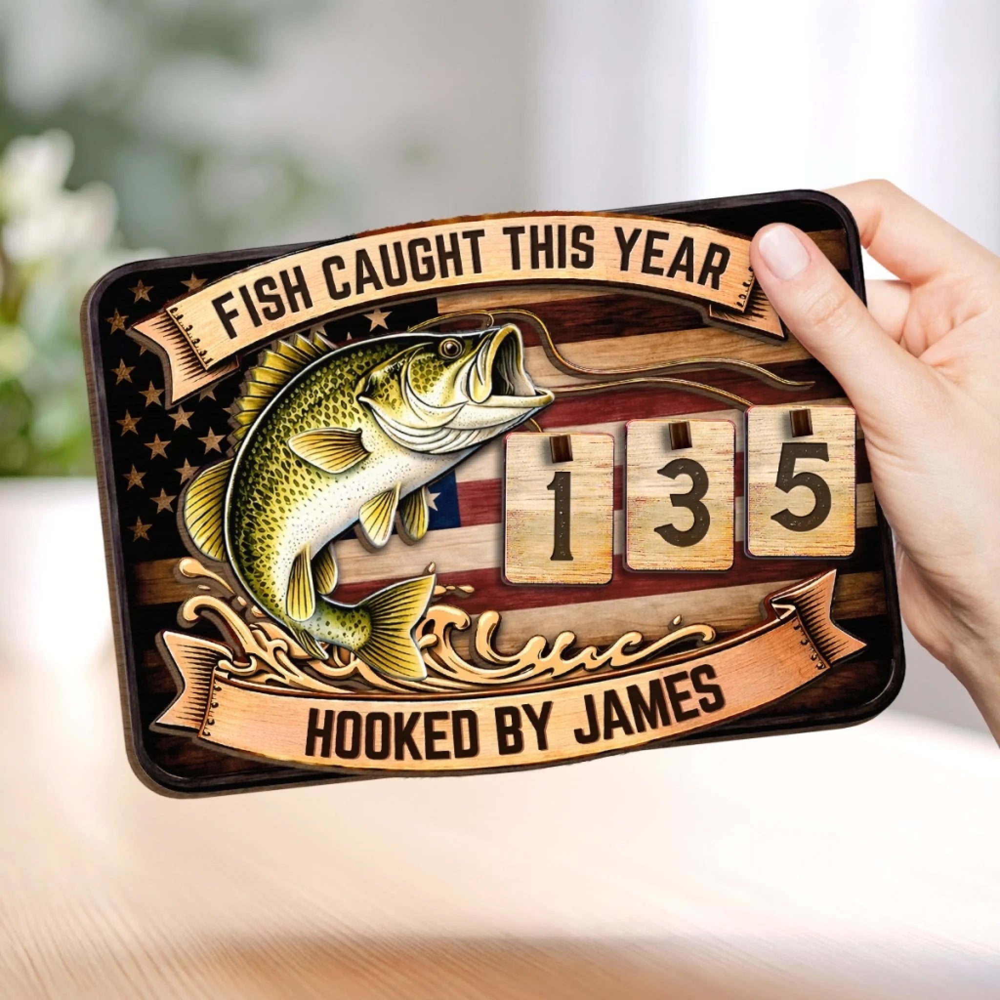 Custom Wooden Tracker Sign - Personalized Birthday Fishing Gifts For Fisherman - Best Fishing Day