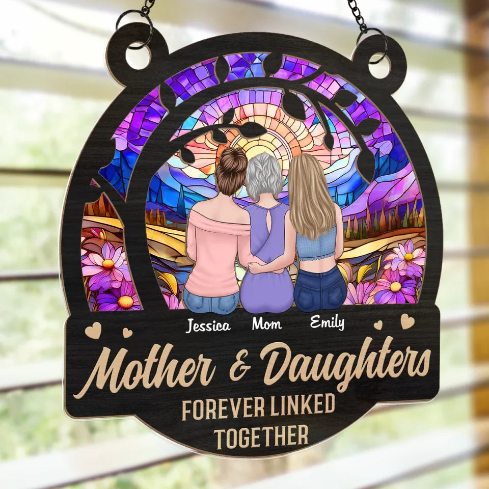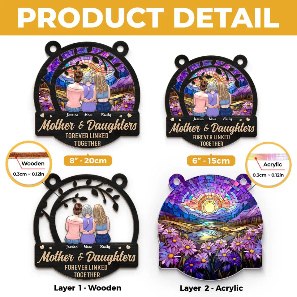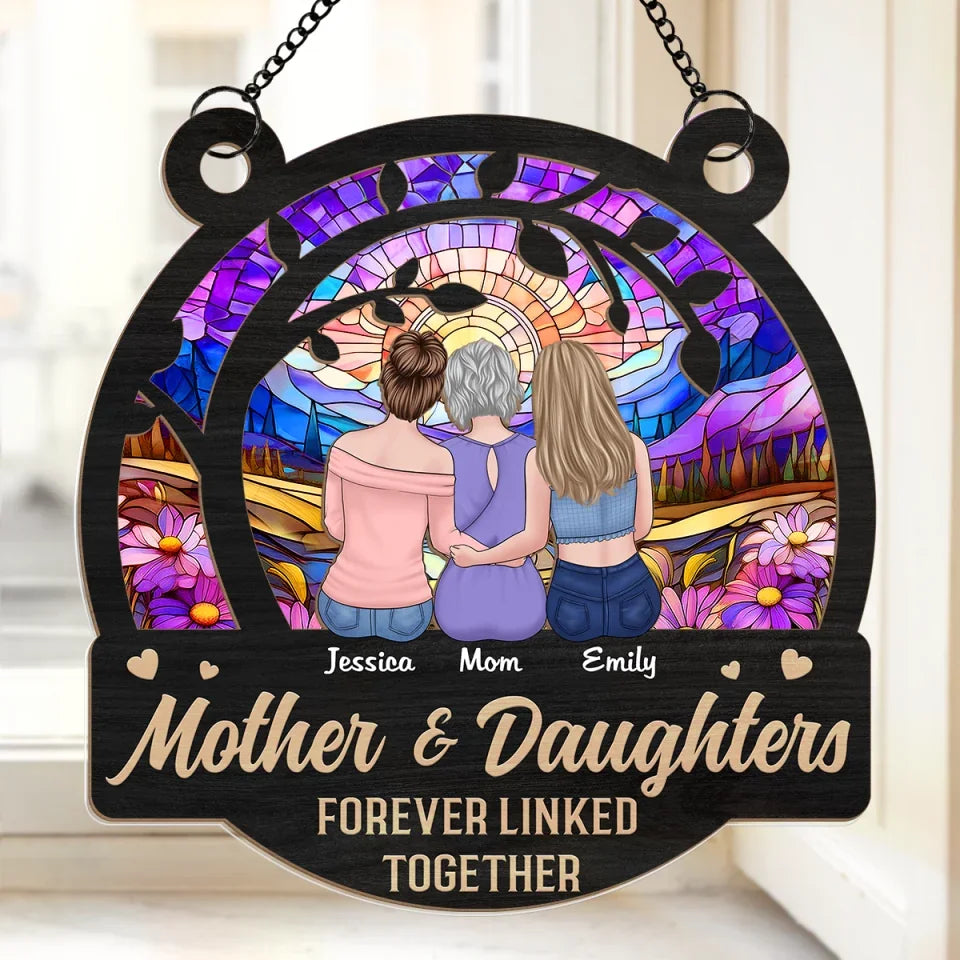 Daughters Fill A Mother’s Heart Forever - Family Personalized Window Hanging Suncatcher Ornament - Gift For Mom, Daughter