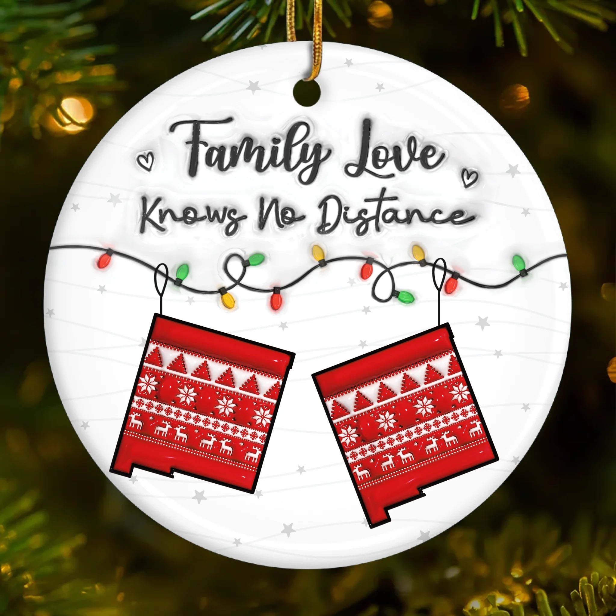 Long Distance Together Forever, Never Truly Apart - Family Personalized Custom Ornament - Ceramic Round Shaped - Christmas Gift For Family Members