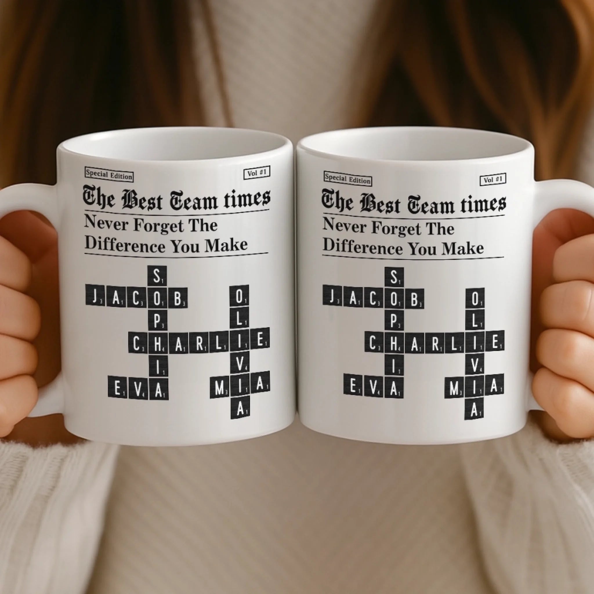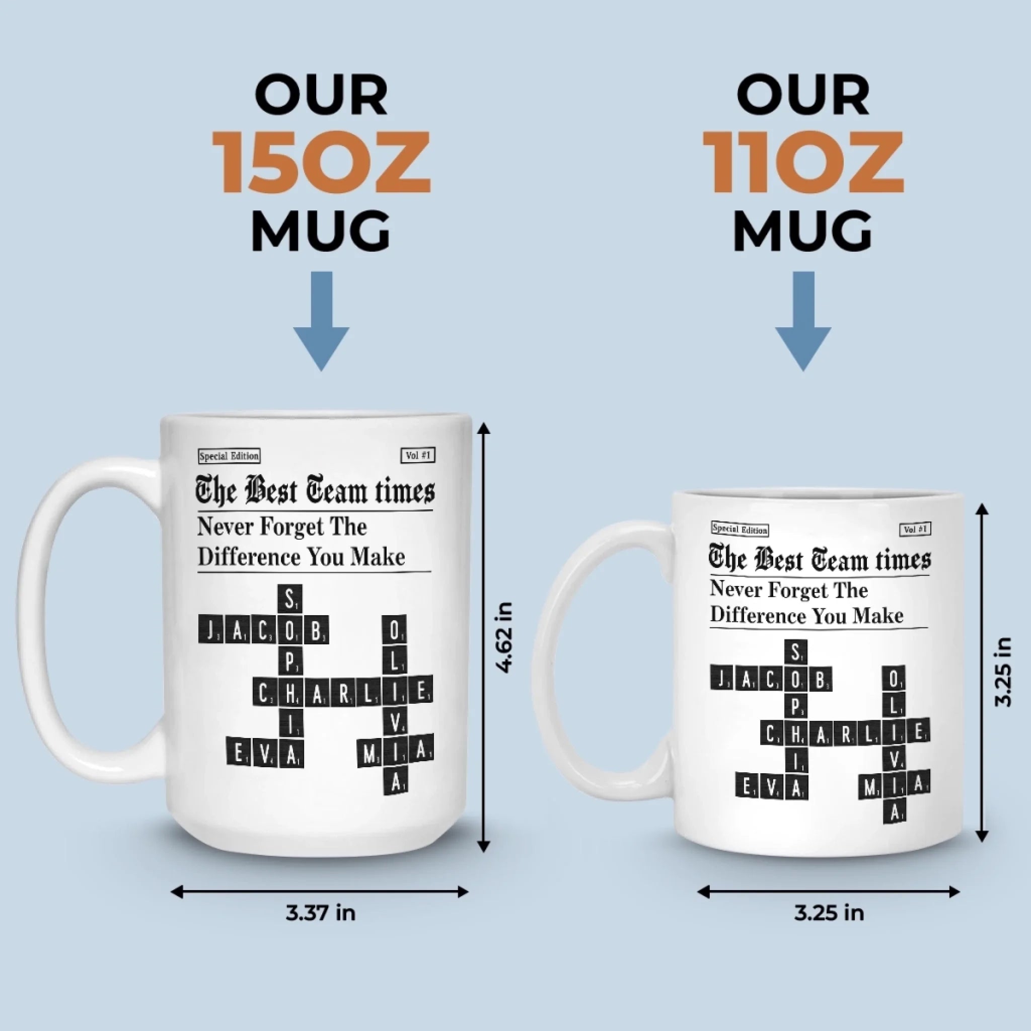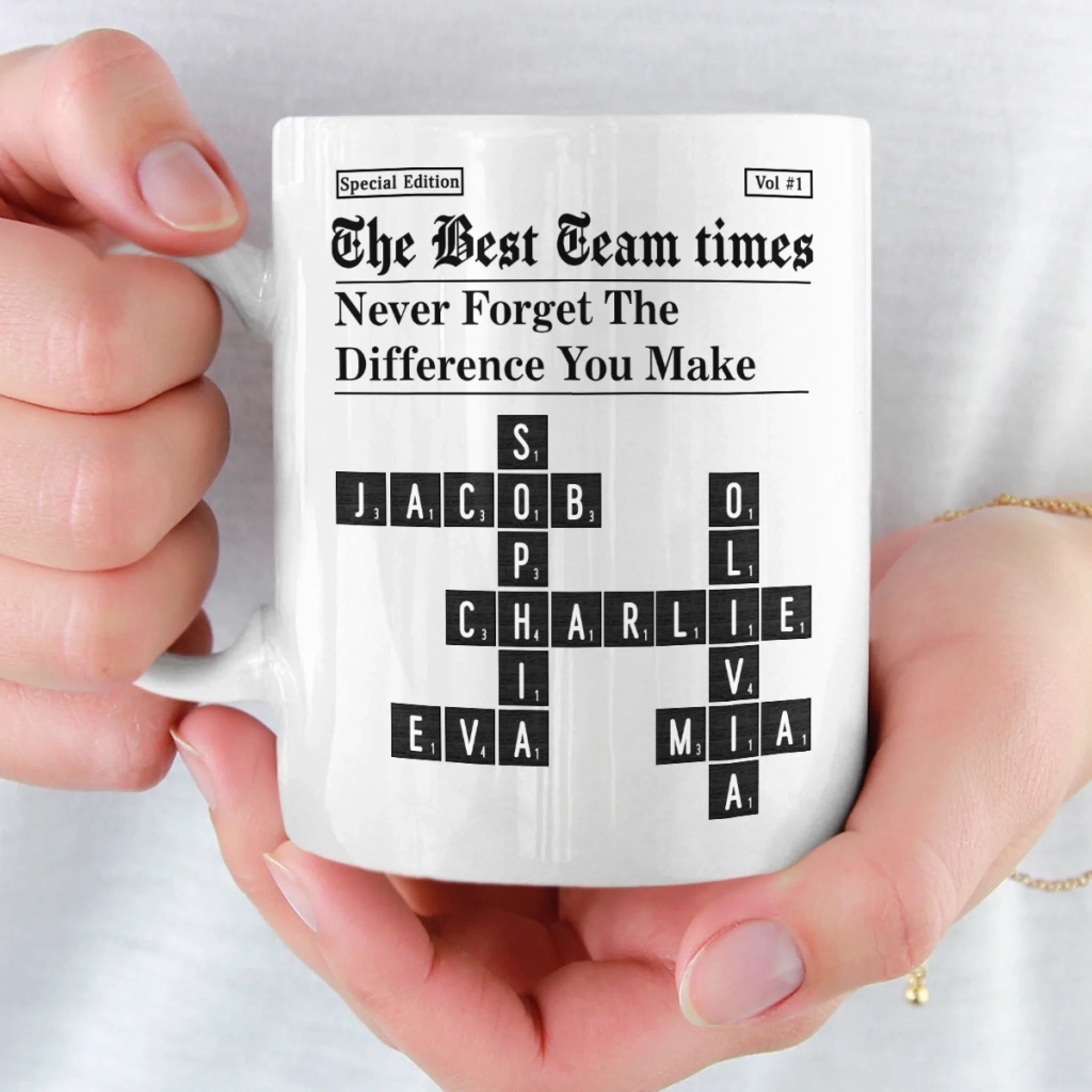 Custom Scrabble Mug - Personalized Birthday Gifts For Coworker, Work Bestie - Teamwork Makes Every Day Better