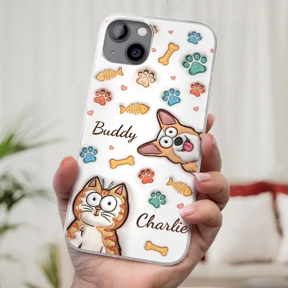 This is a clear phone case with a 3D inflated effect print, used to give the item a premium and deep look.